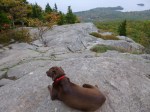 Since I was already in Camden Hills State Park, I decided to head out on one of the longer hikes. I started off on one trail, but ended up taking the Ocean Lookout hike on Mt Megunticook. It was rated a moderate hike, but it was a pretty slow go with some steep sections, and even though the temperature was right around 60, I was working so hard even my bangs were dripping sweat by the time we got to the top! I went around some of the bigger boulders instead of climbing up them, because they were still a little wet from yesterday’s rain, and I am trying to be extra careful and cautious! Tula’s like a little mountain goat on some of those trails. It took a while to get to the top, but what a glorious view! I could look back down at Camden, where I was yesterday, and the boats all looked so little in the harbor. I could see a long, sweeping view of the coastline, and could literally see for miles. I felt like the queen of the world! I was the only one up there, and we just sat and rested and enjoyed the view. It was beautiful. The trip down was almost a little harder than the trip up, but I just took my time. We began to meet other people who were on their way up (I had the advantage of being the first one since I had camped right there), and several of them asked how much farther they had to go. By then I was halfway down, and they still had a ways! I’m really glad I ended up on that particular hike. We only got 3 miles in altogether, but it was some of the toughest 3 miles I’ve done so far.