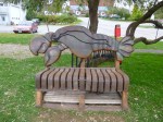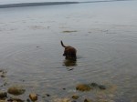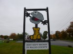 Then we got in the car for a short while, and continued the drive north. I stopped in the town of Belfast, which was a fun, hilly town to walk in – kind of an artsy sort of town with galleries, and music and crafts, and a variety of benches made of different sorts of Maine-like things. We got in another 2.2 miles of walking there. Then we hit the road again and came to Moose Point State Park – a very quiet, peaceful park right on the coast with some easy trails, and we walked another mile and a half, and then Tula took a quick dip in the water, and started to take a drink before she realized it was salty! At the beginning of the day, I had been thinking my goal for the evening would be Acadia National Park for a visit and another night of camping, but I still had miles to go and a donation to make. Perhaps I had been poking along a little too much up the coast, but there’s just so much to see! I began to wonder if I would make it that far.