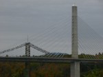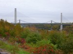 By this time I was pretty hungry, and in the middle of nowhere I noticed a little restaurant by the side of the road with a big sign out front saying something about the being voted for the best fried clams. I had promised my sister I would try fried clams, and figured this would be as good a place as any – and she had told me to get the whole clams, not just the clam strips. I ordered a half-pint, which is the smallest size they came in, and also got fries and cole slaw. I got it to go since I didn’t want to “waste” daylight hours, and they were actually better than I thought they would be. I think my last experience with clams was clam strips at a Howard Johnson’s restaurant when I was a kid, and they didn’t make a good impression then! I don’t know how anyone could eat more than a half-pint though. Then we came to a really cool bridge – unlike any I’ve seen yet. It was a suspension bridge but instead of 2 spans, there was only a single span holding up a lane of traffic on each side. Too bad there wasn’t a sidewalk – I would have liked to walk across that one!