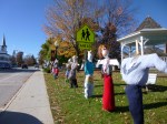 Then I set off for the southwest part of New Hampshire. AFter a bit of driving we stopped in the town of Jaffrey for a walk – there were a couple hundred homemeade scarecrows lining the streets all over town – I think there had been some kind of contest. Tula sniffed the first one and then ignored them.