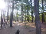 Once again, Tula and I spent the whole morning walking on the trails in the state park, and finished our 8 miles a little after noon. Cape Henlopen is a wonderful state park – there’s a huge sandy beach that people can access by a couple of pedestrian walkways over an extensive dune system. The “great dune” is about 80 feet tall and is the biggest dune between Cape Cod and Cape Hatteras in North Carolina. Away from the beach area, the park has lots and lots of big loblolly pines (my new favorite pine tree!) and it smells so good to be walking among them. Cape Henlopen was also the site of a fort and ammunition supply bunkers during World War II and many of the structures remain. The ammunition bunkers were big concrete structures that were built into the dunes, and covered in the front and sides with sand, grasses, and even trees. They remain in place today. From the ocean, one wouldn’t be able to tell there were any structures there. There are also several WWII observation towers in the park, and others along the coast. The fort area was built to help protect the mouth of the Delaware Bay – a strategic bay leading to Wilmington and Philadelphia, and consisted of 6-7 long low buildings to house the soldiers, the mess hall and administration areas. There are also a lot of huge mounted guns – one of them required 27 men to operate – and all of that stuff is still here. When spotters in the observation towers spotted an enemy ship, they could use triangulation methods to tell the gunners what to load and in what direction to fire – although in the end, the fort never fired in defense. So there were lots of things to see out on the various trails.