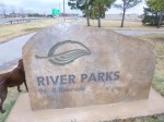 Next I went to Jenks – where many of the old turn-of-the-century buildings have been turned into antique malls, making Jenks the “antique capital of Oklahoma.” There were lots of people out and about in this town, and I enjoyed my walk around it, but it wasn’t real big, and we only got another mile and a half in, and I still had miles to go. As I was driving across a bridge on my way out of town, I saw some guys riding their bikes across an older bridge that was parallel to the one I was on (which turned out to be a pedestrian bridge), and then I saw a paved path at the other end, and realized there was a nice river trail to do some walking on. So we got in another 3 miles of walking before dark, but because I had such a late start due to the rain, I had to finish up my last 2 miles of walking in a big shopping mall south of Tulsa! I hadn’t been in a shopping mall since I was in northern Maine on a similar rainy day, and this mall was a huge 2-story one – I only had to walk around the bottom story once, and the top story twice to get my 2 miles in.