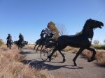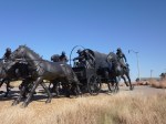 I was still in the Oklahoma City area – so many good places to walk! This morning I went to Bricktown – a renovated warehouse district with a mile-long canal flowing through it and paths along each side. There were canal boats for people who didn’t want to walk, and bridges and trees and shops and restaurants – a wonderful area to walk through! I went all the way to the end of the canal and unexpectedly found the coolest monument I have ever seen! The monument was multi-piece tribute to Oklahoma’s Land Run days. So many of the towns around here were literally formed in a day – an area of land would be opened to homesteaders, and everyone would line up and wait for a gunshot signifying the start of a race for the land – whether for a plot in the new town, or a bigger parcel to farm in the country. Some people jumped the gun and left too soon to try to get a parcel – they became known as the “sooners”. This monument consists of slightly-greater-than-lifesize men, women, horses, wagons etc all in a mad dash to claim their land. I could almost smell the dust and hear the shouting and I almost felt like I was going to be trampled by the horses! It’s quite a piece of art, and it also took a great deal of effort for the monument to be completed. I had no idea it was there and I’m so glad I saw it.