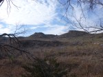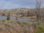 From there I headed north. Up until last night, I had planned to visit Lake Scott State Park, and I read up on it a bit last night. The article was describing all the different kinds if birds one could see (as one of the few water locations in the surrounding prairie, there were lots of trees too – lots of good bird habitat). The article then went on to say that reptile lovers should make note of this place for its variety and abundance of reptiles. Welllll….that about did me in! I knew I’d be worried about every step I was taking on the trails – not to mention being worried abut Tula too. So I drove past the turnoff for the park. But since I still couldn’t see the bluffs and canyons they were talking about, curiosity got the better of me, and I figured I could just drive around the park if nothing else. So I made a u-turn (I seem to do quite a lot of those!) and drove into the park. It really was quite amazing. With all the endless miles of flat prairie around, all of a sudden the ground just seems to open up into a big hole, and there’s a large lake (with lots of fishing sites) and bluffs surrounding it. From just a few miles away on the surface, it’s hard to tell that it’s there – the tops of the trees kind if blend into the prairie grasses – must have been quite a surprise to settlers heading west! There was a road around the lake, although part of it was off park land and was in pretty rough shape. I decided I would be more or less safe from all the “reptiles” if I walked on the paved road on the state park property. It was wide enough that I could keep Tula from going too far off into the grass – I worry about her getting bit by a snake. I am happy to say that we walked 3 1/2 miles without seeing any reptiles, and the birds were indeed plentiful, so parts of the walk were very musical. One other interesting thing at the park was the remnants of the northernmost pueblo that’s ever been excavated. The Pueblo Indians were fleeing the Spanish rule in New Mexico, and for a while shared land with their Apache allies.