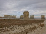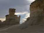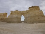 Then, I headed a little farther north and turned onto a dirt road and made a very dusty 10 mile drive through the middle of nowhere to see the chalk monuments that were on my map. This part of the prairie is apparently still oil country because there were oil wells all over the place. I stopped to look at one more closely right by the road, and there was a faint (not unpleasant) tang of oil in the air, and a slow soft chugging of a generator or whatever it is that keeps these things moving. I still don’t know how they work, but lots of them also had 3-4 small oil tanks nearby. It took a while to drive 9-10 miles on the dirt road, and all of a sudden these amazing “chalk pyramids” appeared. They were so out of place in the surrounding prairie that I can’t imagine what was different about this section of land that beautiful chalk towers could be formed. Tula and I got out and admired them and walked all around. Tula thought she was some kind of mountain goat and had fun trying to climb up some of them. I ran my hand over one of them, and it really was kind of soft and chalky, and a piece broke off. The wind and rain must constantly change their shapes. I can’t imagine why this isn’t a state park or something – it’s really spectacular. Of course, it’s also very remote, and there are no facilities of any kind – not even a sign explaining their formation or anything. No one else was there. I wondered how many square miles of prairie I could see all around me – and kind of felt like I was the only person on the planet!