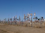 From Fort Dodge we drove east to Greensburg, a town that was totally leveled by a tornado in 2007. They decided to rebuild (newer, better, greener) and did so in the most environmentally efficient way. As a result, the downtown is all new, and so is an adjoining neighborhood of town homes, and I think the schools are new too. The path of destruction was apparently very, very wide. I could sort of see the lines of destruction – the new areas were next to the areas with homes older than 5 years, and there was still the occasional boarded up building, and even a set of stairs that led nowhere. But people were out and about, and the town had come back to life. Tula and I walked a couple more miles.