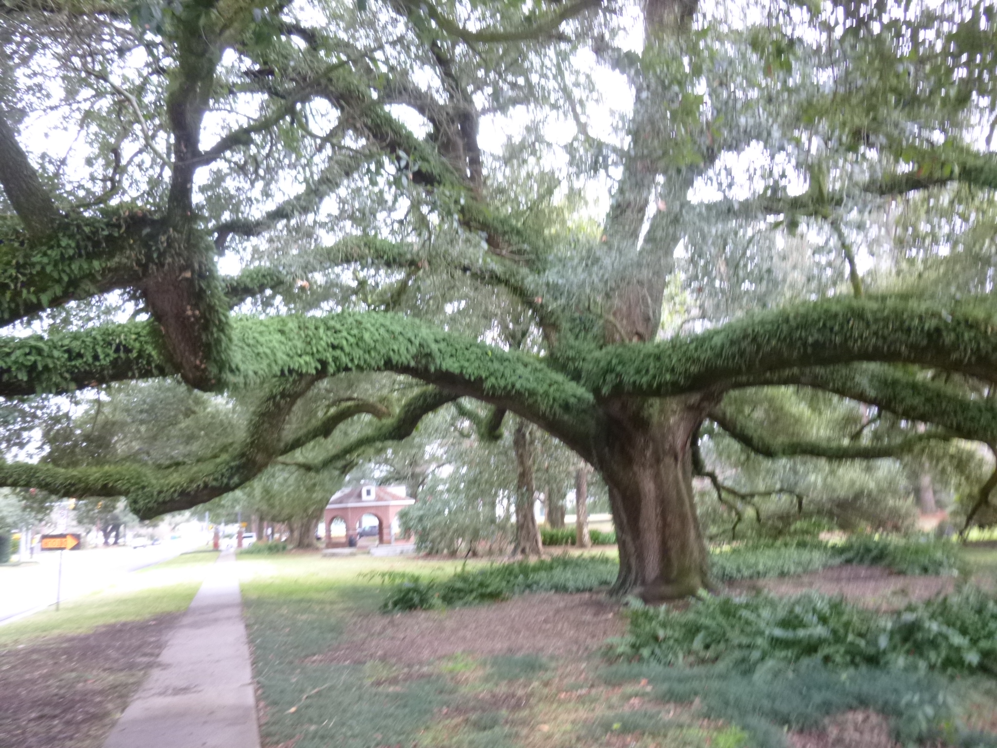 After Breaux Bridge, I headed back to Lafayette. I found the University of Louisiana at Lafayette campus and walked through some of that, and that led to a big park with a long walking trail, so we walked around that a couple times, and then through another part of the campus (strangely quiet – maybe they still have another week off) and into a pretty adjoining neighborhood. There are some enormous oaks around here, with huge branches that have ferns growing on them! Then I put Tula in the van and walked the parts of the trails near the pond that had a lot of ducks – she would have wanted to chase them! So I finished my walking. Then I found a laundromat – time to deal with that chore again! And then a meal at Cracker Barrel since they were open late, and I called it a day.