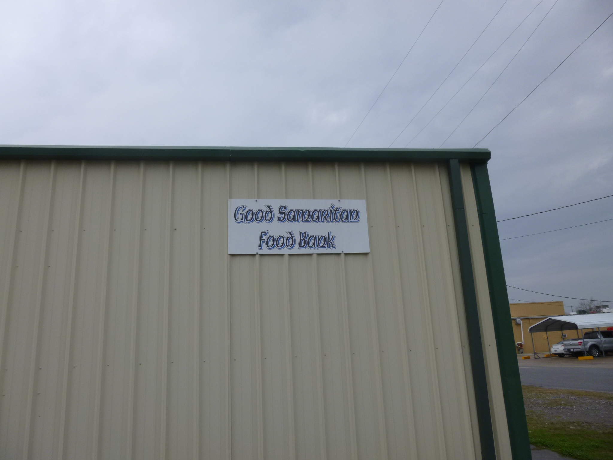 I left Morgan City and headed straight for Thibodaux. A little homework last night had shown me there was a Good Samaritan Food Pantry in Thibodaux that was open on Tuesdays from 9-noon – perfect timing. I found their location, and went in to talk with someone to see what they might need. The answer came pretty fast – they were totally out of juice. And they recommended I go to the Family Dollar store a couple blocks down on the same street, because that would help me stretch my dollars! So I went to Family Dollar and filled up the cart with a variety of juice – apple, cranberry, cranapple, grape and Sunny Delight. I got around 30 bottles of juice and it was a heavy load and took a while to ring up and bag. When I pulled back into the parking lot at the food pantry, one of the volunteers was outside with a young couple who had just picked up some food, and she wanted to give them a bottle of juice too. That was the first time part of my donation went straight from the van into the waiting hands of someone who needed it – that touched me. And the recipient came over to say thank you. Then I went inside where Melodia, the manager, showed me around their food pantry. The juice shelf was indeed totally bare. While I was shopping, one of the volunteers had contacted the local newspaper, and by the time I got back a reporter was there, and she had some questions about what I was doing, and about the food bank. She was very easy to talk to, and we got some pictures (I think her article ran in their Saturday paper but I haven’t seen it). I talked with Melodia some more, and as always, it’s really interesting to hear how different food banks work.