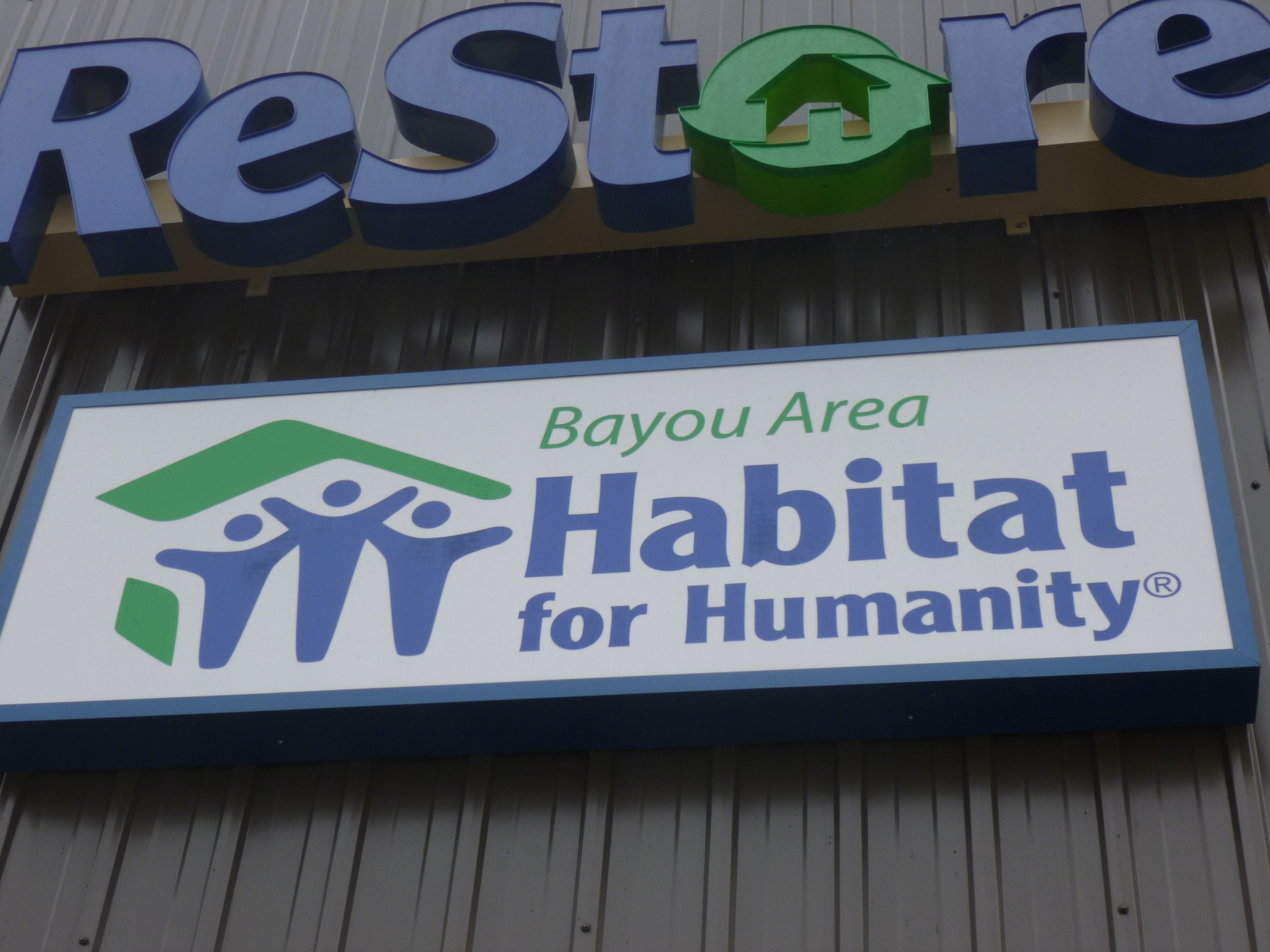 When I was done at the food pantry, I headed back to the Family Dollar store area. I had noticed a Bayou Area Habitat for Humanity ReStore shop right next to the Family Dollar, and I took it as a sign that I might want to make another donation today! I went in and looked around a little (the last thing I need is more stuff in the van!) and then talked with one of the volunteers, who told me that all the proceeds from the thrift shop go to help with repairing and building homes in the bayou area. After Hurricane Isaac last August, there was still a lot of work to be done, and I wanted to help since Louisiana seems to have dealt with more than her share of hurricane troubles and the like. I talked with a couple of the volunteers who were interested in what I was doing, and they were very grateful for the donation, and they also sent me a very nice email later. One of the volunteers had a tree branch fall on her house last August during the hurricane, and she’s only just now able to move back in, and she kept doing her volunteer work the whole time. There’s a lot of people with big hearts! And I wouldn’t have seen this place if I hadn’t been shopping for the juice for the food pantry – another thing that was meant to be!