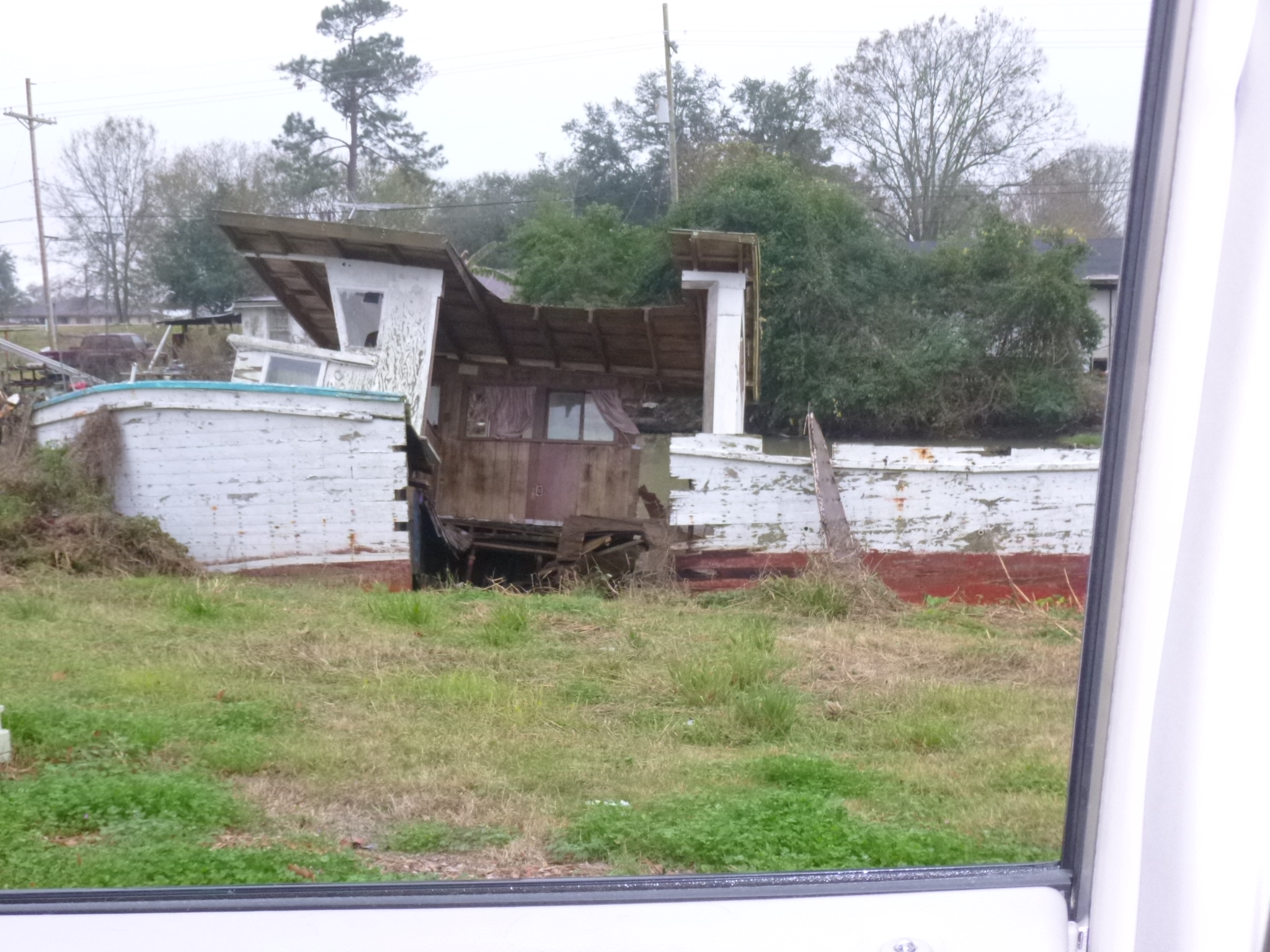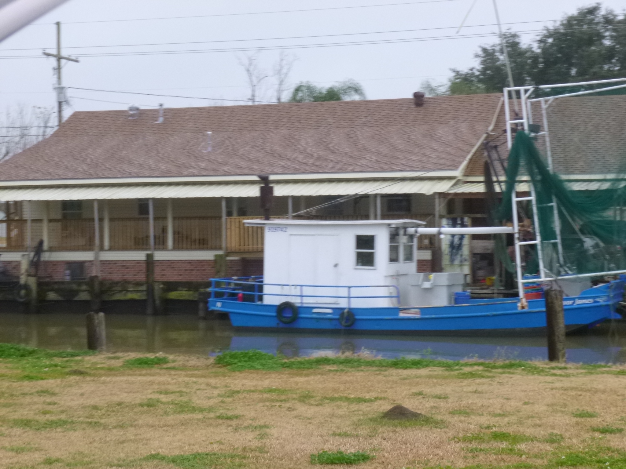 Then I wanted to drive as far south into shrimping/bayou country as I could. The little 2-lane highway leading to the edge of the state must have been built on what little solid ground there was in this area – there’s lakes, bayous, wetlands – lots of watery areas. The road followed yet another bayou, and I saw more shrimp boats than I ever have before. Some were in disrepair and were in the slow process of sinking, and other shrimp boats looked bigger than the small houses they were tied up by. And there were lots of drawbridges too – the shrimp boats have to work their way down the bayou to open water for their fishing.