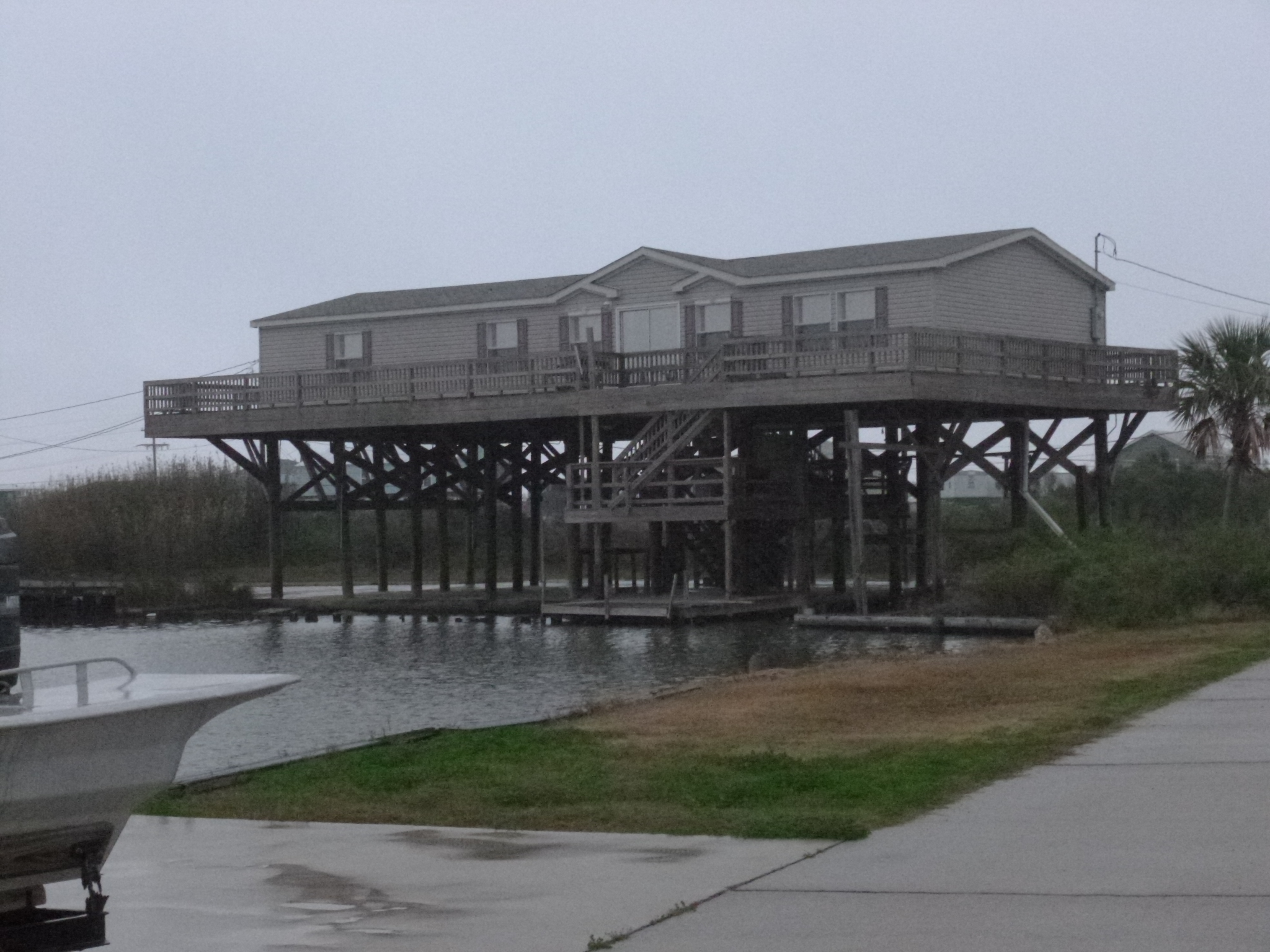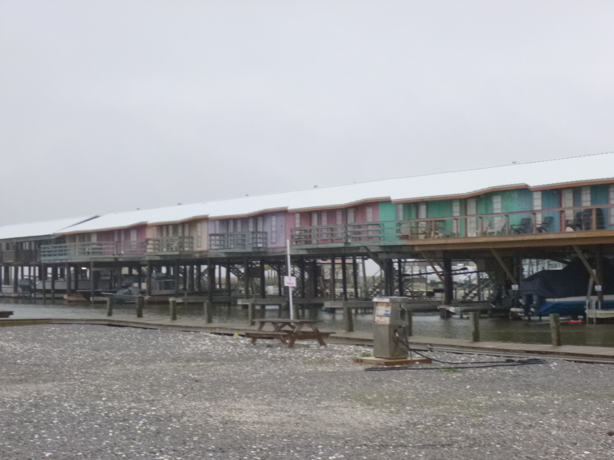 I drove through Presque Isle, and Chauvin and all the way down to Cocodrie at the edge of solid land, passing shrimp boats all the way. I also passed little warehouse areas where the shrimp boats could stop for fuel and ice. The road just dead-ended in the little marina community of Cocodrie, and Tula and I pulled into the marina and walked up and down the different piers. All the houses were up high on stilts, and there were even trailer homes raised up high in wooden frameworks to hold them up there (how they are lifted up their I don’t know!). It seemed like a very isolated sort of life. With darkness soon to fall and some rain moving in, I knew it was time to head for less watery ground! Once I backtracked about 10 miles, there was another road so that I could make sort of a loop back to Houma. This road was very narrow and curvy, going through lots of swamp land and marshes – beautiful and desolate. It started to rain and I was happy to be heading back to civilization. By the time I got to Houma it was absolutely pouring, and I can’t imagine what that does to the lowlands I was just in. I had a little trouble getting out of Houma to head northeast – what with all the different bridges and construction, even my GPS was getting confused. I only walked 5 miles today due to rainy weather, but I’ll finish the other 3 tomorrow as I wrap up my Lousisiana week.