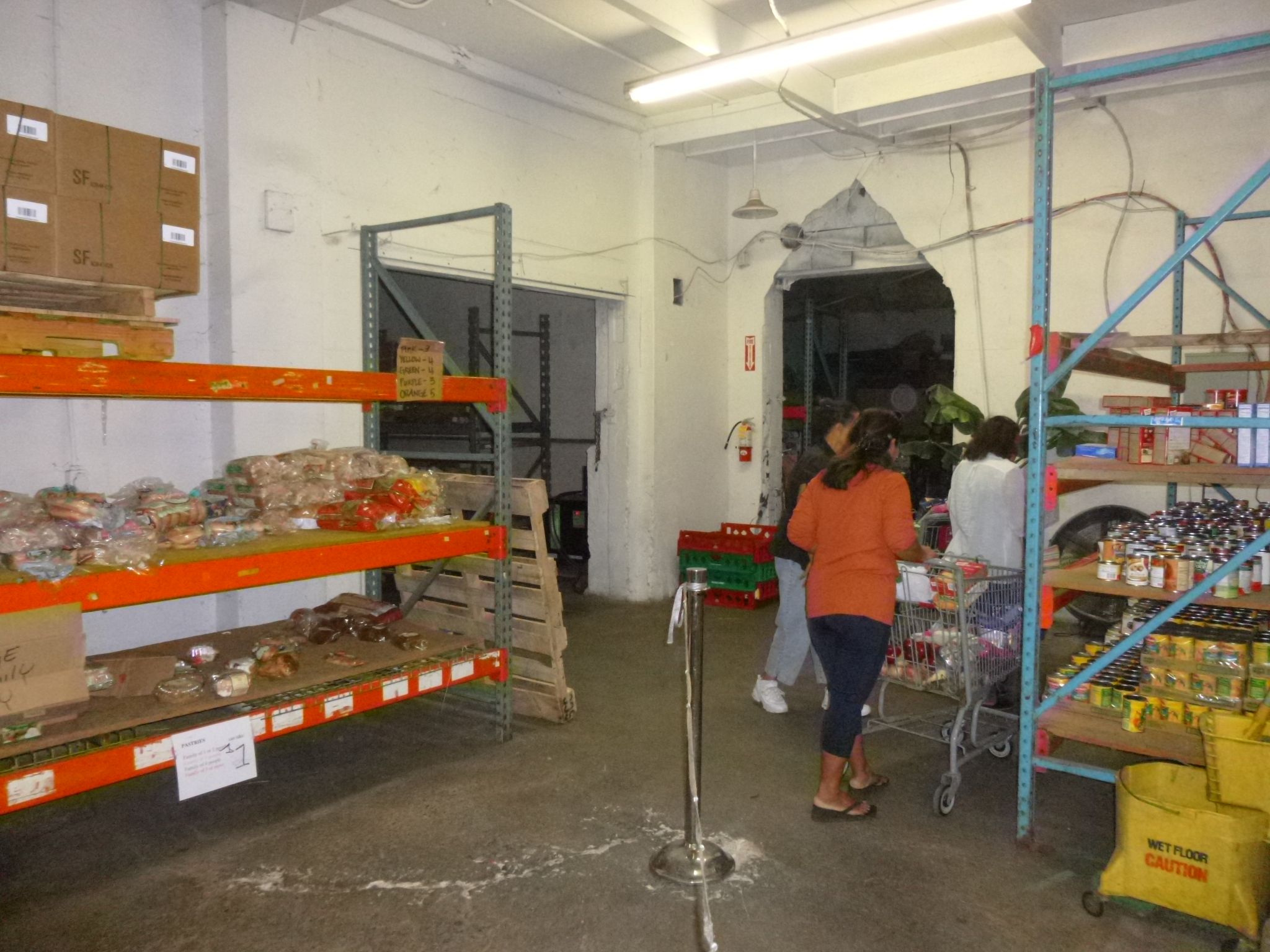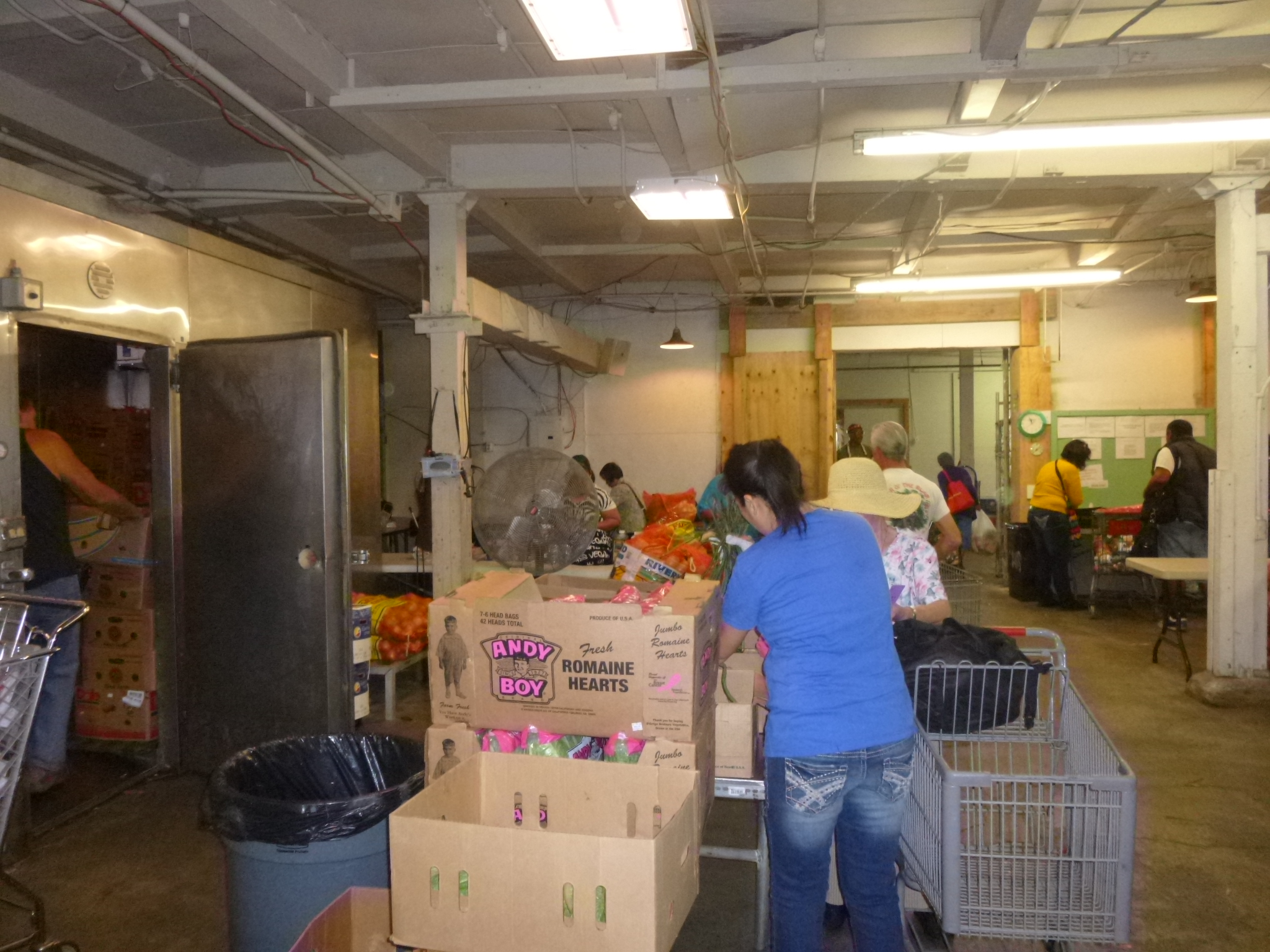 The people sign in when they arrive and get a number, and then have to wait their turn to shop. Some if them are impatient! When it’s their turn, they get a shopping cart, and wheel it thru the fresh produce area, then the canned goods area, the refrigerator/freezer area, and then I think there’s a place for bread. There are volunteers in each area to help with selections based on the size of the family, so that it doesn’t become a free-for-all. It’s very orderly. The clients have to bring their own bags and boxes – this food pantry is trying to go green as much as it can. They also have a thrift shop next door where the clients can choose out some clothes if necessary. I told Adam about some of the thrift stores I’ve seen that are open to the general public, and have low prices, and the sales also help support the food pantry. I enjoyed talking with them, and seeing their food pantry.
