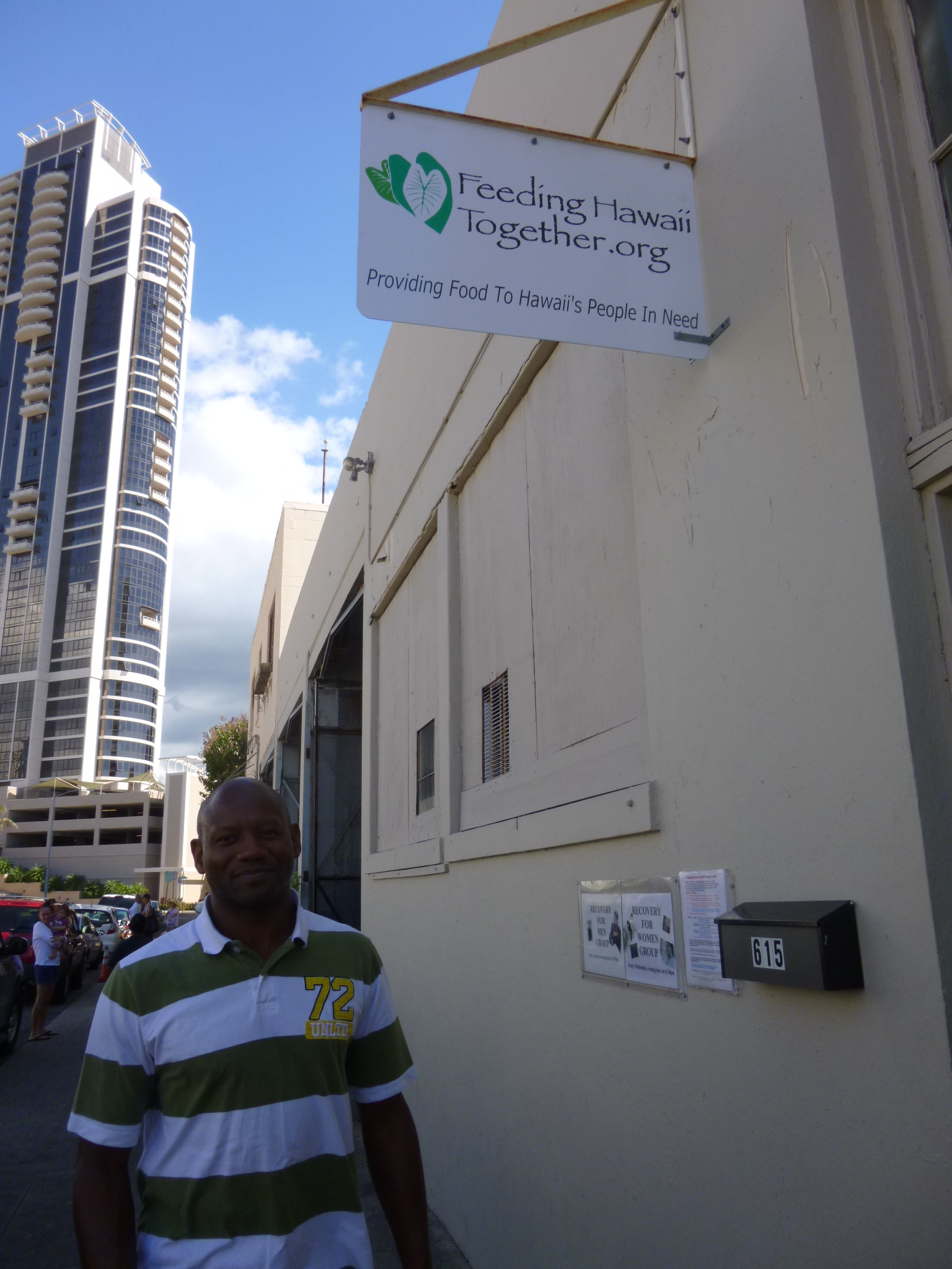 I wanted to do a food pantry type donation today since I haven’t done one in Hawaii yet, and there are quite a few food pantries in Honolulu and its environs. My challenge was to find one that was open today within walking distance or reasonable bus distance. So I spent a little time on the computer trying to narrow the search down, and then the front desk people were helpful as far as streets and locations, and The Giving Tree (one if the first places that caught my eye because I liked the name!) ended up being only about 2 miles away, and they were open on Thursday mornings. The front desk people printed out directions from Mapquest and I was on my way, after checking out of my room and storing my bags. Fortunately I have become somewhat familiar with the streets around my hotel, but I still find them confusing with all the vowels and Ls and Ks! I found the Giving Tree, and they had recently changed their name to Feeding Hawaii Together. This was a busy place! The waiting area is outside – its part of the building and under a roof, but no need for walls in that part with the balmy temperatures, and there were people of many nationalities waiting. I found one of the volunteers, Adam, and told him I’d be happy to make a donation if they needed it. And yes, they would like that! It was just going to be a financial donation because without a car (and there were no grocery stores nearby) it wasn’t feasible to shop for a food donation. Adam told me a bit about their program, and then he introduced me to Carl, who showed me all around and told me how they run their program, and wanted to hear any thoughts I might have since I’ve seen so many food pantries on the mainland. Carl has also written a software program to track the volumes of food coming in and out, and it sounds like other states are interested in the software. This food pantry is actually one of the bigger ones I’ve seen, and they do not limit the numbers of visits per year – people can come once a week for years if they need to-and many have. The volunteers seem to know many if them by name. When I asked about people trying to become more self-sufficient and maybe find work instead of depending on the food pantry, he said for some people there is a genuine barrier as far as language and customs – Honolulu is such a melting pot of so many cultures that some people do have difficulties. I know if I was suddenly dumped in China and told to go find work in a Chinese business so I could buy food, I’d end up at a food pantry, totally overwhelmed!