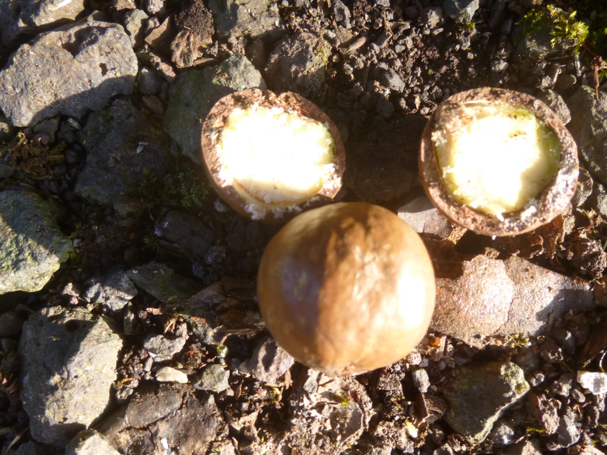 Then I headed to the Mauna Loa macadamia nut plantation and factory. Their macadamia nut orchard consists of 250,000 trees, and all the nuts have to picked up off the ground by hand – they’re not fully ripe until they fall off the trees on their own. I took the little factory tour and it was interesting. It’s a very labor-intense production. The shells require a great deal of pressure to crack and then they have to spend a lot of time drying, which they do with a furnace powered by their own shells. Then they’re sorted several times, and salted, or dipped in chocolate, etc. and packaged in a variety of ways. I sampled nearly all the different kinds in the gift shop, and bought a small can to munch on later. My favorites are simply the salted ones – the chocolate seems to overpower the nut in my opinion! (But they’re still good!) I walked a couple miles along the driveway through the orchard – had to take advantage of walking through a macadamia nut farm!