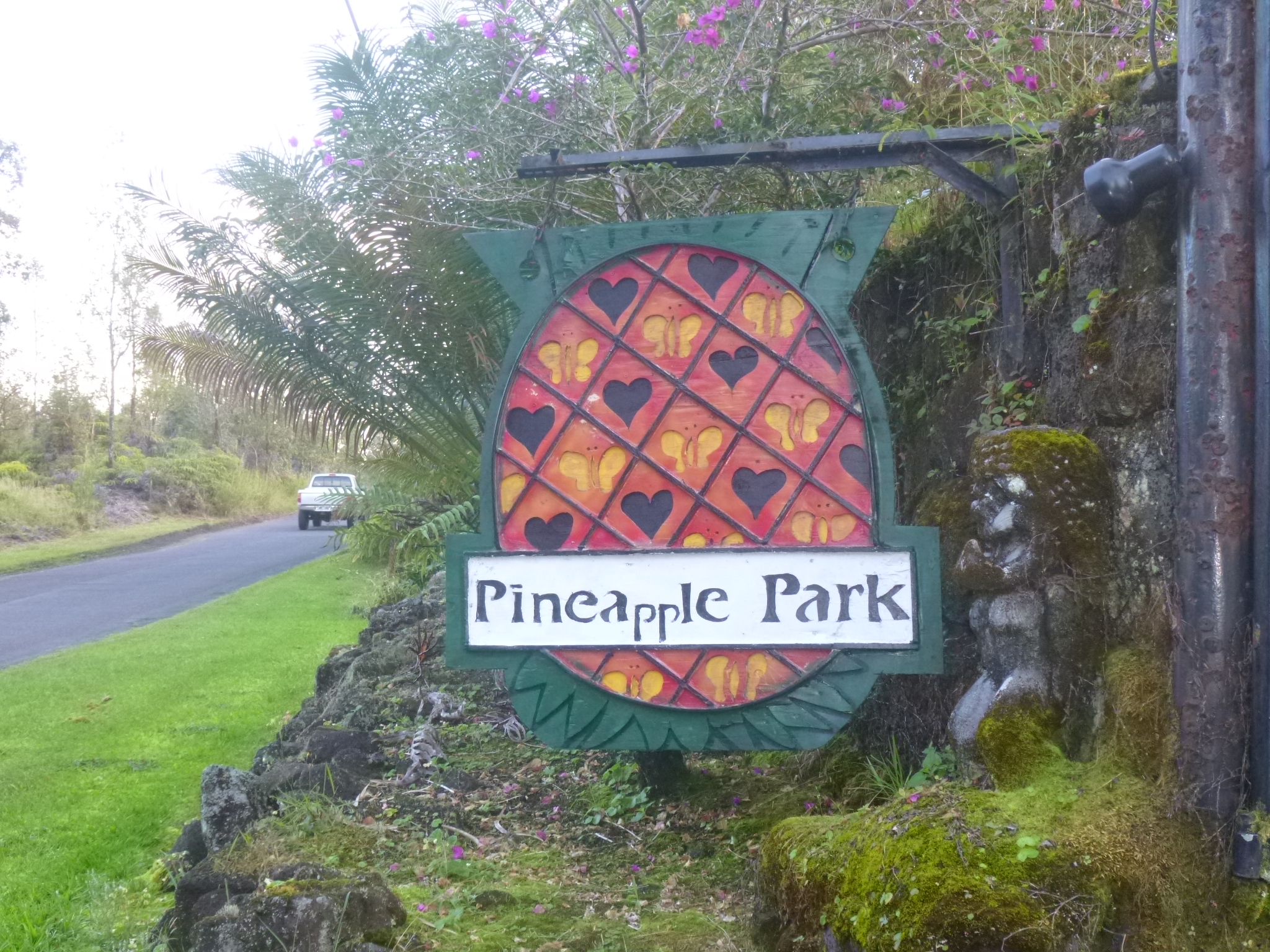 Then I headed for the Pineapple Park hostel near the Volcano National Park. There weren’t any signs or anything, so I called for directions and again, found myself off the beaten path. I had reserved a private room with a shared bath, but I ended up being the only guest in the huge hostel – a big group of college kids had just left, so maybe that was a good thing. At first I thought it might be kind of strange to be the only one there, but I wasn’t going to be spending much time there, and it was convenient to the national park. It’s actually a nice place, although being in the rain forest kind of makes things seem ever so slightly damp. I noticed that on Samoa too – the heat and humidity sometimes make for a feeling of dampness that kind if lingers. Anyway, the hostel had a big outside porch area that can accommodate several groups of people, and right inside the door is a huge living room/family room kind of sectioned off in 4 areas. There were card tables with cards available, book shelves, maps and games. Outside there was a BBQ area, a fishing pond, volleyball net etc. It’s a bit out in the sticks without restaurants and stores nearby, but with some planning ahead, it’s kind of a nice little spot.