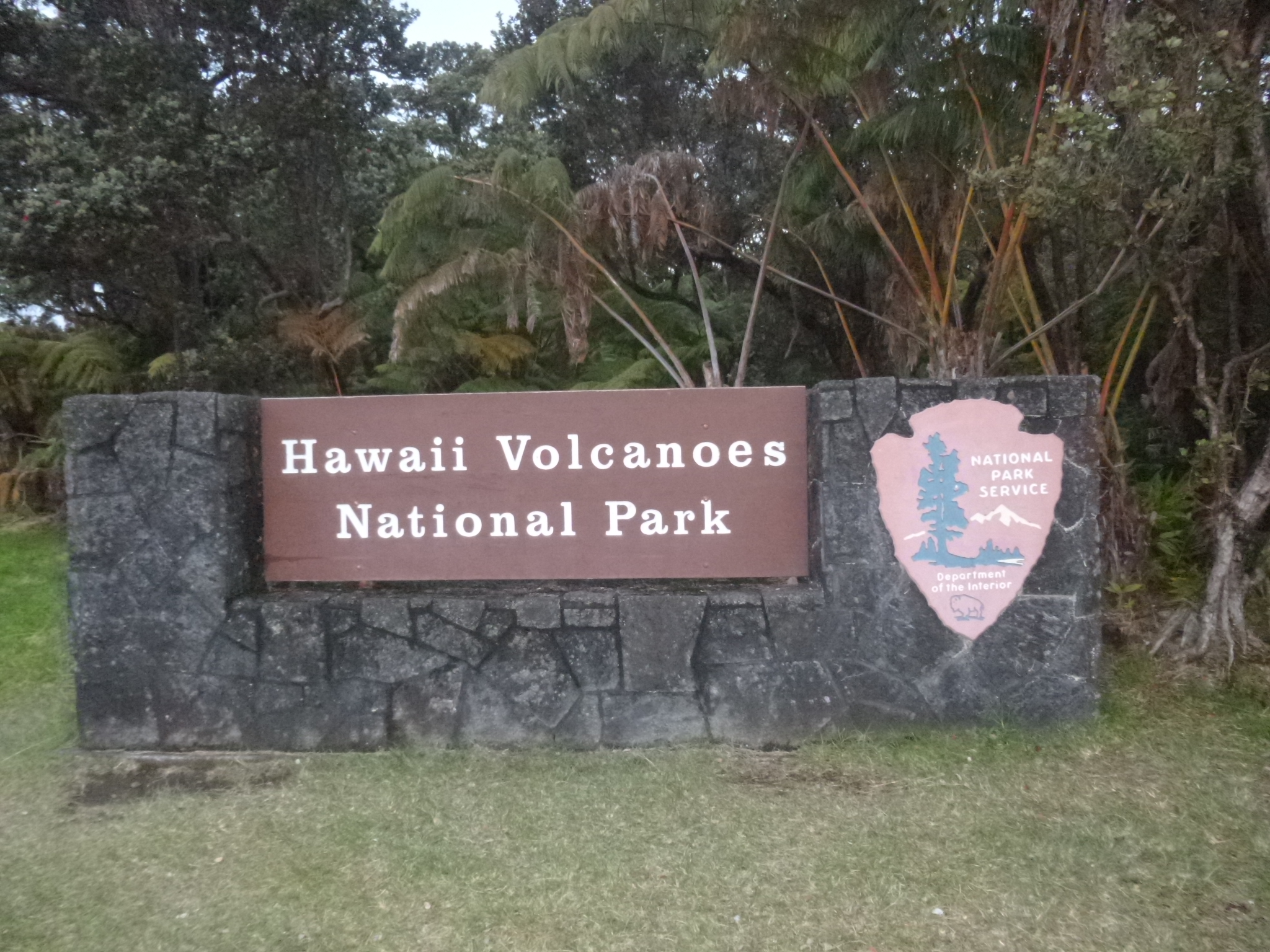 Once I carried my stuff in, I couldn’t resist heading to the Volcano National Park to get my bearings there and walk my last couple of miles for the day. The park stays open 24 hours a day so people can drive up to the observation point in the dark to watch the steaming orange-red smoke from the lava lake inside the Kilauea Volcano. I walked along the Sulfur Banks trail in twilight – strange to see so much steam pouring out from countless vents in the ground. It didn’t smell as bad as I thought it would. I was pleasantly startled to run across 3 nene geese – some of Hawaii’s endangered birds. It was getting dark when I turned around to walk back through – all misty and ghostlike. I drove up to the museum where there’s a big area to just watch all the glowing, steaming, colorful activity from the crater. There used to be a drive around the whole crater, but it’s been closed off for about 5 years after an earthquake damaged the area. I stayed up there for a while – it’s a view that’s pretty unique!