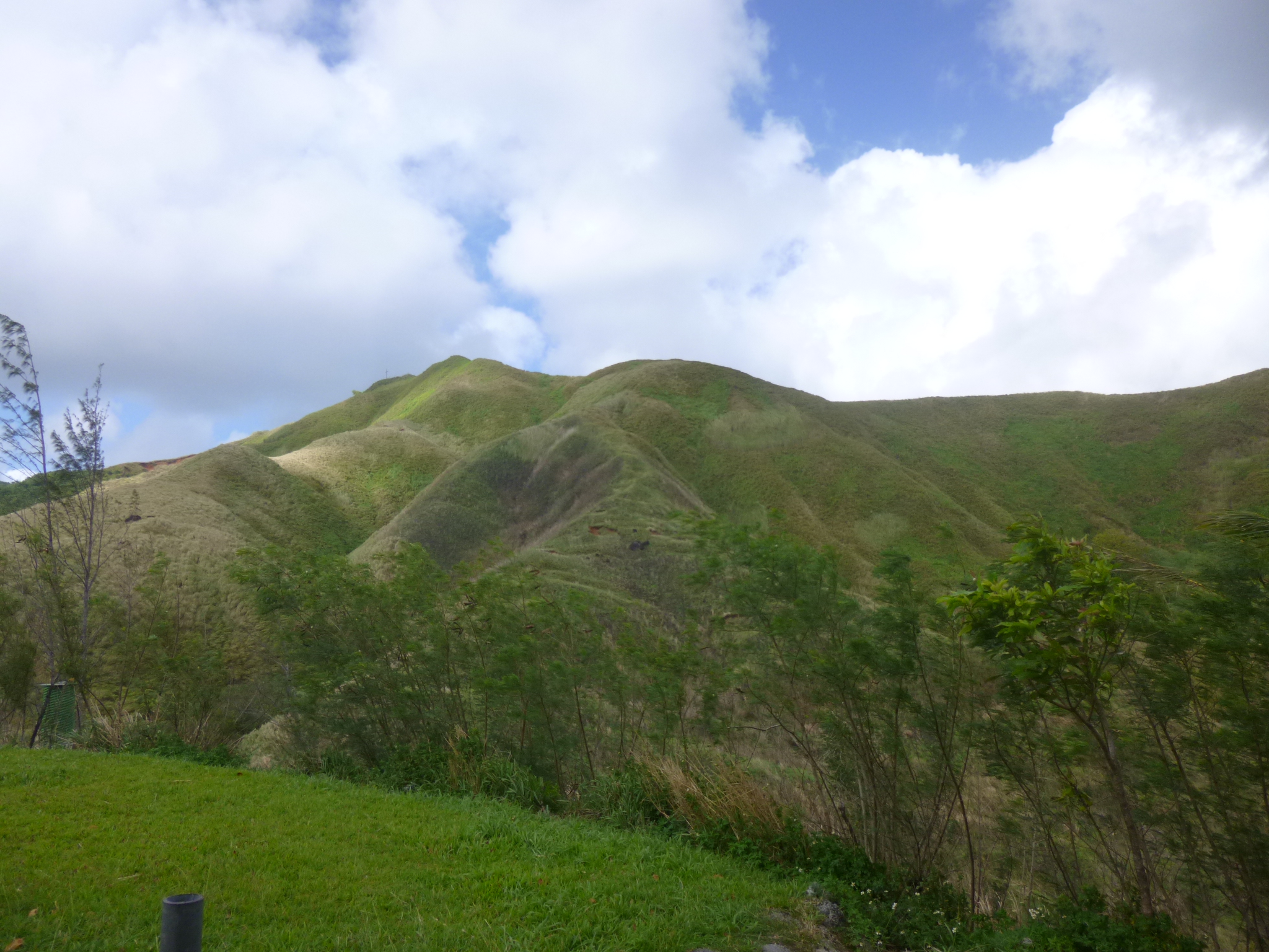 I continued my drive at a slow pace, with the ocean on one side, and the deep green of the interior mountains (not as volcanically rugged as Samoa) on the other side. There were a couple small villages, and lots of chickens running around. Many of the homes and shops on Guam are small concrete structures with flat roofs. The concrete is often painted. Concrete is the preferred building material since it holds up better in earthquakes and typhoons than wood or metal. I did see some structures made out of corrugated aluminum, and they definitely didn’t look sturdy. Those are the sorts of places that Habitat for Humanity is trying to upgrade. I got some walking in, but not as much as I would have liked.