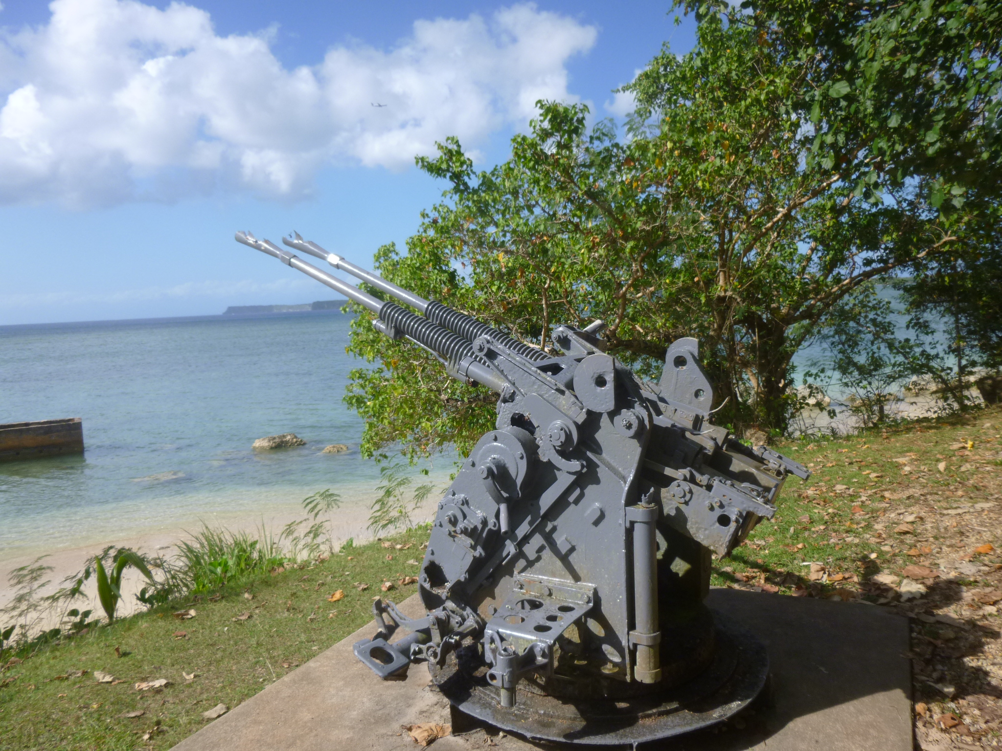 I drove around the southern tip Of the island, and started making my way north again. I came to another section of the national park, and got out to look around. There were a couple old Japanese anti-aircraft guns and machine guns mounted on the old landing beach that were used to fire on the Americans storming the beach in their amphibious tanks. There was a college age Japanese guy standing behind one of the anti-aircraft guns while the girlfriend took a picture – he was pretending to swivel the gun around and was making loud firing noises and laughing. I couldn’t help but think that he and I were seeing and hearing totally different things. The Japanese took over the whole island when they arrived as they were expanding their empire, and they mistreated the local people, forcing them into slave labor and and shoving them all into “camps”. When the Americans arrived, it was a bloody long horrible battle, but in the end, the Americans secured the island, and they freed the Chamorros and gave them food and water, but life was sill anything but normal for them with the Pacific war still going on.
