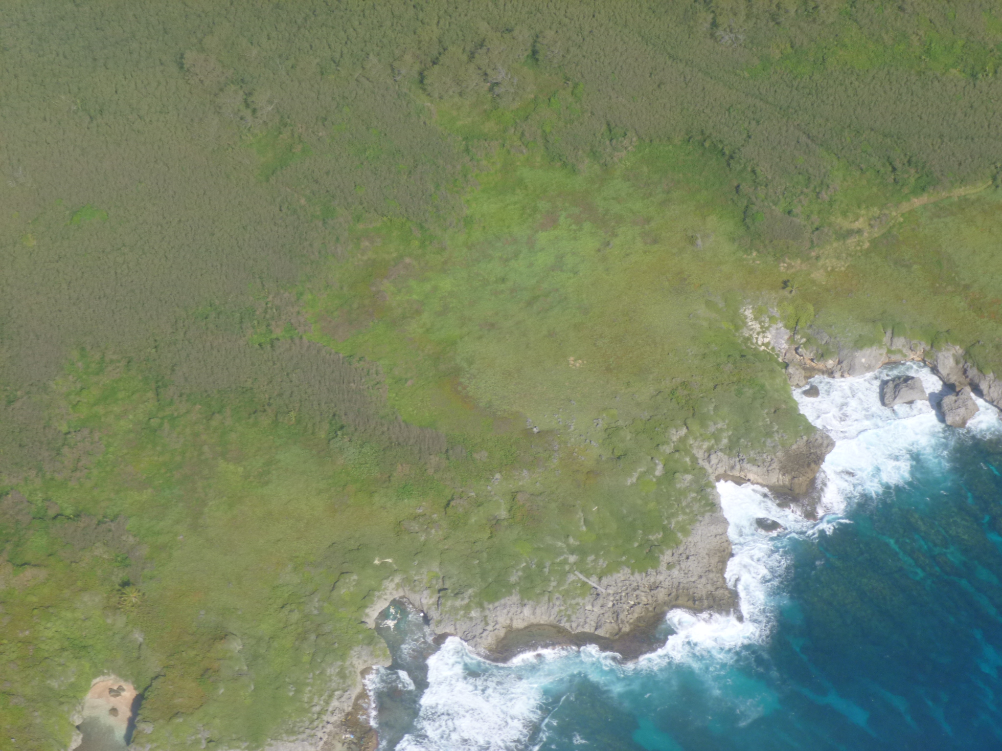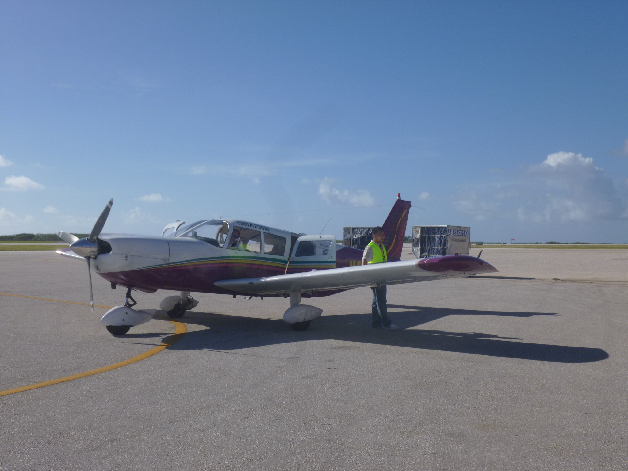 When I was back on Guam, several people had told me that there were ferries between the islands of Saipan and Tinian. And I was happy to hear that because I wanted to see more of the Northern Mariana Islands. But when I got to Saipan, I found out the ferries had stopped running quite a while ago, and the only way to get to Tinian was to take a commuter plane. And that turned out to be something the people at the front desk were able to arrange for me, for $49 round trip – the islands are only about 5 miles apart. They had made arrangements for a 9:00 flight, so I took the hotel shuttle to the airport, and there was no issue with identification on the little commuter planes – it was all very casual. There were quite a few little planes coming and going – carrying people, chickens, cases of food and beer, new auto tires, etc. Everything has to fly in, which makes things more expensive. I didn’t have a plan for the day, and no one had maps of Tinian, but I knew there was a visitor center there, and I had been told that the big hotel on Tinian sends a shuttle out to get people, even if they’re not staying at the hotel. I flew over in a 4 seater plane, and loved the short flight. It was fun to see the islands from the air – we didn’t go up high because it was such a short flight, so I really felt like a bird.