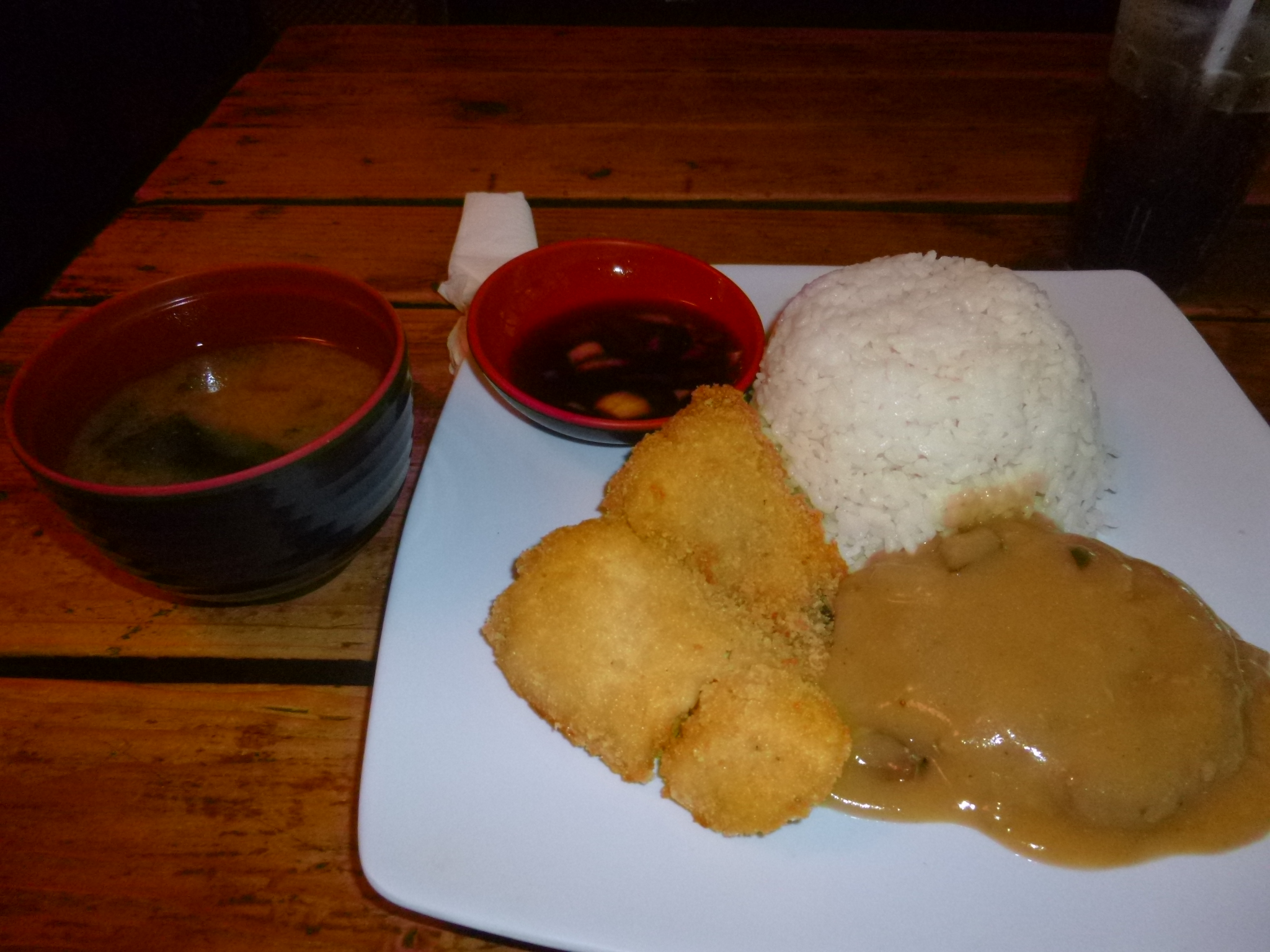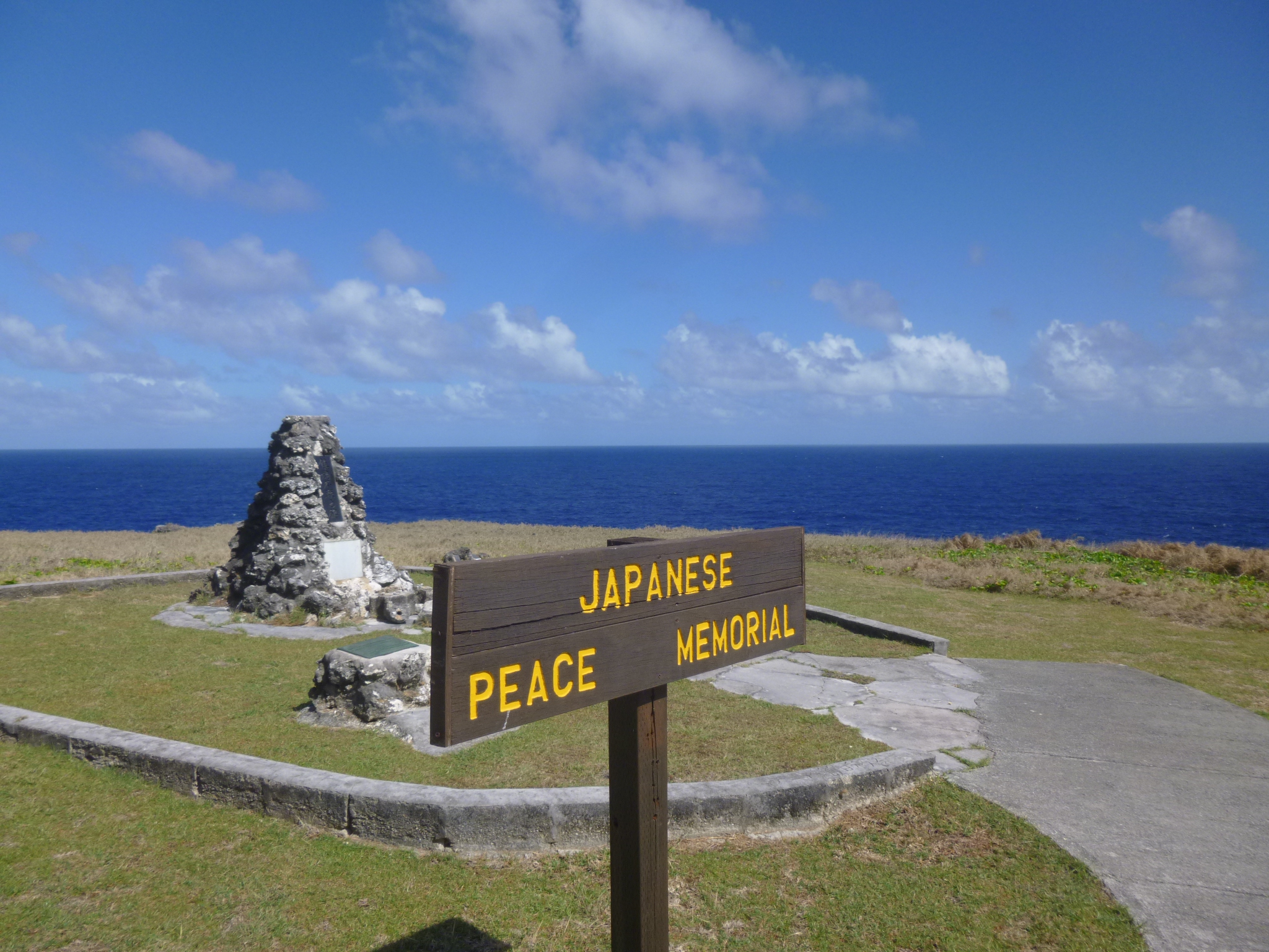From there I walked back into town in search of some lunch – it was a hot day and I had walked miles. The choices were very limited, but I found a Japanese cafe, and went inside. The menu was mostly Japanese and confusing, so I just asked for their lunch special which turned out to be some kind of soup with tofu, rice (I’m beginning to get a little tired of rice!), a hamburger patty covered in gravy and some kind of fish with a dipping sauce. It filled me up and I headed back to the hotel to see if the tour lady was there. This time there were quite a few Asian people hanging around in the lobby, and they eventually all got on a big bus. No one showed up for a tour so I went to see if there was a message, and found out someone else would be taking me on a tour instead since the other lady had missed the afternoon plane from Saipan. My tour guide turned out to be a local person who seemed to know every inch of the island, and it was a great tour. We went to Tinian’s version of the Suicide Cliff, where Japanese soldiers and civilians jumped into the sea to avoid being captured alive by the Americans. They didn’t all die though because there was just water below – not rocks like on Saipan. Other groups of soldiers gathered in a group and blew themselves up with a grenade. This was still considered an honorable way to die; honoring their Emperor and therefore enjoying an elevated afterlife status.