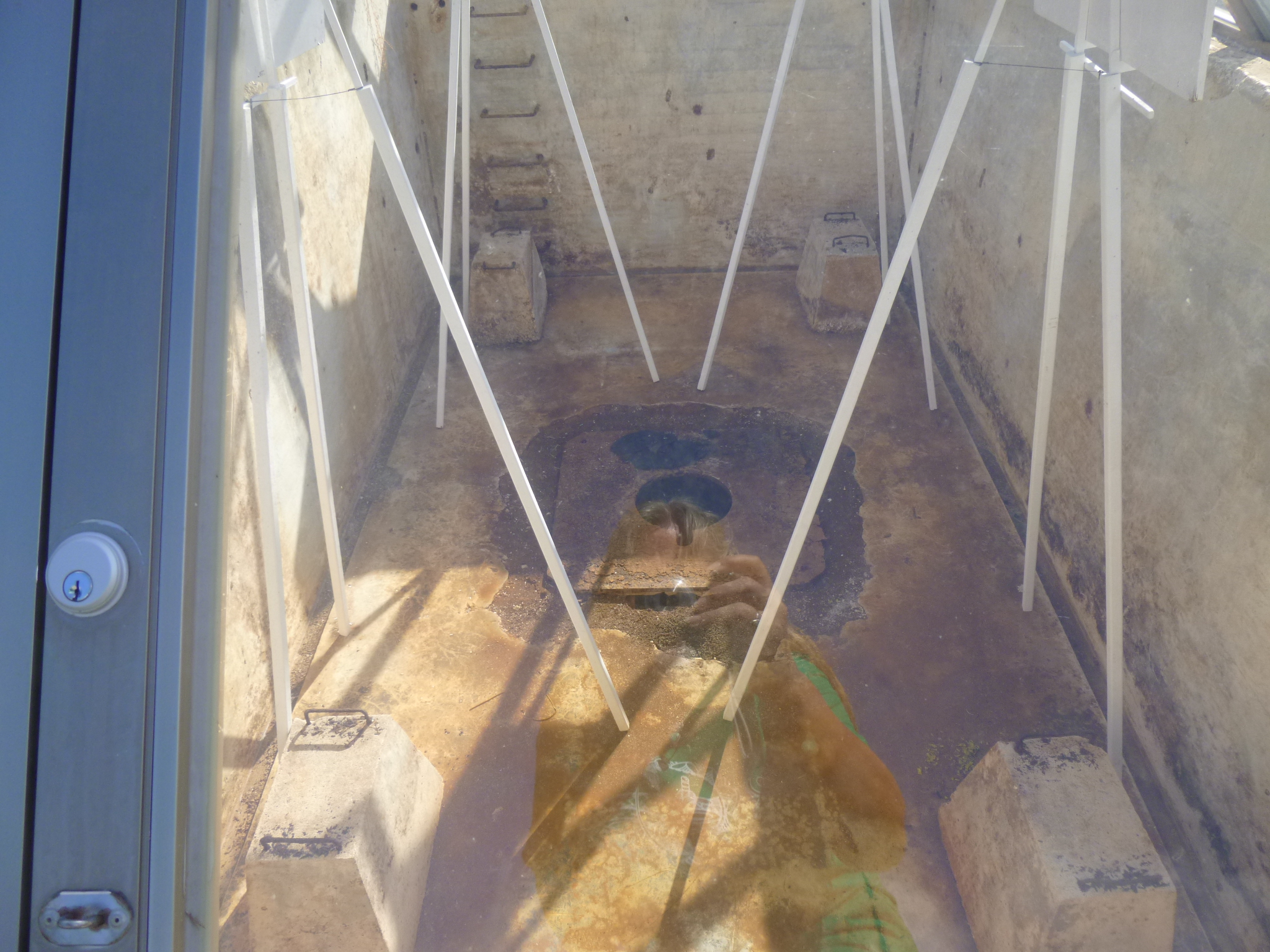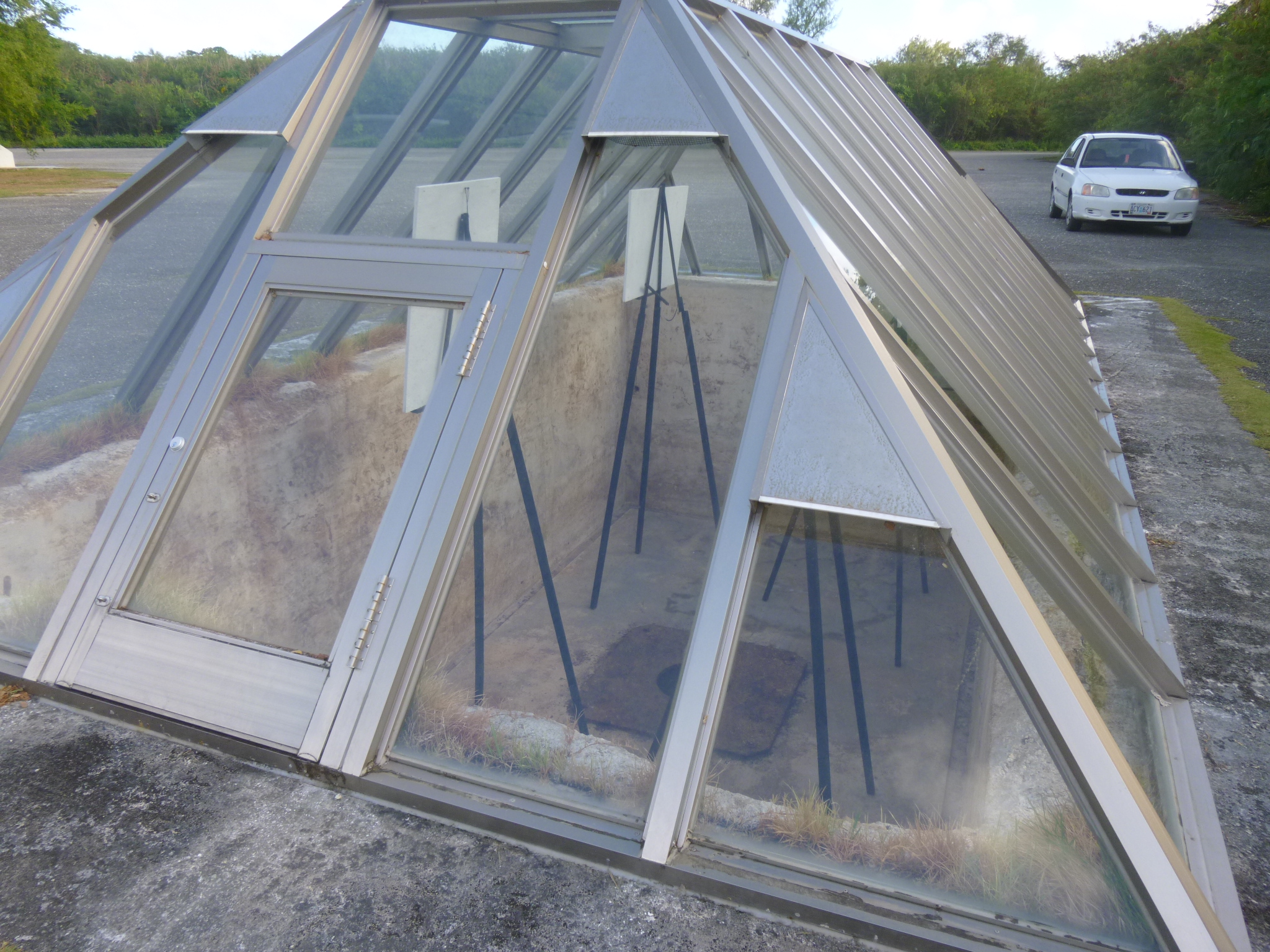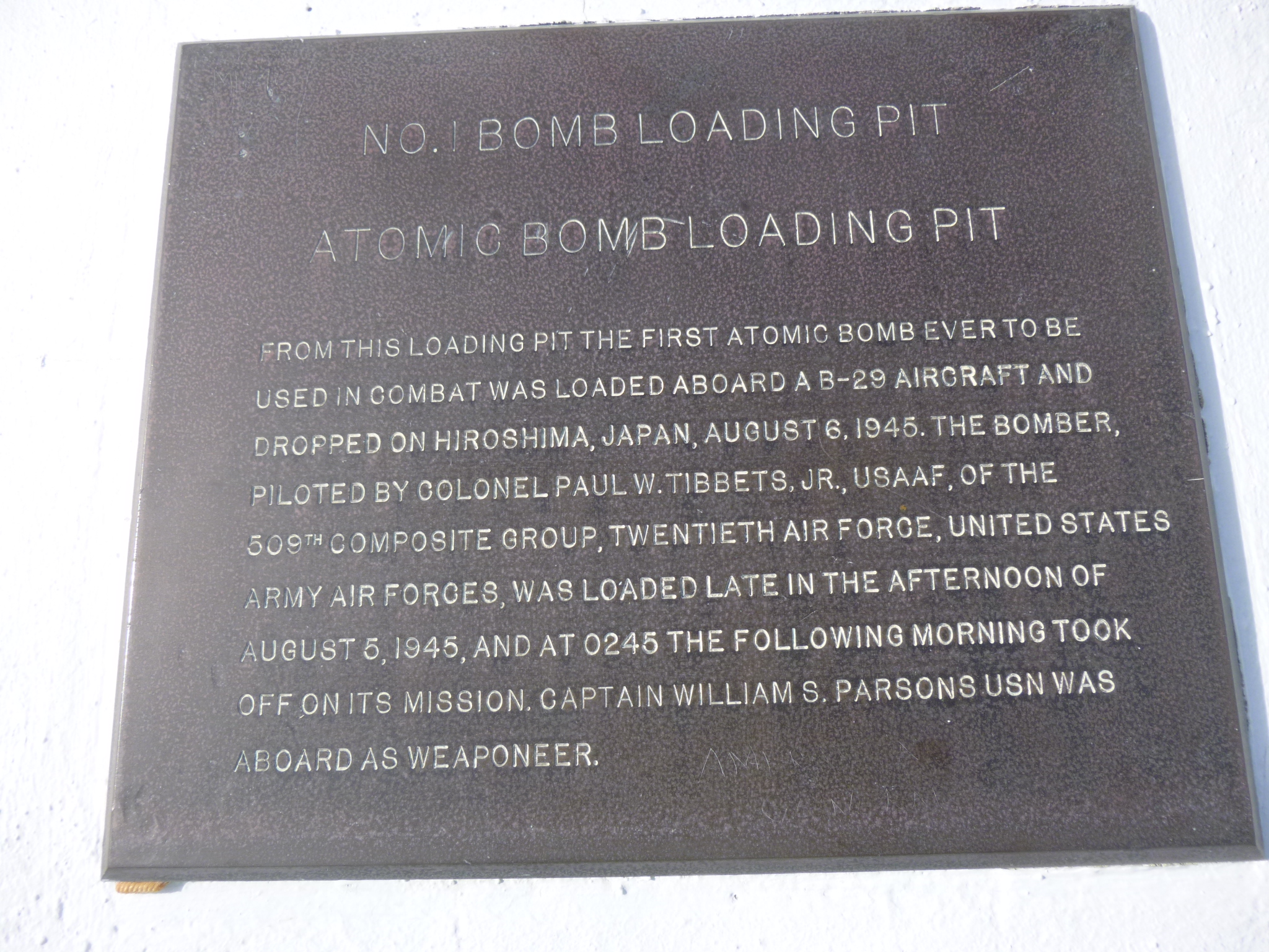 The road across the island was built in 1944 by the navy to haul goods from the harbor in the south to the airfields in the north. Apparently some of the soldiers building the roads were from New York, and they were homesick, and since Tinian is similar in shape to Manhattan, they named the roads Broadway, 42nd Street, Canal Street, Wall Street etc – just like back home. I didn’t expect to stand at the intersection of Broadway and 42nd Street today…such as it is! The airfield was very interesting. Back in 1944 and 1945, the small island of Tinian had the biggest and busiest airfield in the whole world. There were 4 long runways, specially built to accommodate the new B-29 Superfortress bombers. The first runway, which is the only one that hasn’t been overgrown, is the one that was used by the Enola Gay bomber to take off with her deadly atomic bomb, which helped end WWII. Many other planes and many other bombs took off from both Tinian and Saipan, and Japan had no way to defend herself once the US secured these islands that were so close to Japan, yet so far from America. America had a very well-organized supply system with both the navy and the merchant marines, and that made a big difference. I was also able to see old fuel storage buildings, and I went into a Japanese air raid shelter. I walked along a good part of the runway, and we drove along the whole thing. The atomic bomb pits are now covered with glass shelters, but there were posters inside showing the process of loading the bombs. The bombers needed every bit of the mile and a quarter length of the runways to get off the ground with their heavy loads. Everything is so quiet and overgrown now – it was kind of difficult to visualize what this place must have been like nearly 70 years ago.