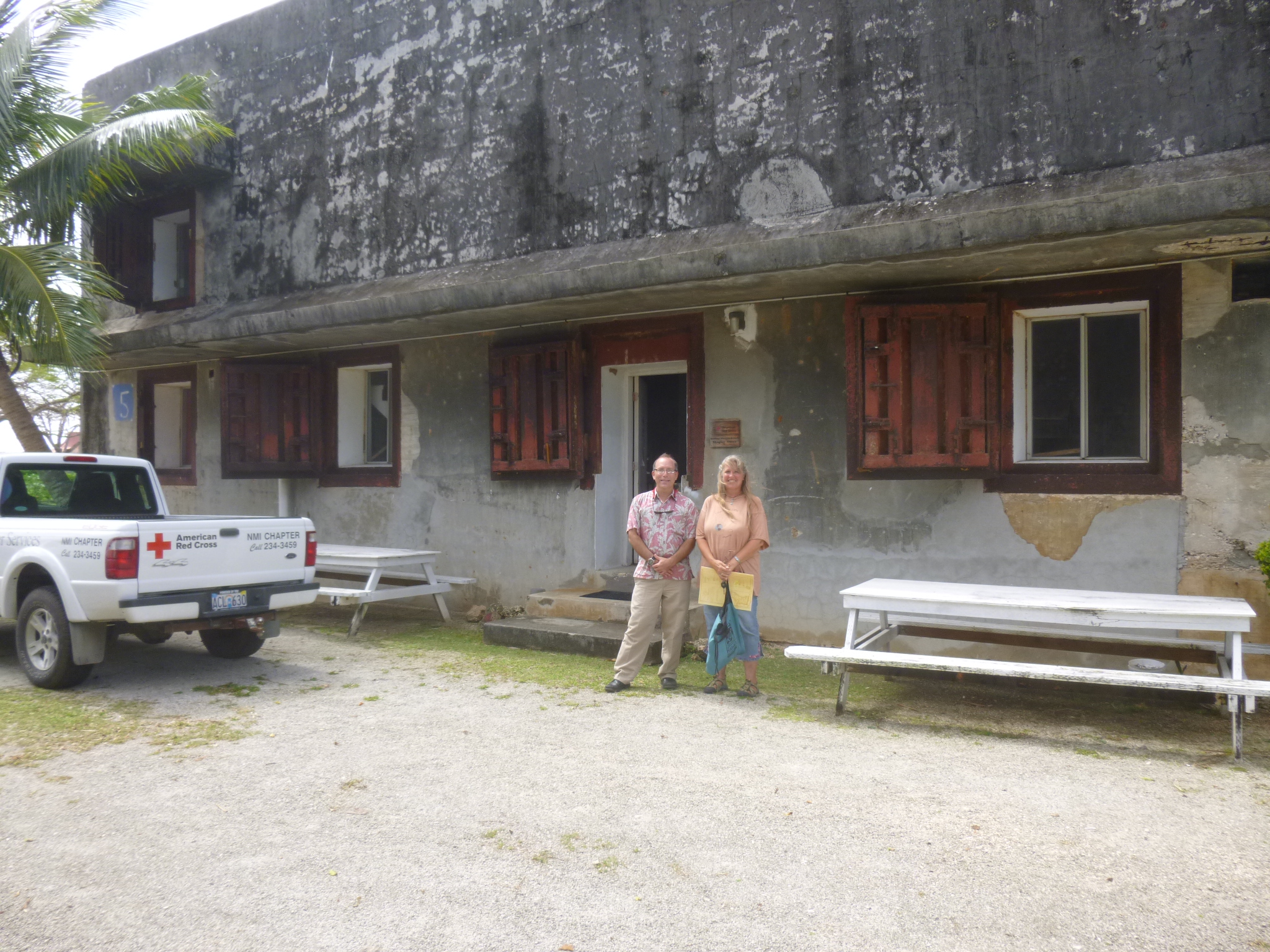 I got in my rental car and drove down to the south end of the island – I had noticed the Red Cross office was by the airport, and that’s where the first donation today went. I found the building, which looks very old, and went inside and met John, the director. He told me that because the building is located in a historic district, they are not allowed to do anything to the outside of the building, but can do what they want inside. There were offices upstairs, and a display case of old interesting Red Cross memorabilia downstairs. Unlike American Samoa, Saipan hasn’t had to cope with a major natural disaster for 8-9 years. But they’re ready for whatever might happen, and in the meantime have other things to organize like swimming lessons and lifesaving classes etc.