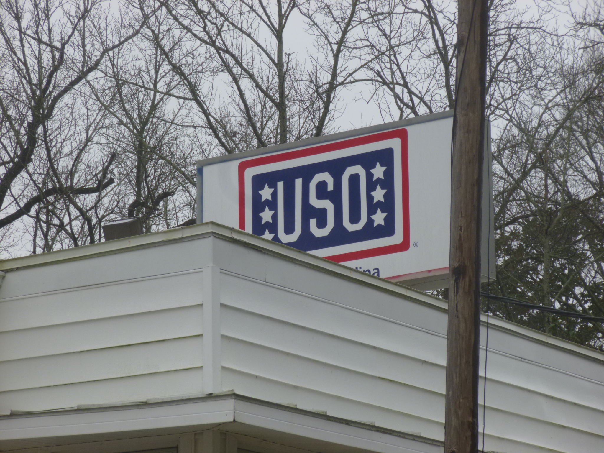 When I was researching donation possibilities last night, I thought maybe this would be a good town to make a military-based donation because I’m right by Camp Lejeune. And that’s when I discovered there are still USO facilities! In my mind, those were something from WWII days with Bob Hope entertaining. But there are still quite a few active USOs in the country and the one here in Jacksonville offers several programs like Smiles Over Miles (where family members can make videos for deployed loved ones); Honors Support Team (to make sure a fallen comrade is never alone on the final journey home and to help the family at airports and with other red tape); Deployment and Homecoming Support; and other programs. I found the building and went inside and it was fun to look around. It was very spacious and there were a few shelves of USO items that were for sale. They have a cafeteria which is open to the public for lunch, and several of the rooms can be rented out. The lady who showed me around says the function of a USO has certainly changed over the decades – many of the programs that used to be part of a USO are handled right on base now, so this USO does more outreach programs instead of having soldiers come to them. There were a couple of original phone booths in the big reception room where soldiers used to line up to make phone calls. And there were old records, old sheet music and old photos on the walls. So it was fun to make this donation and learn about USOs of today – especially since this one turned out to be the oldest continuously running USO in the country. The one in Fayetteville is a little older, but they shut down for a while after WWII.