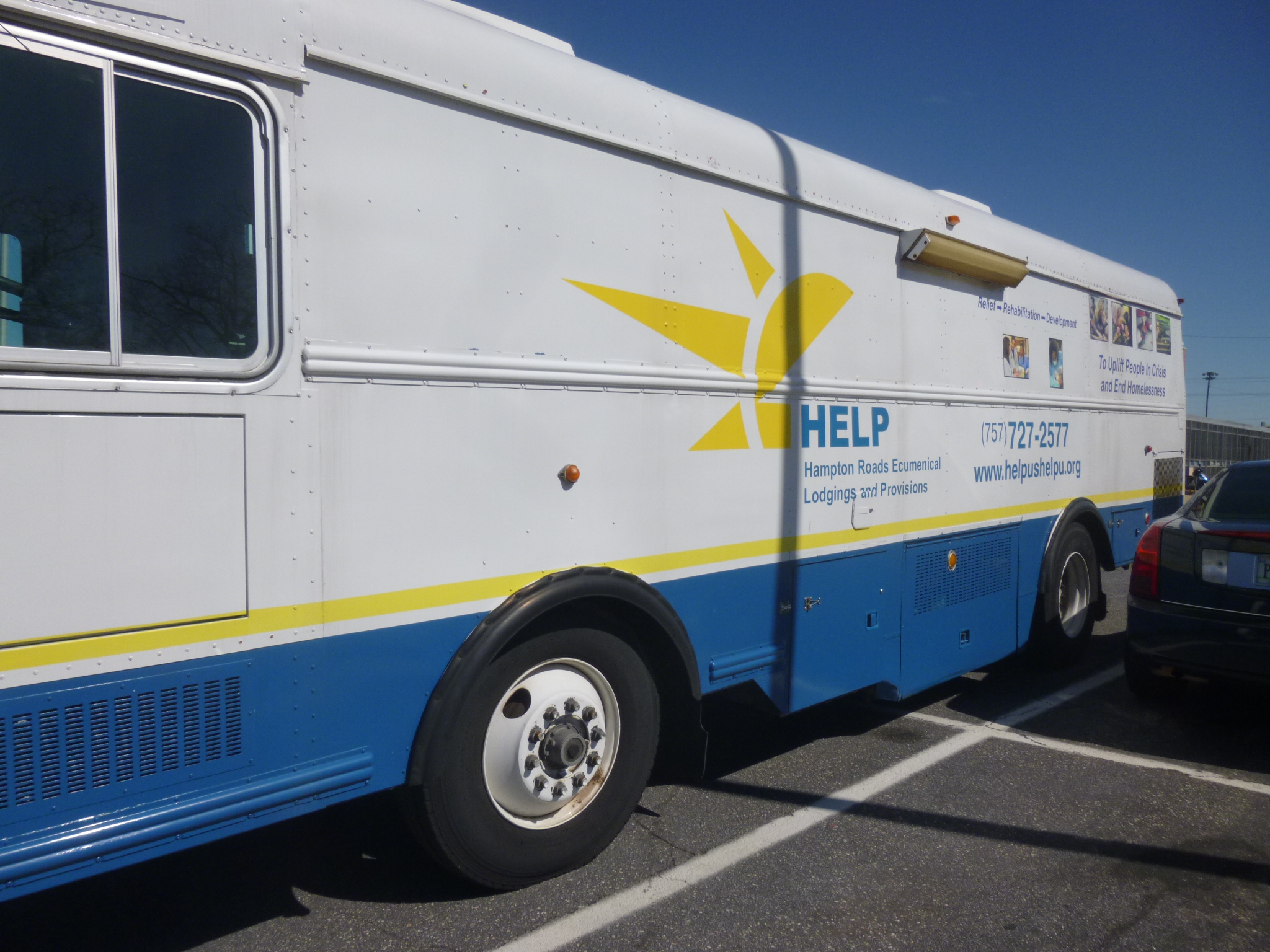 Last night I researched some donation possibilities in the area, and found one right close to where I ended up. It’s called HELP, which is an acronym for Hampton Roads Ecumenical Lodging and Provisions. They’ve been helping homeless people for over 30 years, and are located in the Department of Social Services Building, but they have a big space of their own. There’s a food pantry, and numerous medical and dental exam rooms for the 500 patients who are seen by volunteer doctors and nurse practitioners and other medical personnel. I met one of the directors of the program and she showed me all around. She also told me about a cooperative effort among 28 churches in the city, which each take a different week to provide sleeping space and food for the homeless people, to get them through the colder months. The community center provides sleeping mats and the church volunteers provide dinner and breakfast, so there’s a lot of nice teamwork going into that effort. HELP was a busy place, and I put my donation toward the medical/dental part of the program.