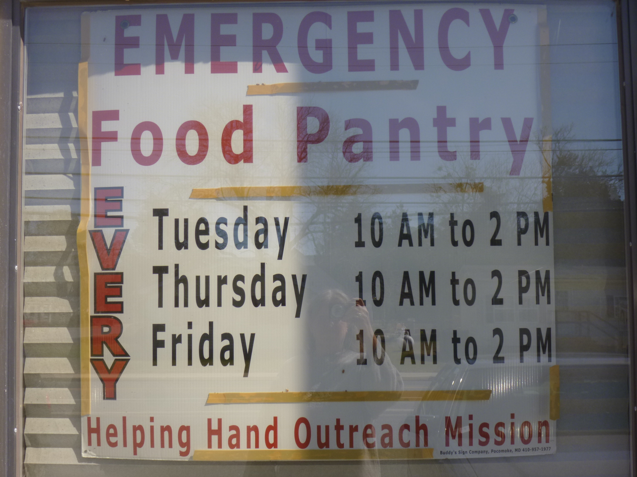 Then I was off to Maryland! I crossed the state line, and stopped in the first town I came to, which was Pocomoke City. I was going to skip it at first since we hadn’t been in the car very long, but then decided I may as well get out and start the first of the Maryland walking! There was a pretty little drawbridge over the town’s river and a path alongside the river, but we couldn’t go real far on it due to recent flooding. So we turned around and walked through town and one of the neighborhoods, and got a couple miles in. Then I decided to look up any food pantries in the area, but since it was Sunday I wasn’t hopeful about finding anything that would be open. But I did run across a big program called Making a Difference Together, which runs the Helping Hands outreach ministry and food pantry. It’s all part of the Miracle Deliverance Tabernacle and they have about a dozen different outreach programs, which seems to be organized by a very ambitious woman who also became a pastor. I wanted to make a donation to them, and read that the food pantry was located down the street from where I was parked – at a different location than the church. I figured since it was Sunday morning, the church would be in the middle of services and I didn’t want to bother them, so I just drove to the food pantry to take a picture, and then I was going to mail in the donation. So I got out a took a picture of the food pantry sign and the building, and then a man dressed in a suit stepped out – probably wondering why I was taking pictures of the building. I was unable to see inside the building. It turns out that I was there on the one day a YEAR that church services are held in the food pantry building, because it was their annual big church dinner after the service and movie. Once I told the man what I was doing, they asked me to come in, and I met several of the ladies – all dressed beautifully in dresses and matching hats (and there’s me in jeans and a sweatshirt!). I was very worried I was interrupting them, but they assured me it was movie time, and the ladies told me about their food pantry program, and we all marveled about my timing to show up when I did with a donation. It was a fun stop, and nice to meet other ladies with such big hearts. And to think I almost didn’t stop in town!