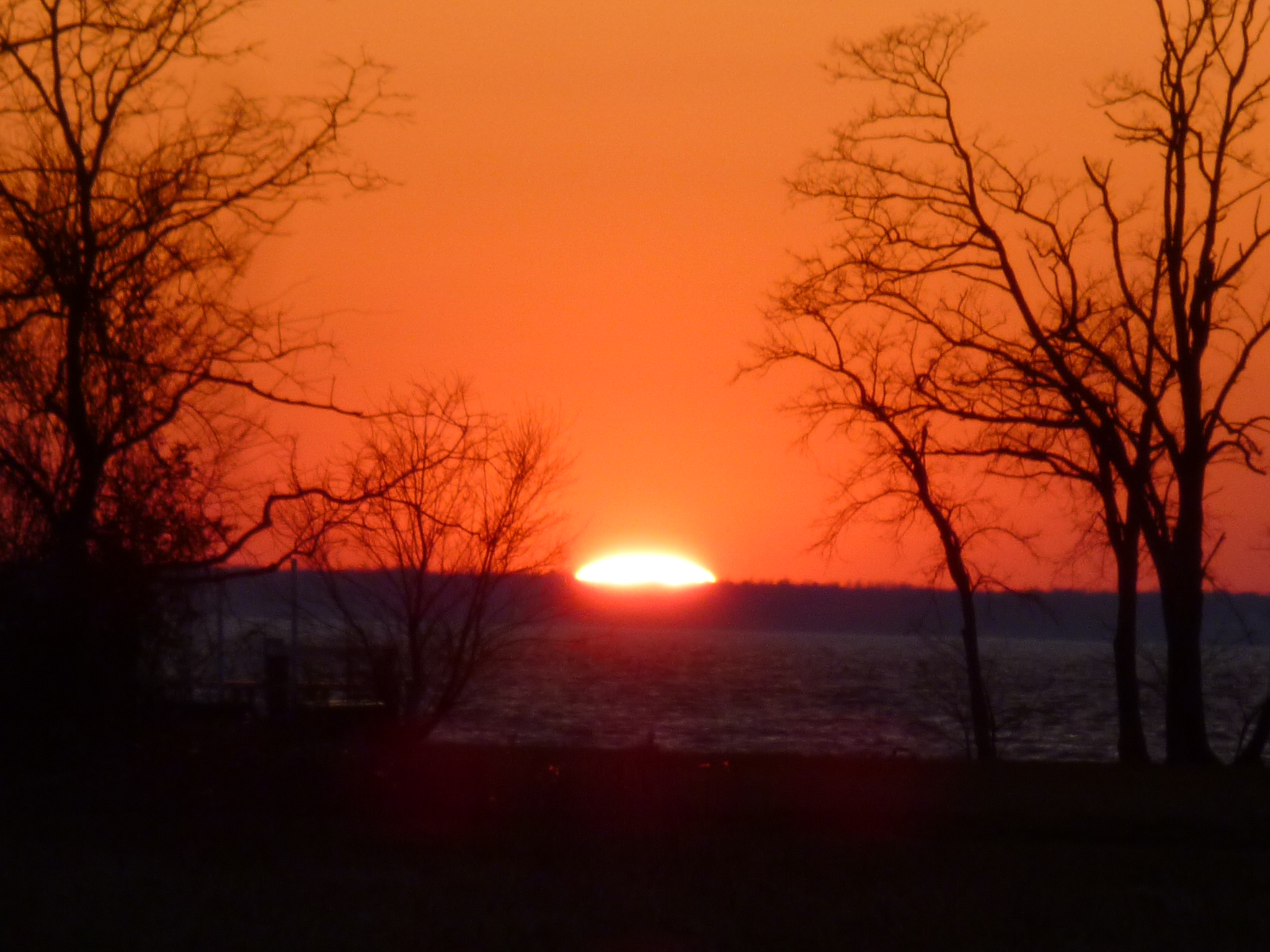 Then I just had to follow the road all the way out to its end on Tilghman Island which was almost in the middle of the Chesapeake Bay. I went through several tiny villages – they’re kind of isolated, and the little peninsula ended at a naval research station. I was able to see the sun set over the bay. As I drove back I saw a fox, but the picture is a little dark. I got back to the main road and continued to head north to Elkton for the night.