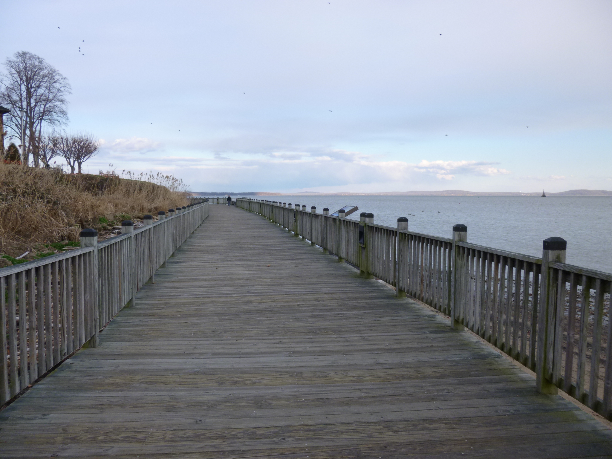 From there I drove a few miles over to the town of North East for some more walking. I love these little coastal towns and that’s why I don’t make too much progress around the bay – I stop in lots of them! After walking a bit in North East, I crossed the Susquehanna River and stopped in Havre de Grace, my favorite town of the day. Havre de Grace is at the very top of the Chesapeake Bay and was a big fun town to walk through with several walking paths, one of the oldest continuously working lighthouses on the east coast, and a long boardwalk around the top of the bay where I discovered a new national park thing called the Star Spangled Banner Trail. The trail only became a reality last year to commemorate the bicentennial of the War of 1812, and connects many historic sites in 3 different states that were somehow involved in the British invasions. I’m going to have to look into this more – there are apparently several national park “trails” that link together various sites of historical impact (uh-oh – yet another road trip idea!!) Tula and I finished our walking for the day, and since pets weren’t allowed on the boardwalk, I put Tula in the car and went out on the boardwalk for an extra mile or so. That’s when I learned more about the War of 1812, and how the British burned most of the Havre de Grace (along with many other places) during their invasion, and destroyed what they couldn’t burn. The “bombs” that the British used during this war gave off a red glow, and they’re what inspired Francis Scott Key to write the Star Spangled Banner, which was his poem set to music that already existed. I didn’t realize the battles that inspired him were the ones that took place in the Chesapeake Bay – I guess I thought he was farther south when he wrote this – don’t know why!