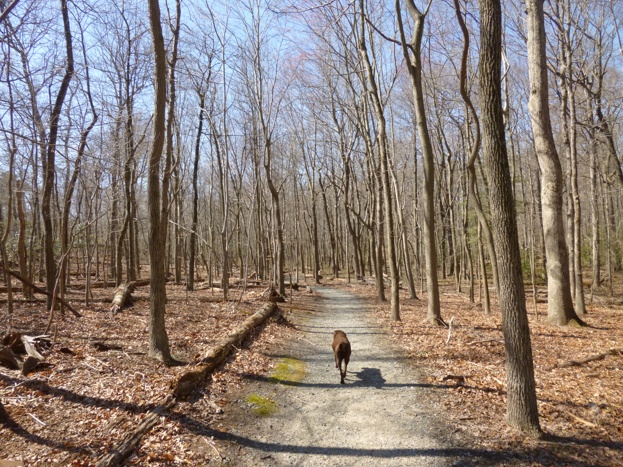 As I had been driving from Fort Meade to the Clara Barton place, I saw a national park sign for the Greenbelt Park, and I’d never heard of that one. I pulled off at the exit, and found a big park in the woods with some nice trails and Tula and I walked our first miles of the day there. The amazing thing about the Greenbelt Park is its proximity to Washington DC – it’s so woodsy and quiet, it’s hard to believe the metropolis of Washington DC is only about 12 miles away. They call it an urban oasis, and it truly is.