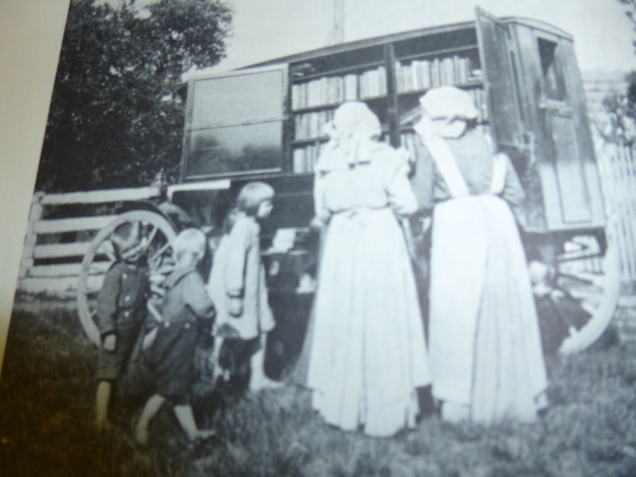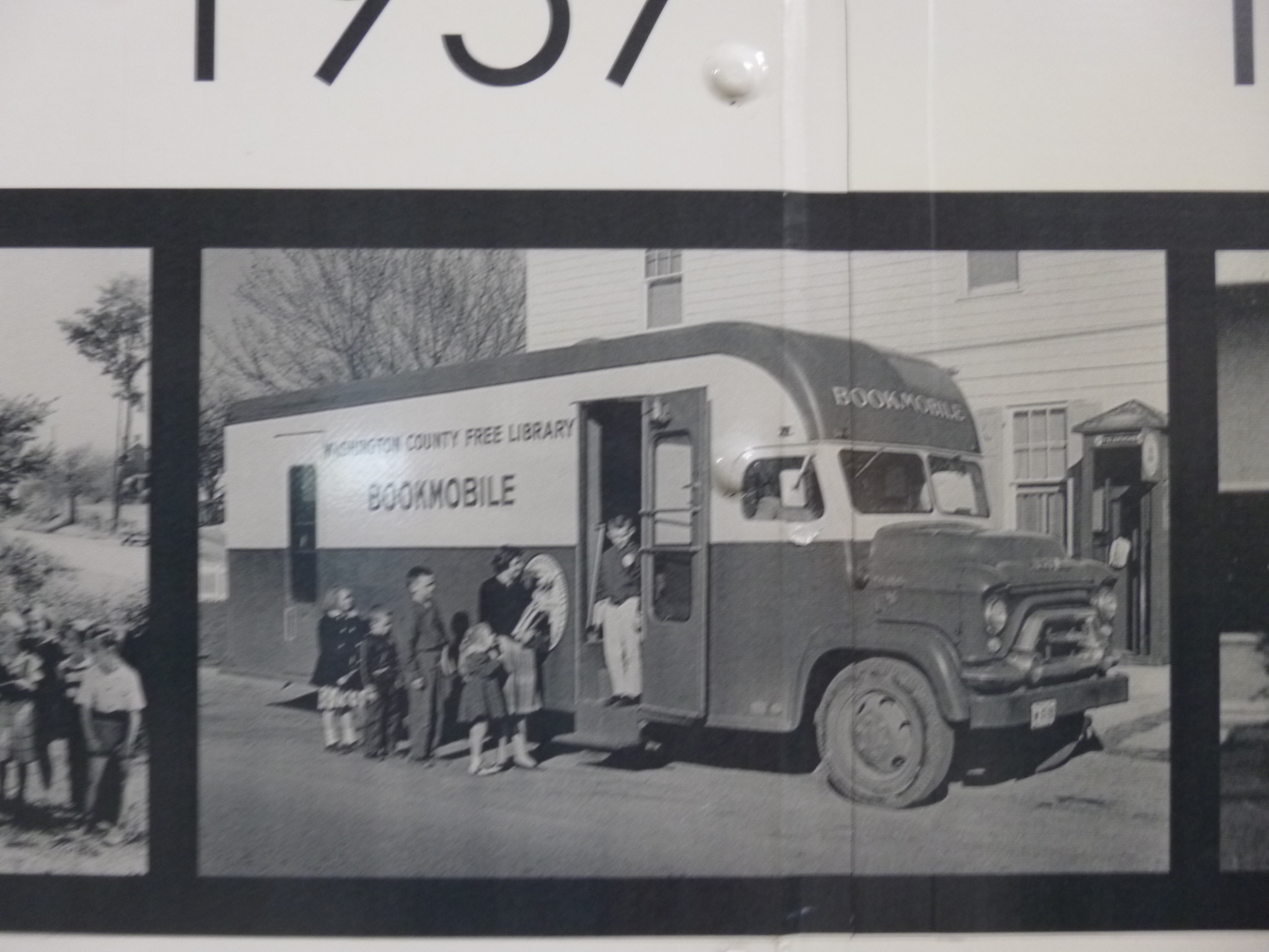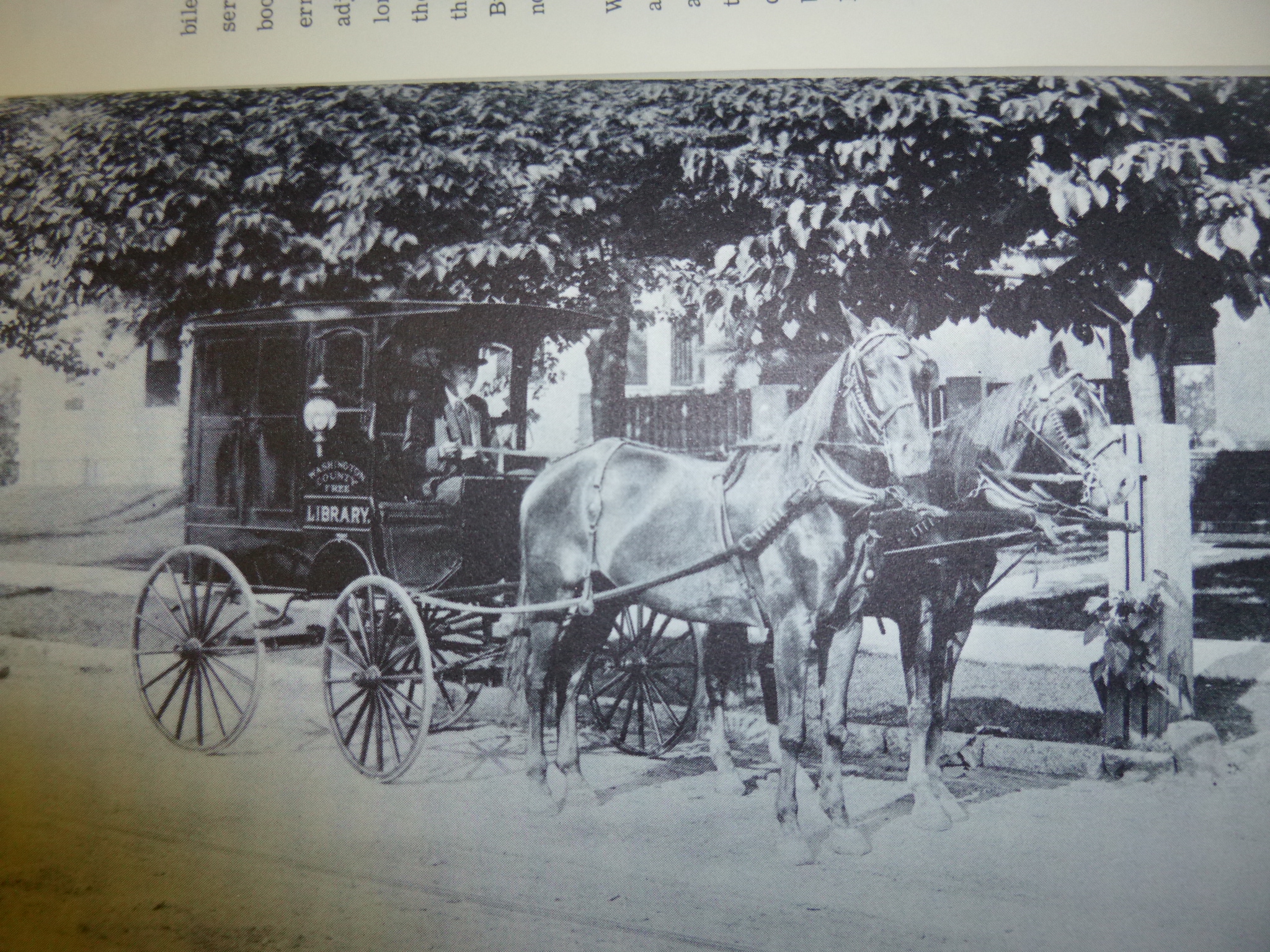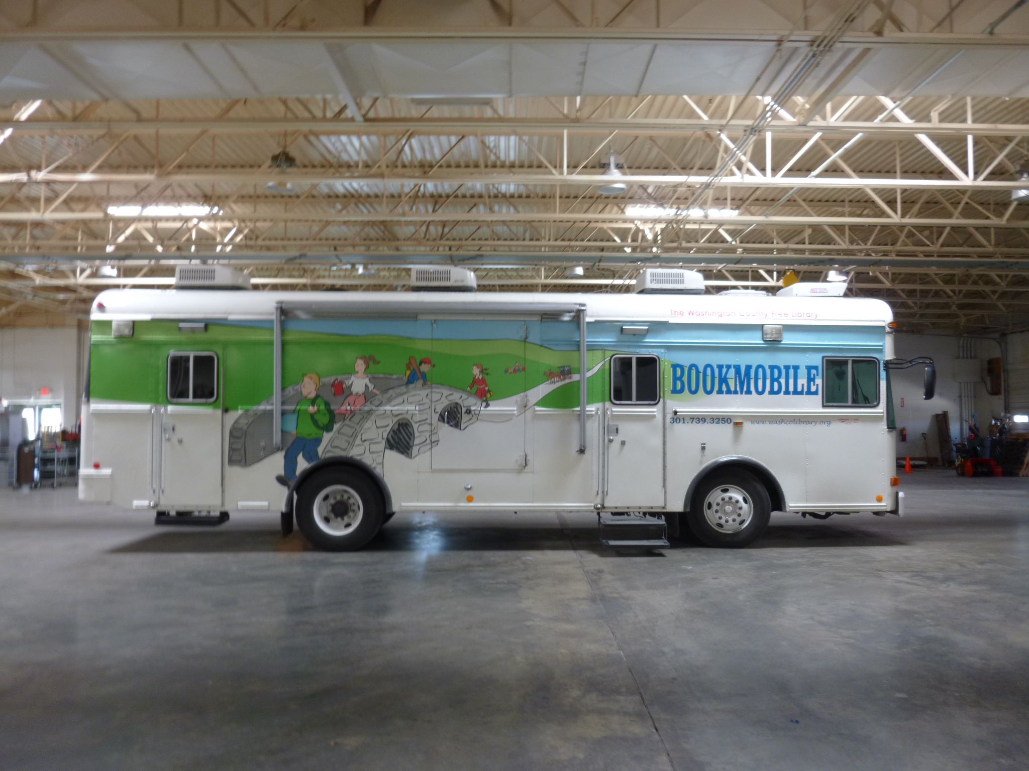 I had done some reading, and found out that the Washington County Library in Hagerstown, Maryland was home of the oldest bookmobile in the country. At the turn of the last century, reading was still considered a luxury by many people. But in 1905 in Hagerstown, the librarian came up with the concept of a horse-drawn book wagon and loaded it up with a couple hundred books and sent the library janitor out to the rural farm areas. It was a big hit! And the library’s bookmobile has been in service ever since except for a short time during one of the wars. So I thought a donation to the oldest bookmobile in the country, so they can get some more books, would be a fun idea. And this donation is in honor of my mom, who always has books close at hand – and she’s also enjoyed the services of a bookmobile. So I drove to the library in Hagerstown, hoping I’d be able to see a picture of the original book wagon. And I talked with Michelle at the library, and she was happy to help me with my quest to find a picture of it. I learned more about the bookmobile and library, and she found some good pictures. Then she offered to call the place where the current bookmobile is (their library is undergoing renovations which will be complete soon, so the library has things in 2 different locations), and the lady there said she’d be happy to show me the warehouse that more of library books and current bookmobile are in. So I drove over there and met Marilyn and we talked for quite a while. Their current bookmobile is like a huge RV, and the side of it is painted with a little history of the bookmobile, with pictures of all the different modes of transportation they’ve used in the past 100 years. The bookmobile visits about 80 different places every month, and they no doubt make a lot of people very happy! It was a fun donation.