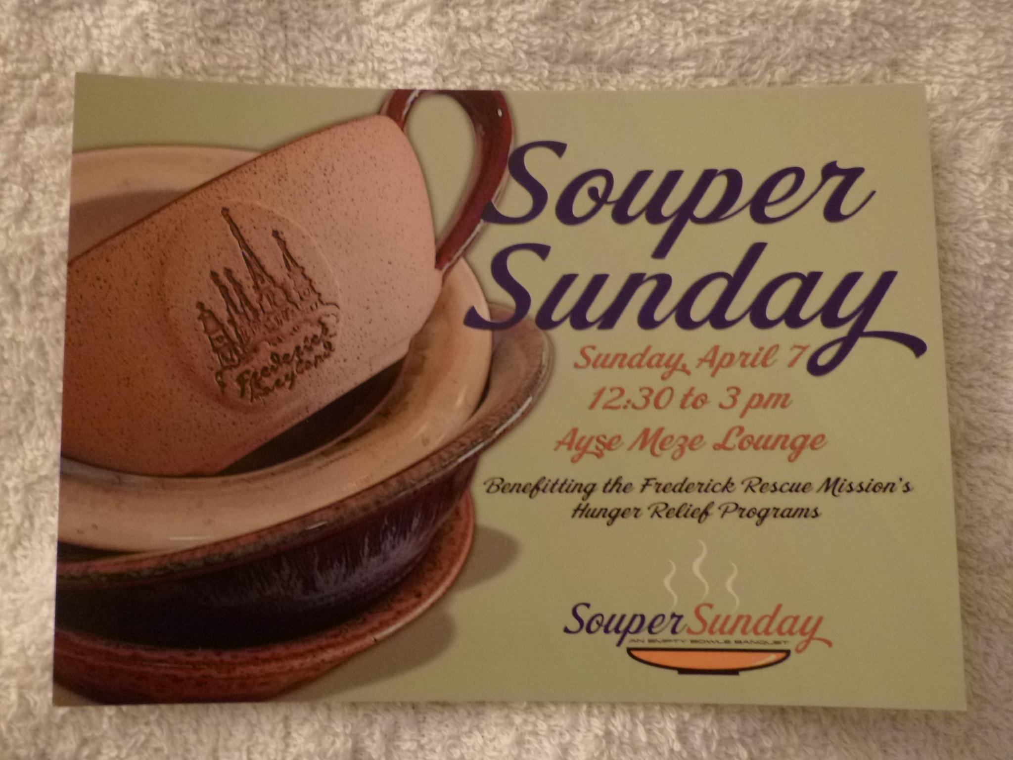 At that point, I was going to head to the Antietam National Battleground to do some walking and then I was going to head for the town of Frederick for my second donation. But knowing that the donations can sometimes take longer than I expect, I decided to head to Frederick first. This donation was also a fun one that I read about. There’s a “Souper Sunday” fundraiser coming up for the Frederick Rescue Mission’s Hunger Relief Program, and I wanted to support that. To do so, I went to a pottery shop in Frederick, where volunteers had made dozens of beautiful soup bowls to give away. By choosing a bowl, supporters were agreeing to pay $25 for a ticket to the fundraiser, where local chefs will be preparing lots of different kinds of soup to fill up the bowls. I won’t be in Maryland when the fundraiser is held, but I bought 2 tickets anyway – and gave them a little extra so it was $56 – and they let me choose 2 bowls. That took a while because there were lots of shapes, designs and colors! The event is very well attended, and last year they raised about $10,000. It would have been fun to be in town to sample a lot of good soup! Both Timber, the young lady running the shop, and another lady who was choosing out a bowl, were very supportive of my journey, and Timber even wrote a nice note and put it in my bag which I found later.