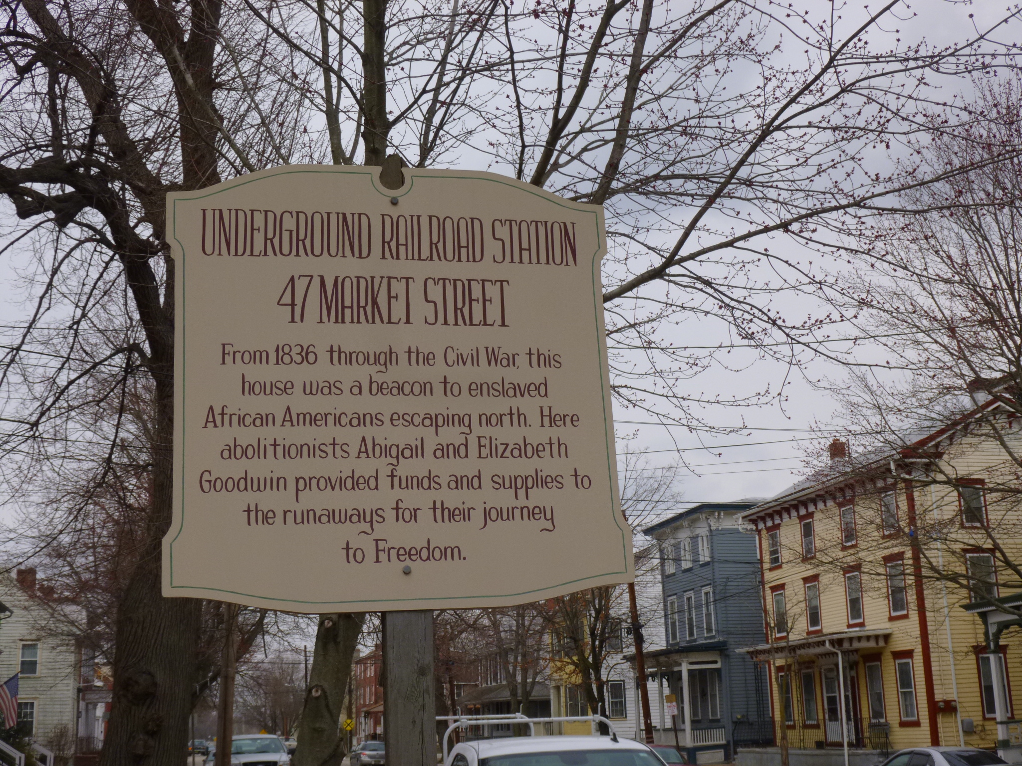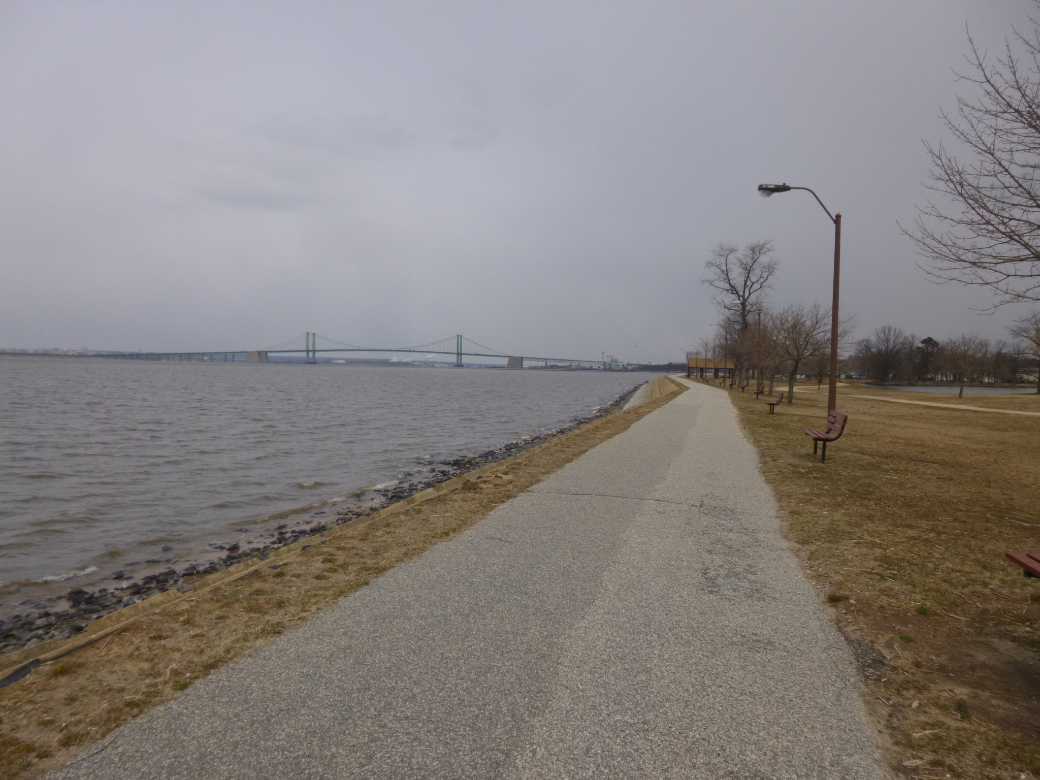 Today is the beginning of New Jersey – State #26. I had stayed at an inexpensive place on the east side of Maryland because it looked like pet friendly motels might be a little more challenging in NJ – and I woke up to a light snow! It wasn’t too long a drive to New Jersey – I did a couple quick errands, then finished the Maryland miles, then drove about 12 miles in Delaware, then over the Delaware River into New Jersey. There’s a lot of turnpikes in New Jersey and I want to avoid most of them, so I took the first exit immediately after crossing the bridge, and found myself in Pennsville. After a quick bite to eat, Tula and I started our NJ walking on a path in a park by the Delaware River. There was a monument along the river saying the Delaware River was the colonial highway for Swedes and Finns. It was chilly out, and there was a brisk breeze, so we just did a quick mile and a half. Then I moved on to a town called Salem, and got out for another couple of miles. According to a sign, Salem means “peace” and the town was given that name by the first Quaker colony in 1675. There’s an old log cabin standing in town, but I’m not sure if it’s been standing since then, but it sort of looks like it! There was also a house in Salem, owned by 2 sisters who were part of the Underground Railroad – if only the walls could talk.