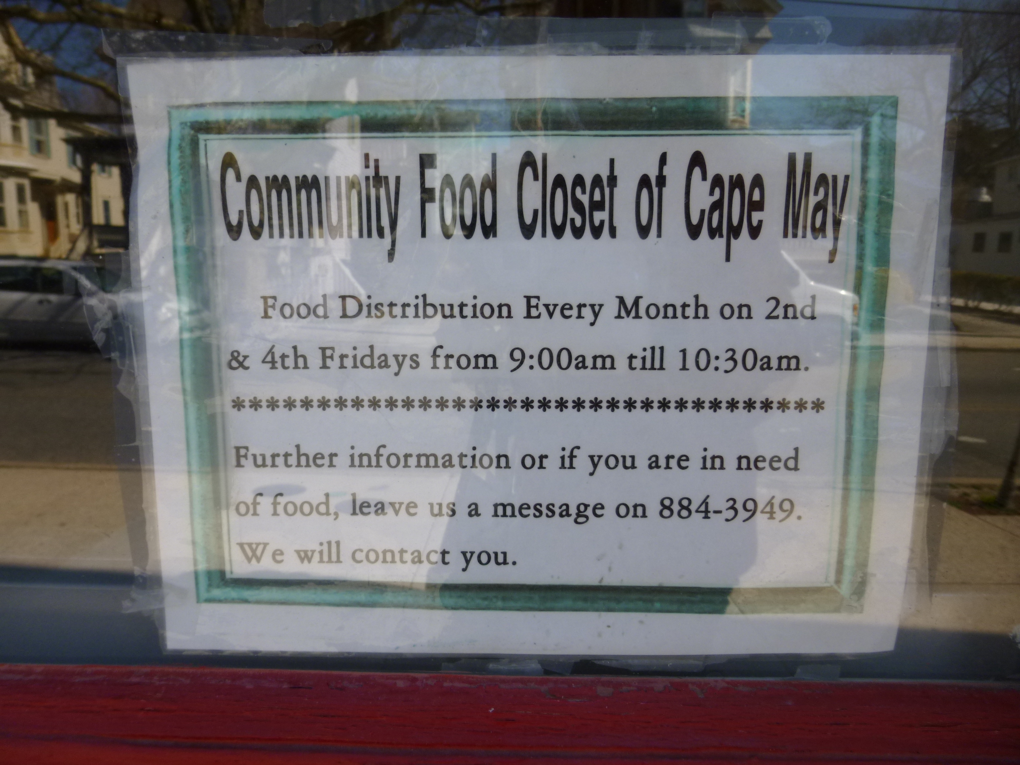 I decided to head down to Cape May on the very southern tip of New Jersey’s shore line. Cape May claims to be America’s oldest seashore resort, and in the late 1800s it rivaled Newport, Rhode Island as a destination for the wealthy and famous. It looked like a great town to walk around in. But first I wanted to take care of my donation, and today that went to the Community Food Closet in Cape May. This food pantry is open every other Friday in the morning, and I had called yesterday and spoke to someone at the church to make sure they would be open today. Normally they would have been, but their schedule changed slightly because of Easter, so they weren’t open after all, but Liz, the food pantry director, was there anyway to help a few families who had thought the food pantry was open. I watched as she helped the families – she was very generous with the food she passed out. The food pantry had received a big shipment of frozen chicken, so that was good for everyone! I had arrived a little later than I intended, and didn’t have time to shop on my way down, but Liz told me a financial donation would be most helpful anyway, because they’ll be shopping for Easter hams to hand out next week to all the families who need food assistance. So I was glad I hadn’t shopped – I like the idea of helping with Easter hams! Last year this food pantry helped 1162 families, and because they get several days worth of food when they come, that worked out to 250,912 meals that they provided. Wow!