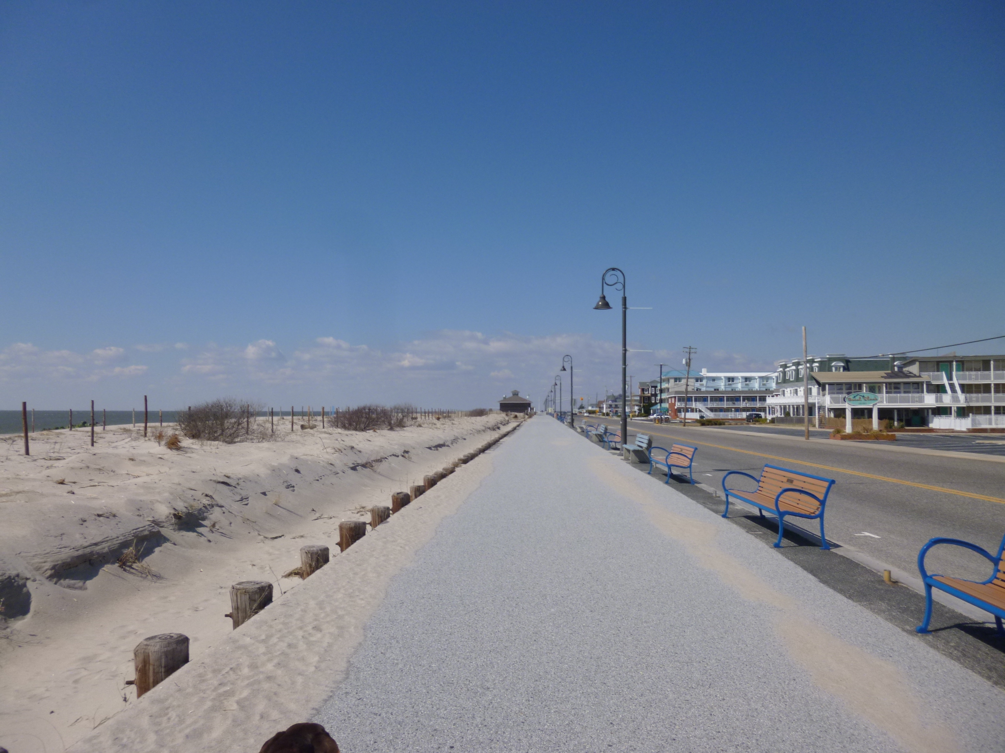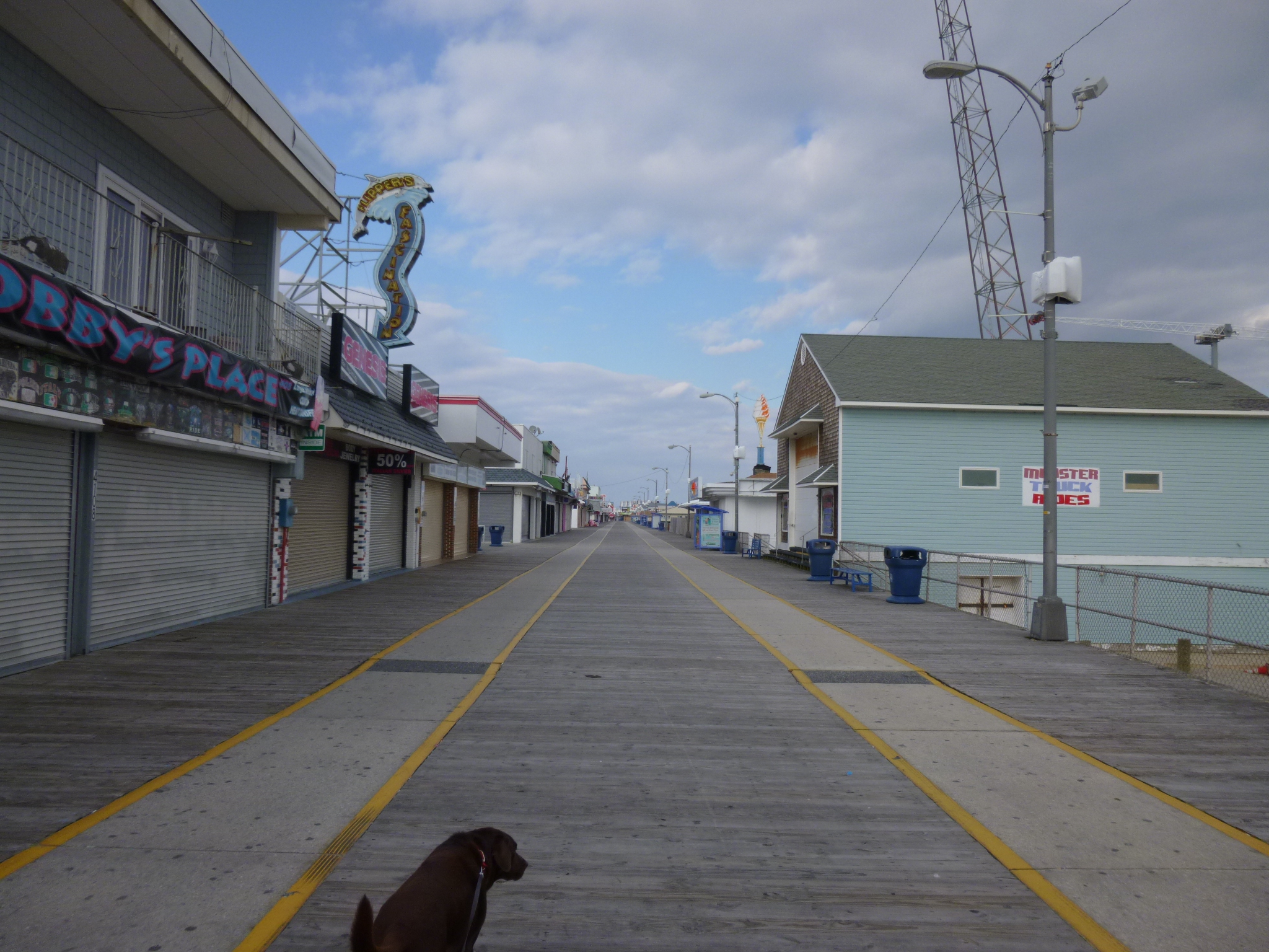 And then I stopped in Wildwood, just a little north of Cape May. There was a boardwalk in this town, so Tula and I got another 4 miles of walking in, giving me a total of 11 for the day. This boardwalk had an amusement park pier, and I still think it’s a little creepy to see all the rides silent and still, and all the shops closed up – it makes the place look so abandoned. I sort of feel like I shouldn’t even be walking there, but there were other people out and about. Soon enough the place will be packed, and I’m happy to be there when it’s not crowded!