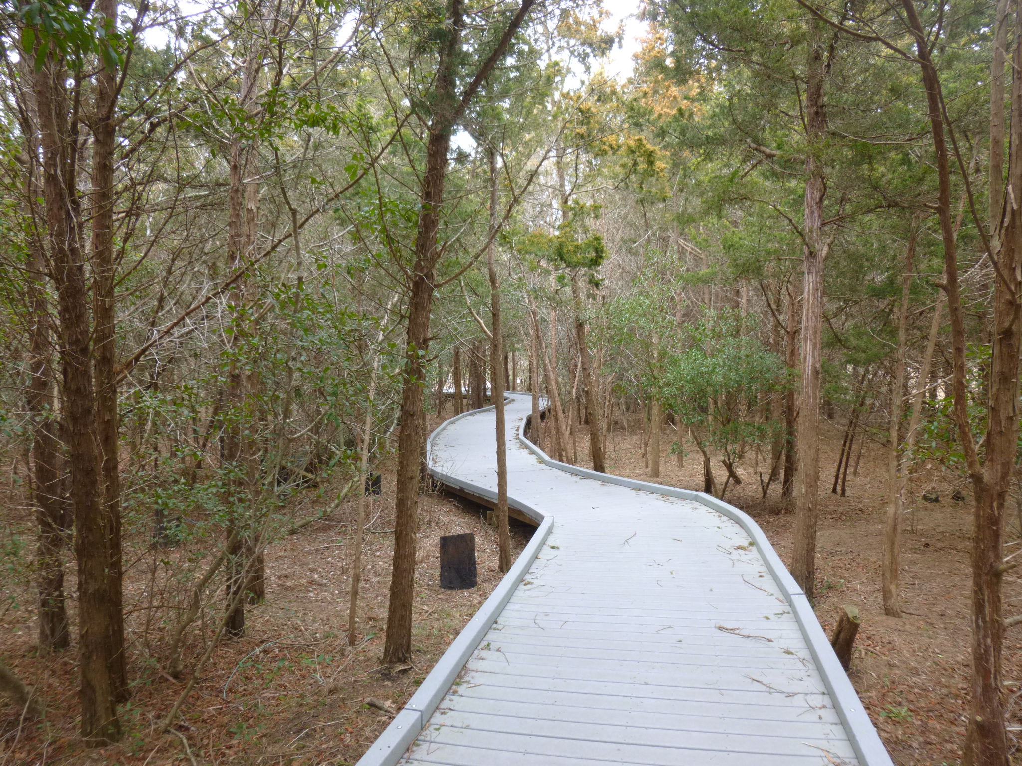Then Tula and I set out for a walk on the promenade by the ocean. It was chilly out, and very windy, but I layered up and got out the gloves, and we set off to walk the promenade from end to end and covered nearly 4 miles. We also walked through some of the town and admired the big Victorian homes along the waterfront. A couple places were still boarded up from the hurricane. There were a few candy shops open and they were passing out fudge samples, and I tasted them, but didn’t think it was as good as Mackinac Fudge! It looked kind of funny to see the fudge people outside in down jackets and scarves! After that long walk in the cold, I warmed up with some hot chocolate in a coffee shop. Then I drove out to the Cape May Point State Park and did a little more walking. There were a couple nature trails,and dogs weren’t allowed, so Tula had to stay behind. I walked another 2.5 miles on a combination of boardwalks, sandy trails, little wooden walkways etc – it was a really pretty walk.