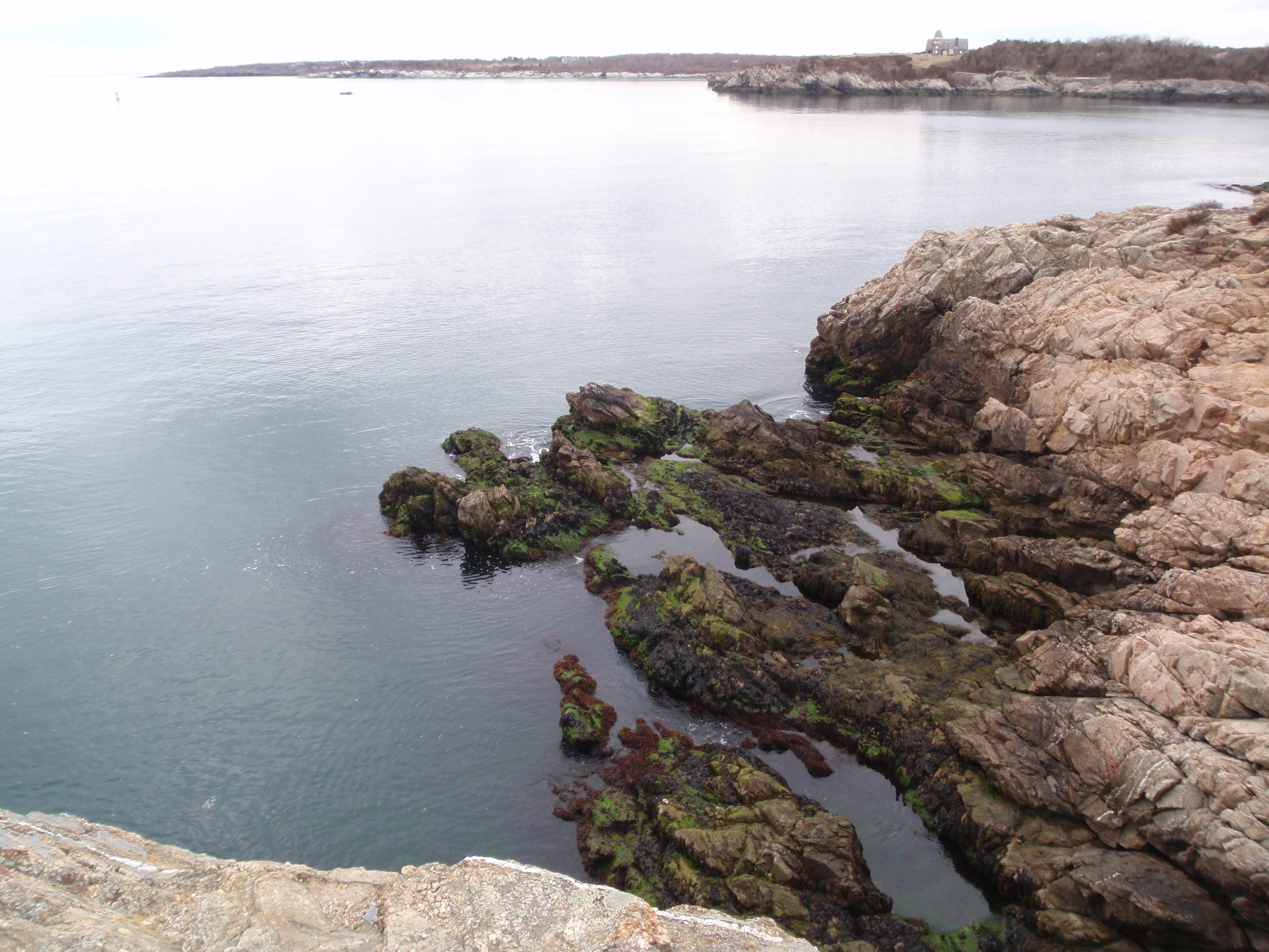 Then I crossed the big bridge onto Conanicut Island, which I had driven across on my first visit in Rhode Island, but I hadn’t been able to stop and see much of it. I first stopped at Fort Wetherill State Park and did just a little over a mile of walking and enjoyed the rocky coastal view from up on a cliff. Then I drove to Beavertail State Park for another mile and a half of walking. There is a working lighthouse at the tip of the island and the rotating beam is kind of mesmerizing. And as we walked along the rocky mouth of the Narragansett Bay I could also hear the clanging bell out on a buoy, and it sounded kind of forlorn. It was a gray day with threatening raindrops, but I found it beautiful – the solitude, the lighthouse beam and the clanging buoy. I imagine the lighthouse and buoy were reassuring sights and sounds to many a mariner. Jamestown is the only town on the island, and I finished my walking for the day in town. It was dinner time then, and I passed a little cafe that was advertising a special of crab cakes over mixed greens with a fruit salsa and a meal sounded good, so that’s what I went back to get and it was as tasty as it sounded. Then I drove across another bridge and stopped for the night in the outskirts of Newport where I’d stayed the last time.
