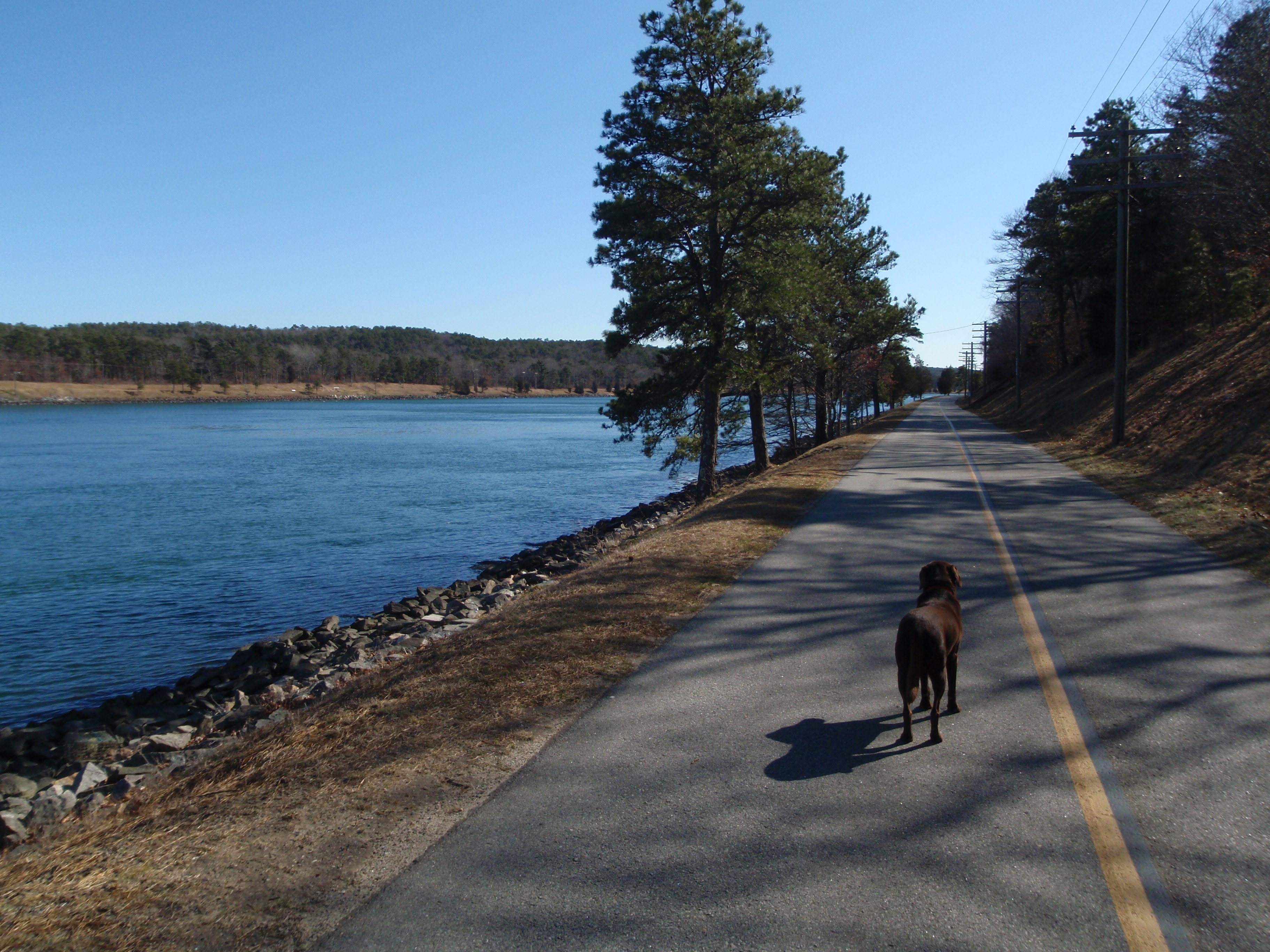 Since I had made 2 donations on each of the last 2 days, I wasn’t going to be looking for a donation place today, and was just going to put some miles on instead. I made my way east to the beginning of the cape, and stopped in the town of Buzzard’s Bay. Cape Cod is shaped like a big flexed arm sticking out into the ocean from the rest of the mainland, and Buzzard’s Bay was near the shoulder. Back in the early 1900s a canal was built through this part of the land, which shortened sea voyages by 130 miles between New York and Boston. The idea for a canal was discussed as early as the 1600s, but several attempts didn’t quite work out, although everyone was eager to shorten the trade route. The canal is still heavily used today, although I only saw one tugboat pulling some sort of big barge through. I did notice the current was very swift, and the ducks seemed to be enjoying a nice free ride. The current changes directions every time the tide changes, so that complicates the route a bit. There was a wonderful canal-side walkway on both sides, so Tula and I set off and spent several hours walking a little over 7 miles. There was a train bridge near the beginning of my walk, but it was unlike any train bridge I’ve seen yet. Before the canal was built, there was a railroad line that was used a couple times a day. Digging a canal meant they had to deal with the train tracks, and if they just built a normal bridge the ships wouldn’t be able to fit under it, so they built a “reverse drawbridge” which has the tracks that cross the river raised up high on a bridge, and that is lowered when a train comes through, which isn’t nearly as often as the ships passing through. I would like to have seen the train tracks come down! It makes me wonder who has the right-of-way if a train needs to cross at the same time a big ship is passing through. Then we drove the scenic route along the north side of the cape, passing through a bunch of cute little towns with names like Sandwich, East Sandwich, West Barnstable, Yarmouth Port and on up to the “forearm” part of the cape. This area is very sandy and full of shifting dunes and over half of it is protected by the Cape Cod National Seashore. It was a beautiful drive up through the whole area, and I thought I’d be able to see the sunset, but there are so many cottages and homes on the west side that it was hard to see the water in many places! I suppose people wanted to take advantage of building where they could, and that resulted in many cottages and homes piled up right next to each other. I think it’s a good thing that a lot of the cape is protected by a national park!
