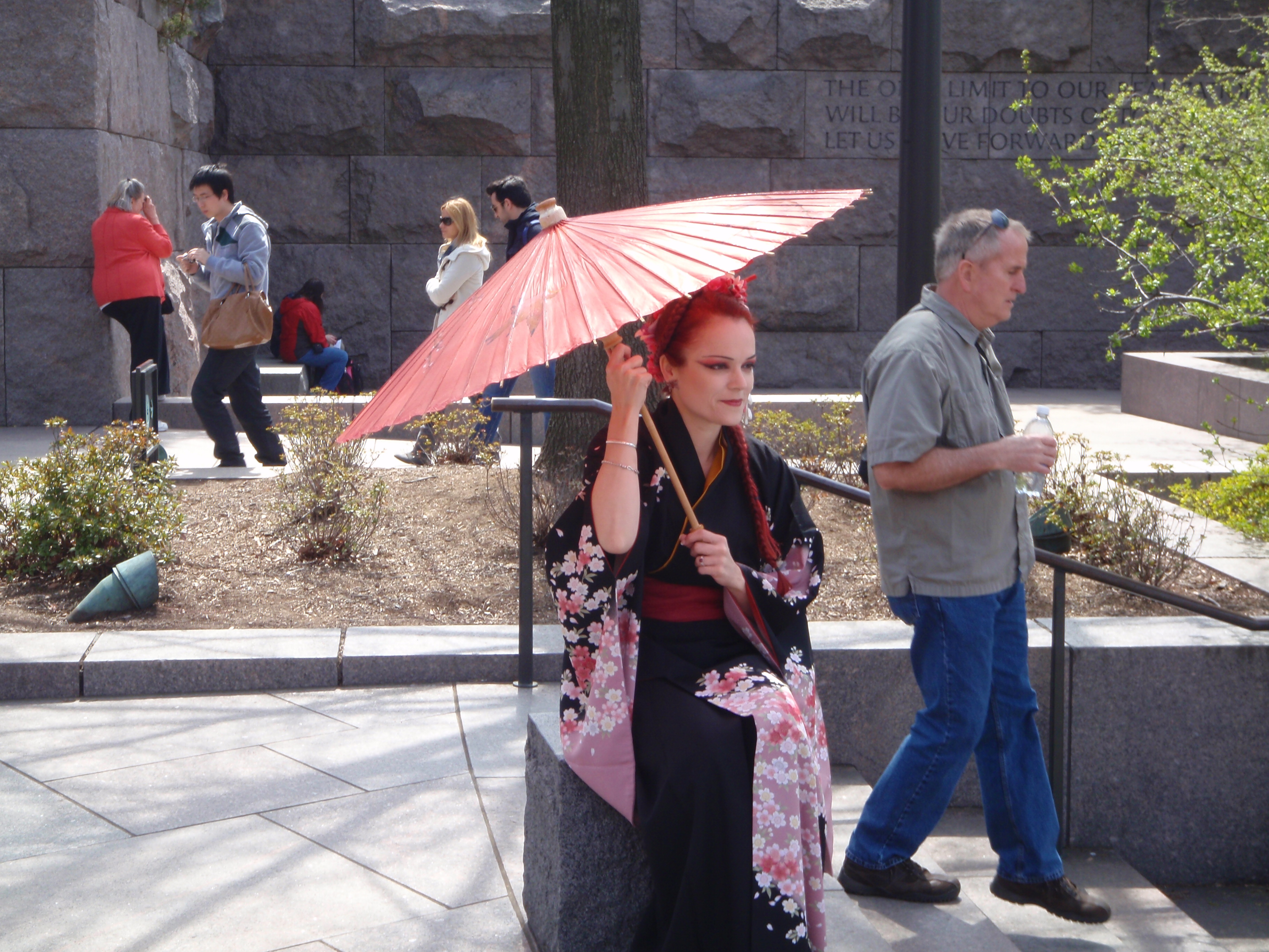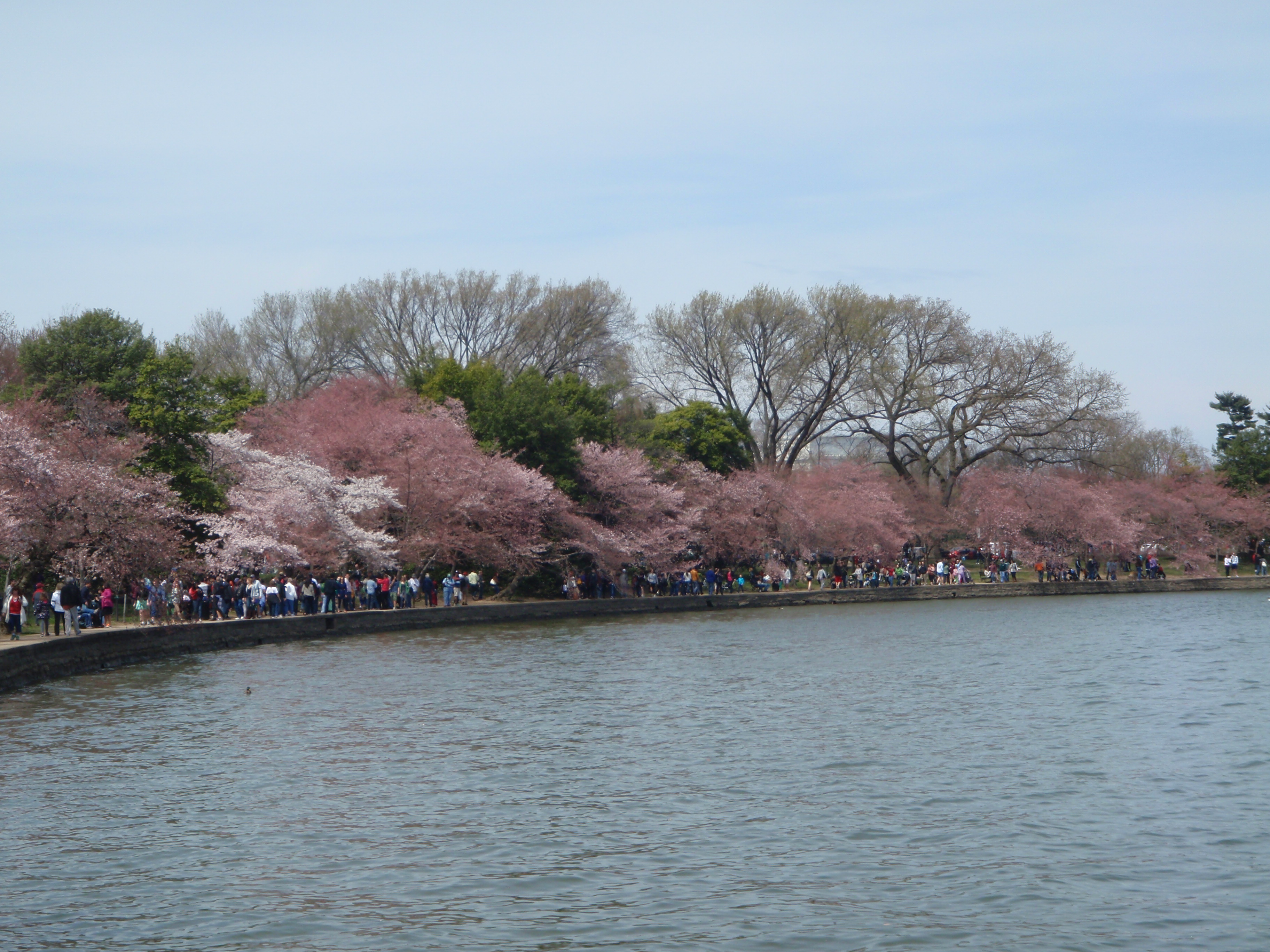 Although I was still a little worried about the drive downtown, at least I had a better idea of what to expect, and it went okay. I simply took the first parking space I could get that was reasonably close to the mall area, and it was a little behind the Capitol building. The cherry trees are just beginning to blossom so there’s a lot of pink around. Tula and I started walking down the mall again, and this time when we got to the Washington Monument, we turned and started making our way across some roads and bridges to head over to the Jefferson Memorial and the Tidal Basin. There are 2000 cherry trees all around the Tidal Basin area, and the 2-mile path around it was so crowded with people it took quite a while to walk all the way around it. It was so pretty it was worth it. Then we visited the FDR Memorial (which also has the only statue made of Eleanor Roosevelt), and the Martin Luther King Jr memorial which were in the same general vicinity. I hadn’t seen these before and I think they’re some of the newer memorials. On the way back toward the Washington Monument, I saw a ranger station and stepped in to see about passport stamps. The ranger told me the cherry blossoms should be at their peak within about 48 hours since the weather conditions are just right to make them all “pop”. I decided I’d continue walking all the way down to the White House. The boulevard in front of it is closed to traffic and makes a really nice place to walk. It was pretty to see with all the flowering trees. Then we started making our way back, passing some of the biggest concrete buildings I’ve ever seen – the Treasury Department Building, the IRS building, EPA etc etc. The street crossings were really crowded, and there’s people on bikes to add to the mix. I’m actually seeing a lot of red Washington DC bikes and I read the info on one of the stands – it sounds like there’s about 150 bike stations in the city, and you can just rent them for however long you want, and return it to any of the stations.
