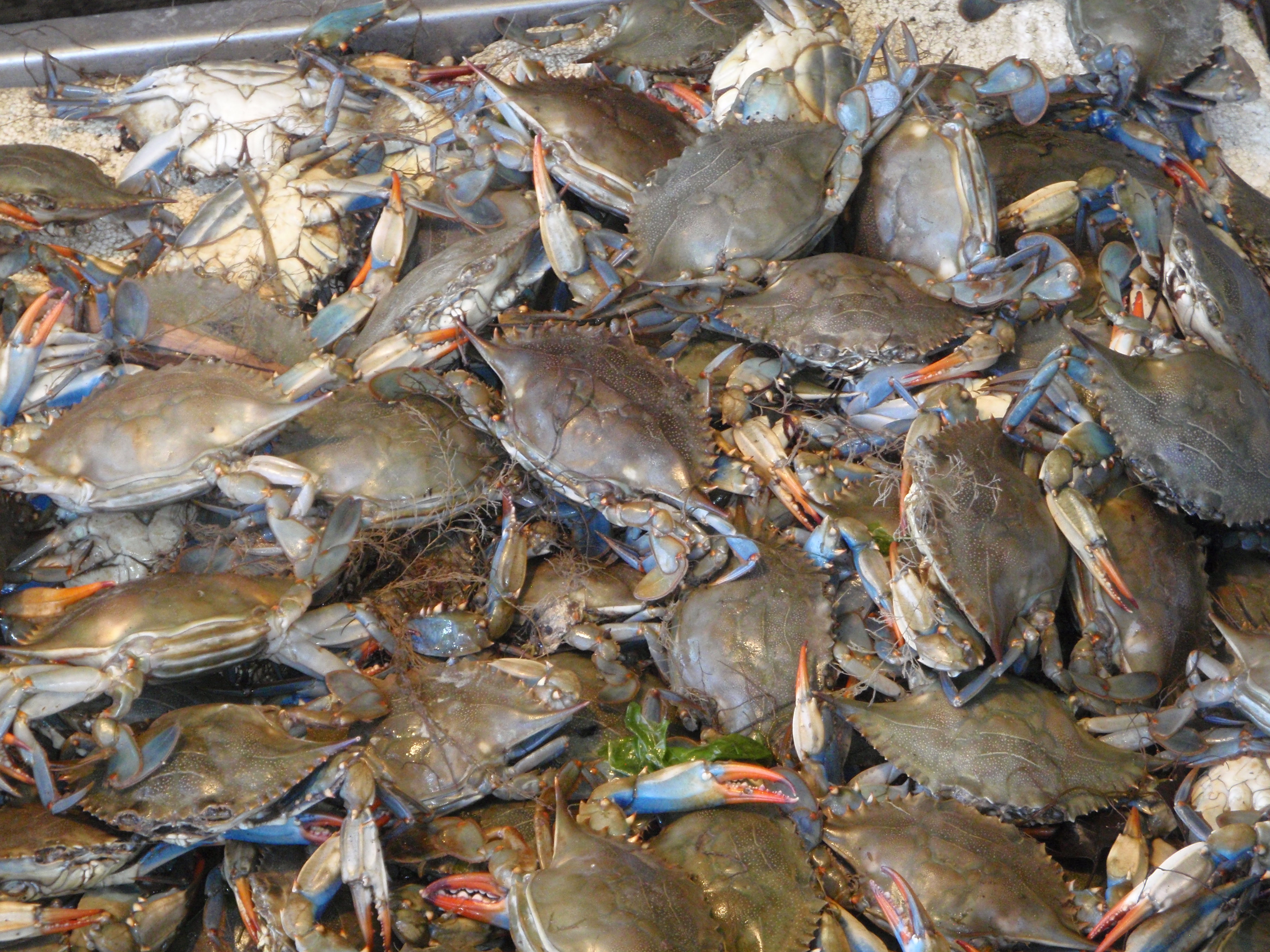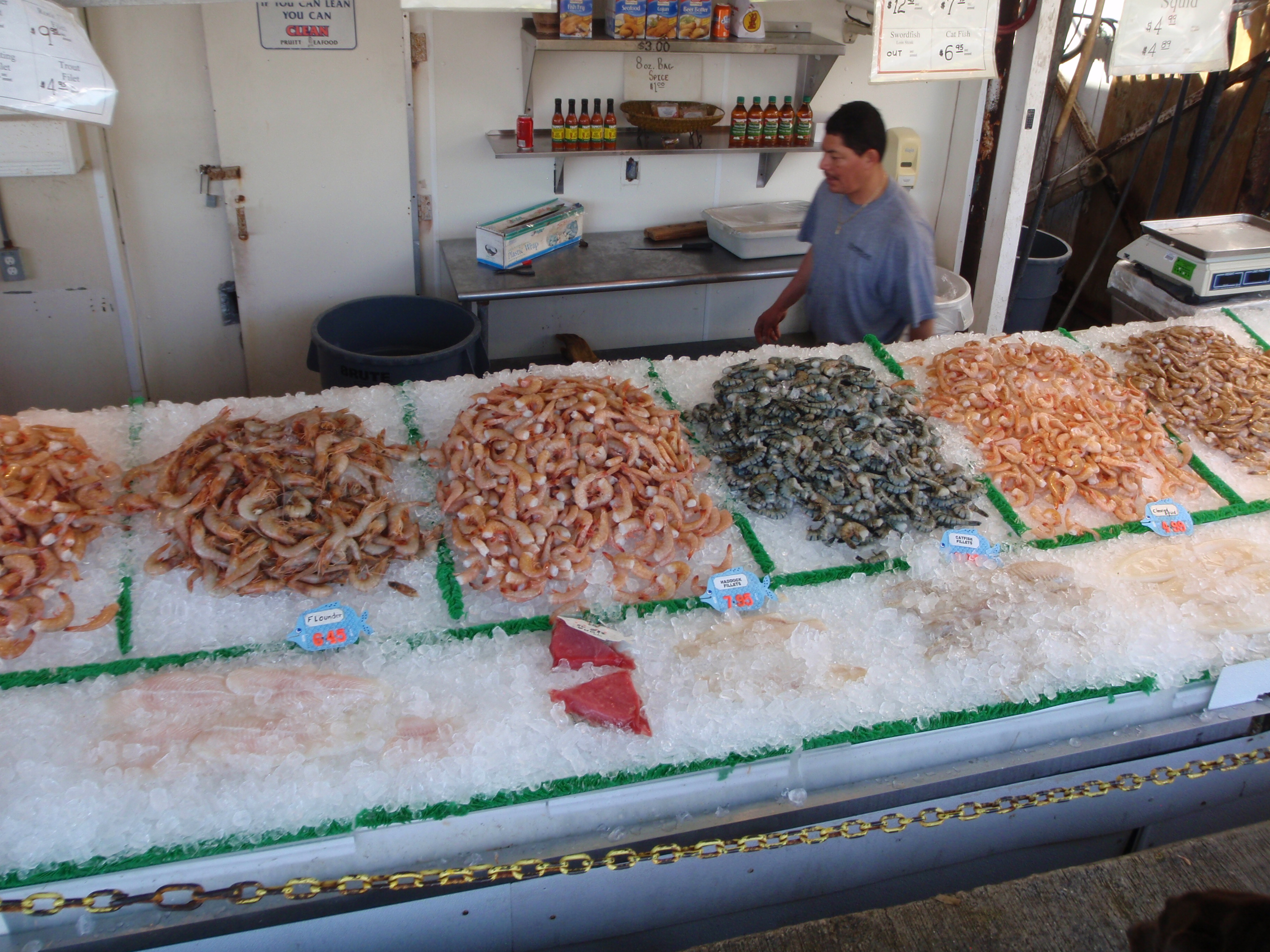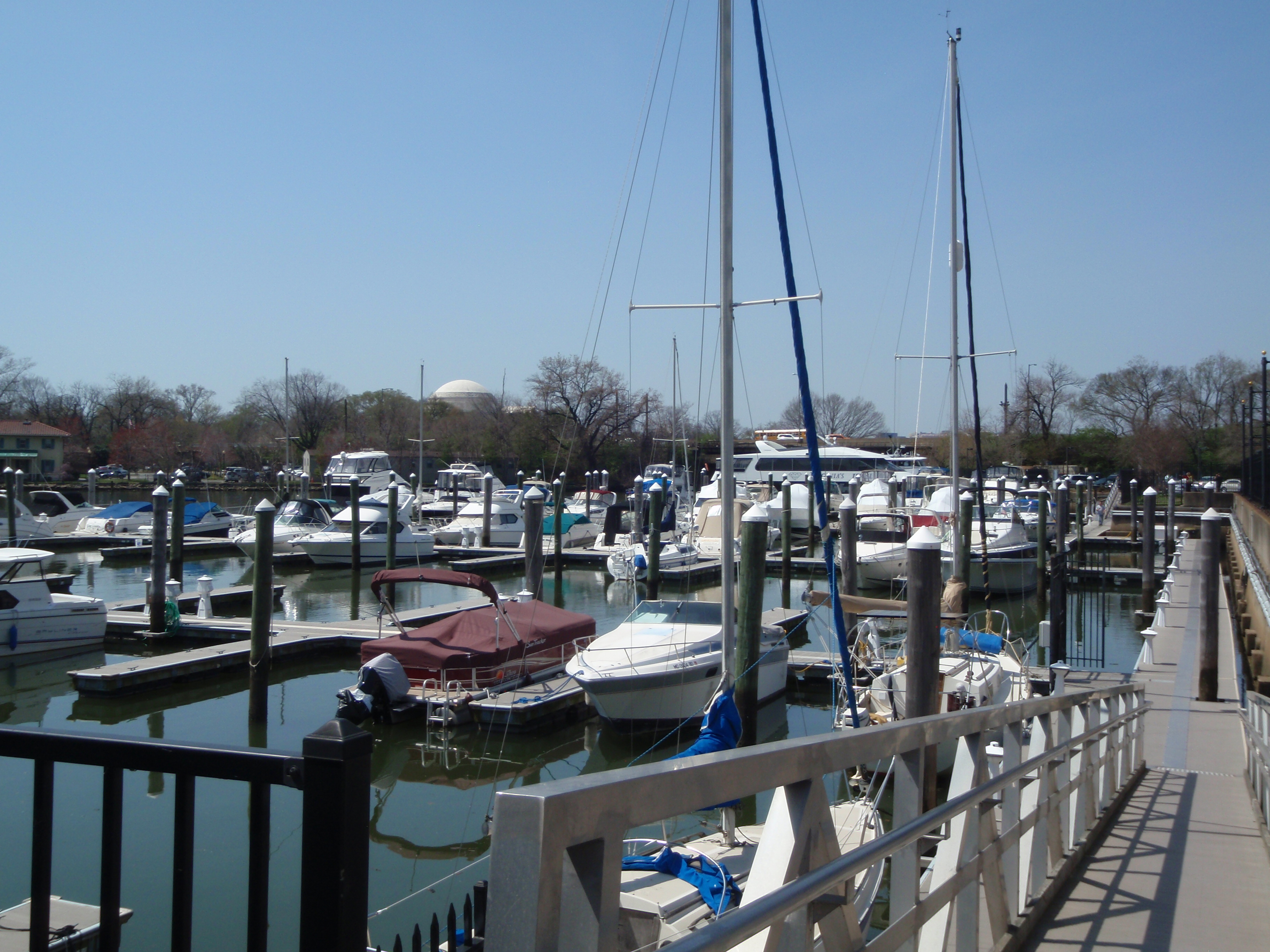 Today’s forecast was for record-breaking heat, and it’s also the peak day for the cherry blossoms, so it’s going to be a hot and crowded day, but I wanted to head downtown anyway. This time it took nearly 40 minutes to find a parking space and hordes of people were out and about. There were dozens of tourist buses around, and I heard lots of different languages being spoken. There are nearly 2000 cherry trees in the Tidal Basin area alone, and that was the place to be. It took a long time to walk over there, and because it was so incredibly crowded, I decided to hold off on the long walk around the tidal basin until it was at least a little cooler in the evening. Plus I didn’t think I’d have enough time before having to go back to put more money in the meter. I was going to try to find East Potomac park instead, but I ended up on the waterfront by the fish market! I don’t associate Washington DC with fresh fish, but it is right on the water, and this market had a lot of fresh fish and shrimp on ice in market stalls. Plus there were a couple places to eat, and it was all colorful and smelly!