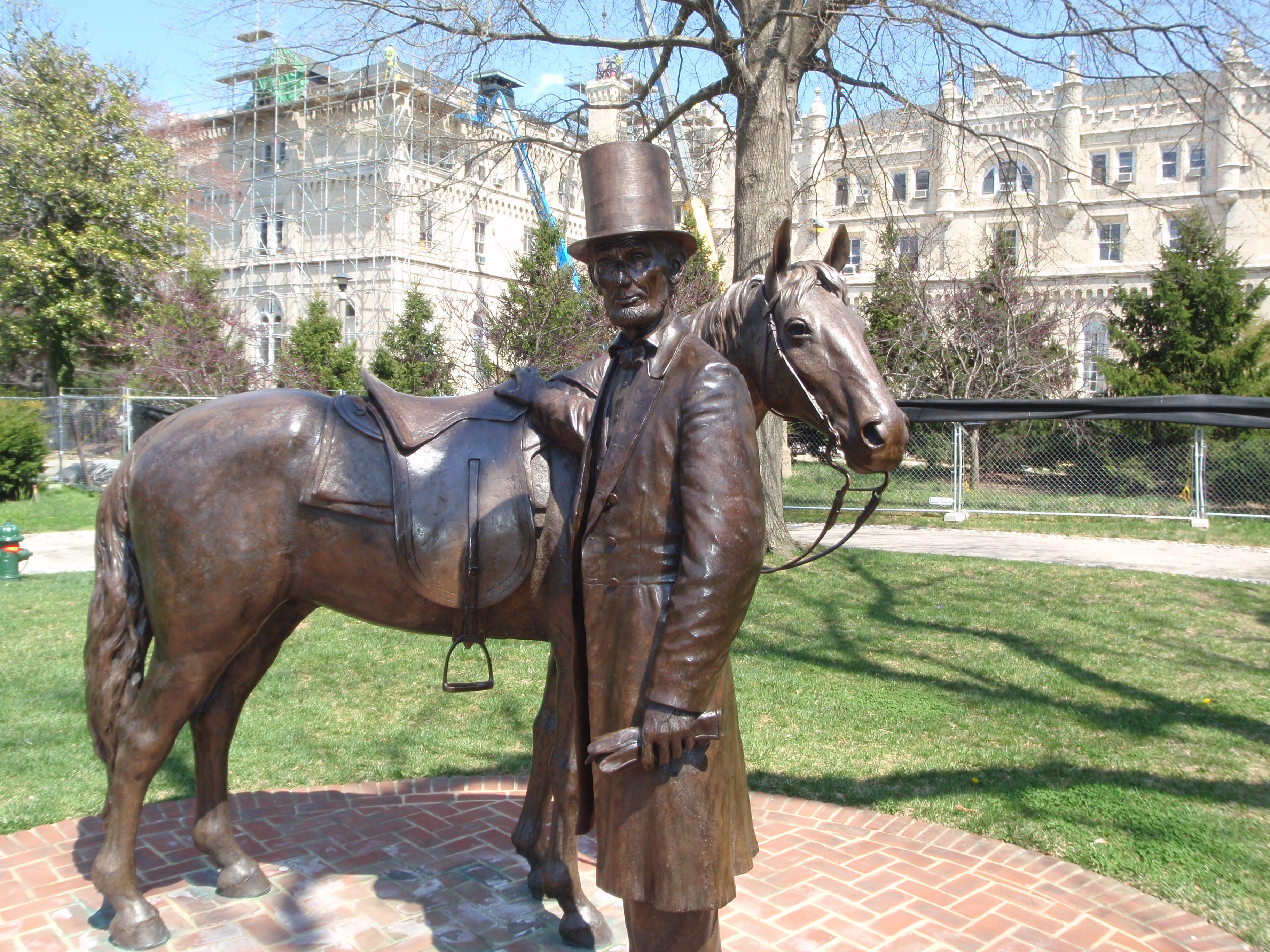 I needed a break from the crowded city bustle, so today I set off for a quieter part of Washington DC – yes, quiet places exist! But first, I wanted to make my donation and that set me off in a different direction too. So I’m managing to see a lot of parts of the big city. Today’s donation was going to the Armed Forces Retirement Home. I talked with their activities person yesterday, and she told me they would welcome a donation – they’ve been hit by sequester cuts too. I hadn’t been in this part of the city yet, but I had good directions, so although it took a while, I did get there. This is one of the oldest veteran’s homes in the country – going back to the Mexican-American War, with an interesting story. The activities director told me that sometimes at the end of battles, the victors would go in and scavenge and pillage for any food and valuables – the spoils of the battle so to speak. In this case, the governor(??) of Mexico City gave the United States $125,000 to build the winning soldiers a home for those who needed it, in exchange for not pillaging. And that is how this veteran’s home came into being so long ago. It was a Soldier’s Asylum for a while, and there is also a “cottage” on the grounds that is called Lincoln’s Cottage. Abraham Lincoln spent a lot of his time there when he was President – it was on higher ground than the Capitol, and therefore was a little less swampy and buggy, and he wrote a lot of the Emancipation Proclamation there. There was even an assassination attempt on him there as he rode through the south gate, and the bullet went right through the top of his hat.