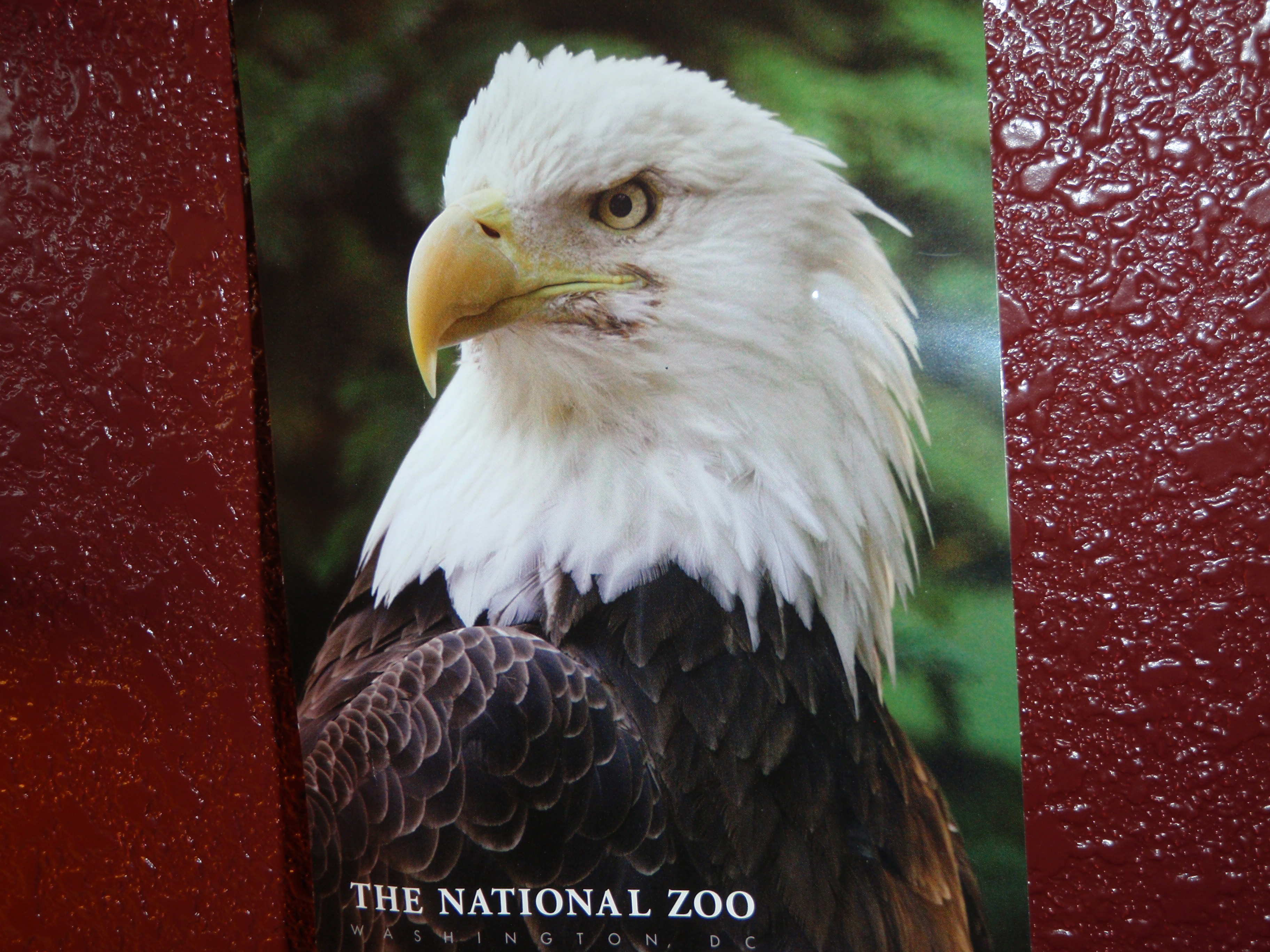 Then I was ready for a bit of a drive cross-town. I had decided to “adopt” a bald eagle at the National Zoo today for my donation. Their website had indicated this was a fund-raising choice, and about a half dozen animals were available for adoption. I figured that adopting a national symbol of our country while visiting the National Zoo in our national capital was an appropriate way to wrap up my week in Washington DC! It was another slow drive there, with some big roundabouts and pedestrians all over the place. I definitely wouldn’t drive on a regular basis in this city if I lived here! Just getting around the Dupont Circle area alone took a long time! And I began to get worried about gas – there are not a lot of gas stations in town. But I found one of them, and then got to the zoo. Since I had already spent time walking, and then visiting the National Gallery of Art, it was mid-afternoon, and some people were leaving the zoo. I was actually able to find parking on the street nearly right next to the zoo entrance. And once again, I locked Tula into the van with the air conditioning so that I could go make my donation. I was directed to the gift shop area, which is where the administrative offices are, and one of the employees brought down the necessary paperwork, and I “adopted” my eagle. I’ll get a photo and updates from time to time. Now I have a bald eagle from the National Zoo and a wild horse from Assateague Island – I wonder if I will add more animals to the menagerie in the second half of my journey?!? Since I had parked so close, I decided to take a power walk through part of the zoo. I saw the zebras and cheetahs, and watched a very active otter doing flips against the glass enclosure. I saw the bald eagle exhibit, which was my goal, and stopped in the panda display and watched a chubby panda chowing down on bamboo – they must have some pretty sharp teeth! I went to the new elephant barn, but they weren’t in it – they were apparently all outside. I don’t generally like to see man-made structures for wild animals, but I have to say this looked like a really nice place for elephants!