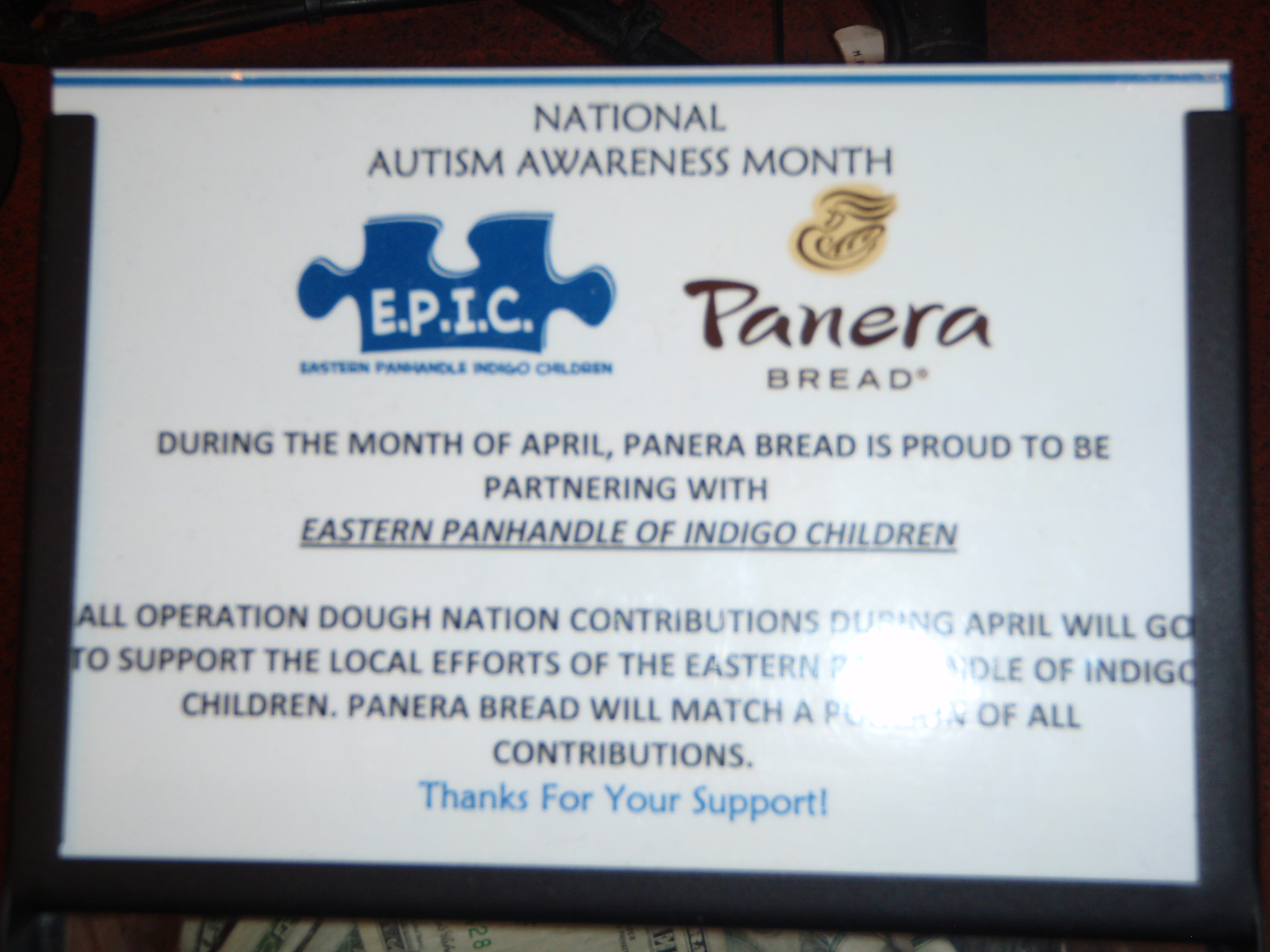I had to find an office supply store to see if someone could help me print off some additional tax forms from my computer, and I found a Staples with a very helpful copy person. I had intended to have my taxes finished by now, but on Tuesday I discovered I had left my tax folder at Tara’s house when I had been in Ohio. So she sent the folder to me in Washington, and I only got it last night, so now I have to scramble to get everything done, because I really don’t want it hanging over my head by filing for an extension. Once I had all the necessary copies, I discovered there was a nail salon right next door to Staples, and my poor feet needed a pedicure. I do try to take care of them since I’m being very hard on them and walking so much! I still deal with the occasional blister (however, I’m not complaining – I have seen too many dancers’ feet and they’re the ones who should complain, but rarely do!). And from there, just when I was thinking I needed a salad for dinner, I saw a Panera. And that led me to today’s donation! After I had ordered my salad, I noticed a big display about autistic children and some of the resources that are available locally. The autism awareness chapter here is called E.P.I.C. which stands for Eastern Panhandle Indigo Children (indigo refers to the color of bracelets that people can buy to show their support of autistic children) and April is Autism Awareness month. Panera was also donating the proceeds from some of their sales. I talked to 2 of the workers, and they confirmed that this is a West Virginia chapter, and one of them also had their business card with an address and phone number. So I figured that would be a good donation for today – it’s kind of fun when an unexpected donation opportunity just sort of pops up – especially late in the day! I drove just a little farther and stayed in the town of Martinsburg for the night. This little “panhandle” section of West Virginia is kind of a funny piece of land sticking into Maryland – it looks like it should just be part of Maryland, but I’m sure there’s a reason why it’s tacked onto West Virginia – borders are an important thing!