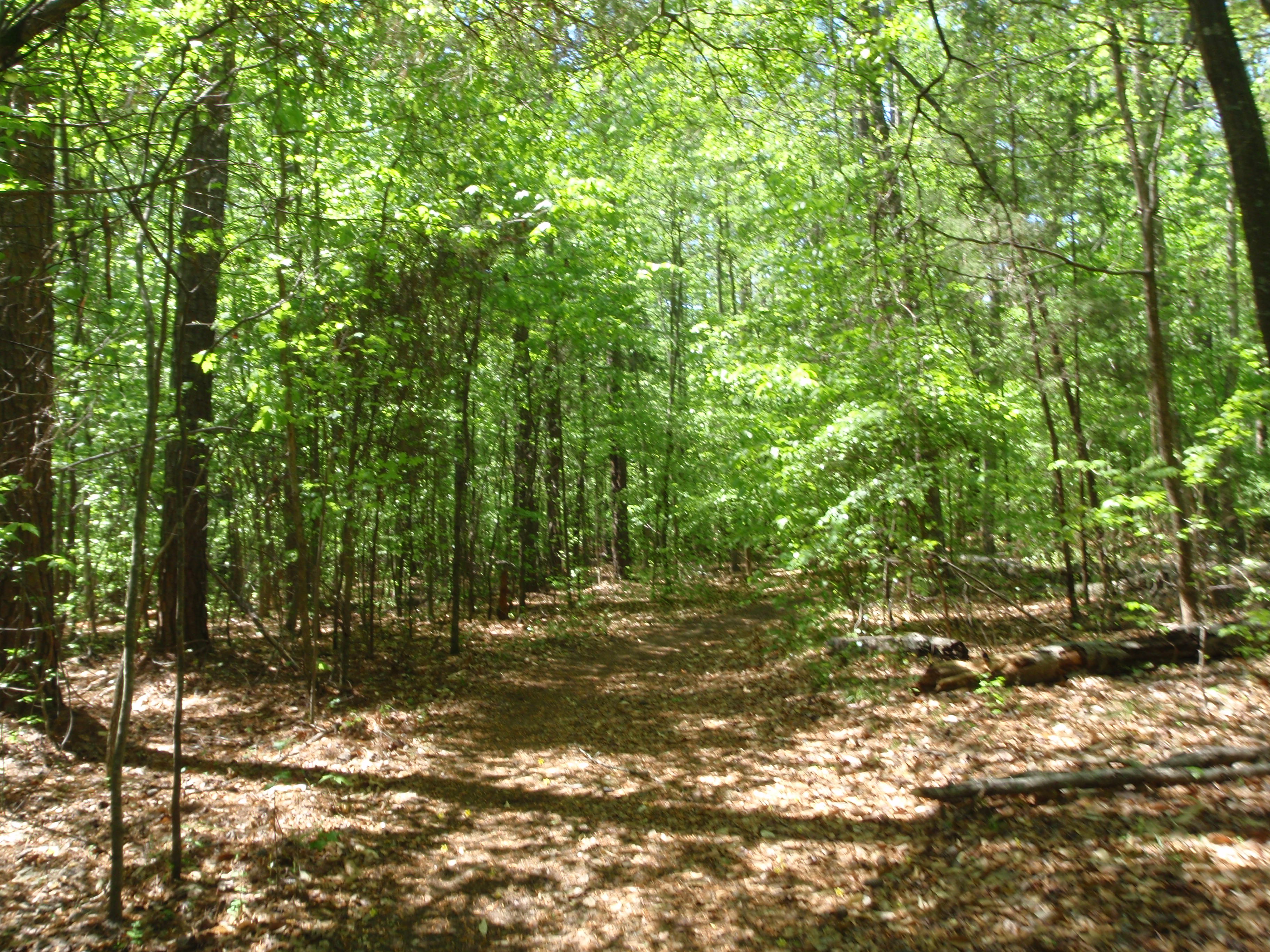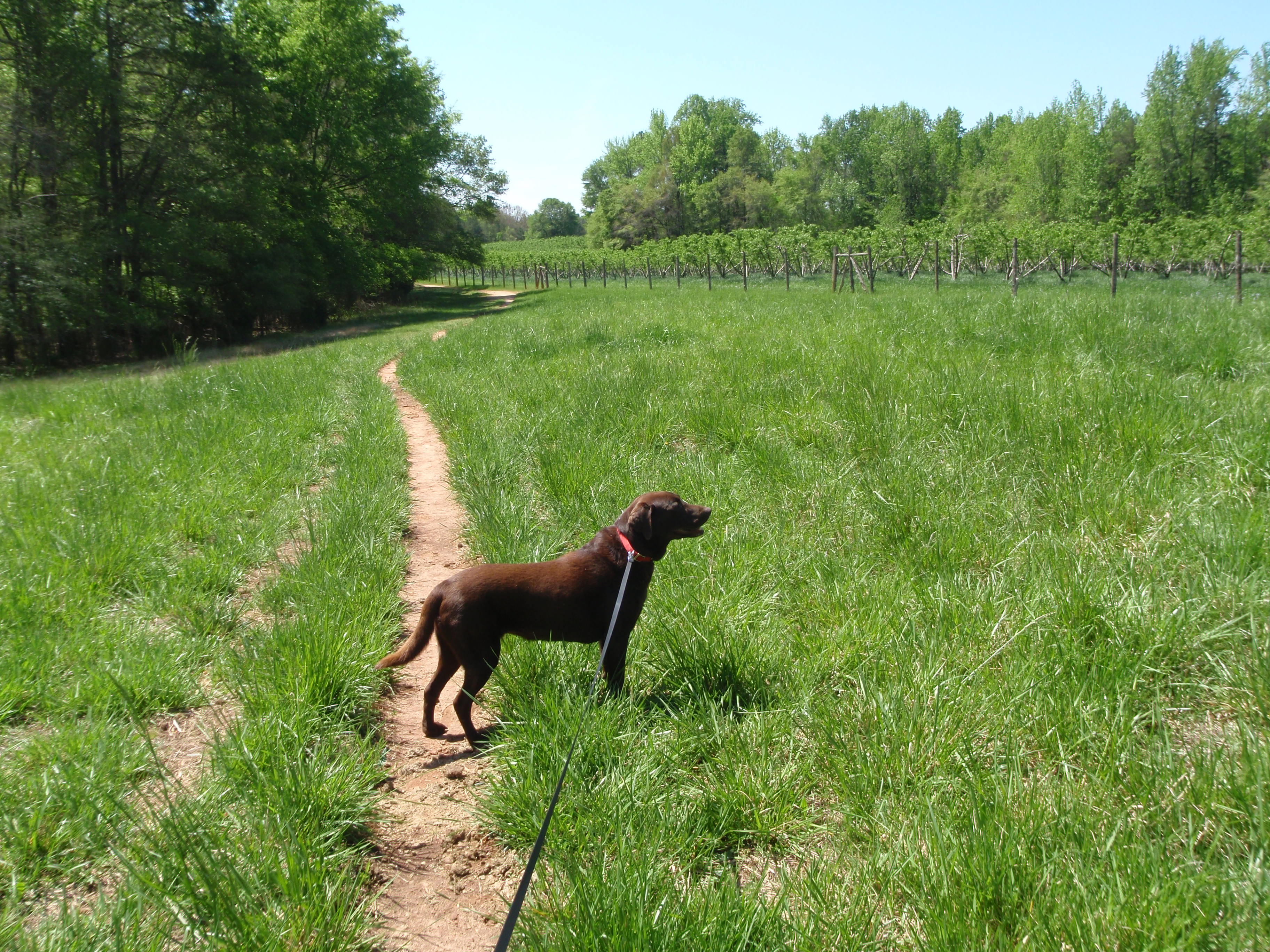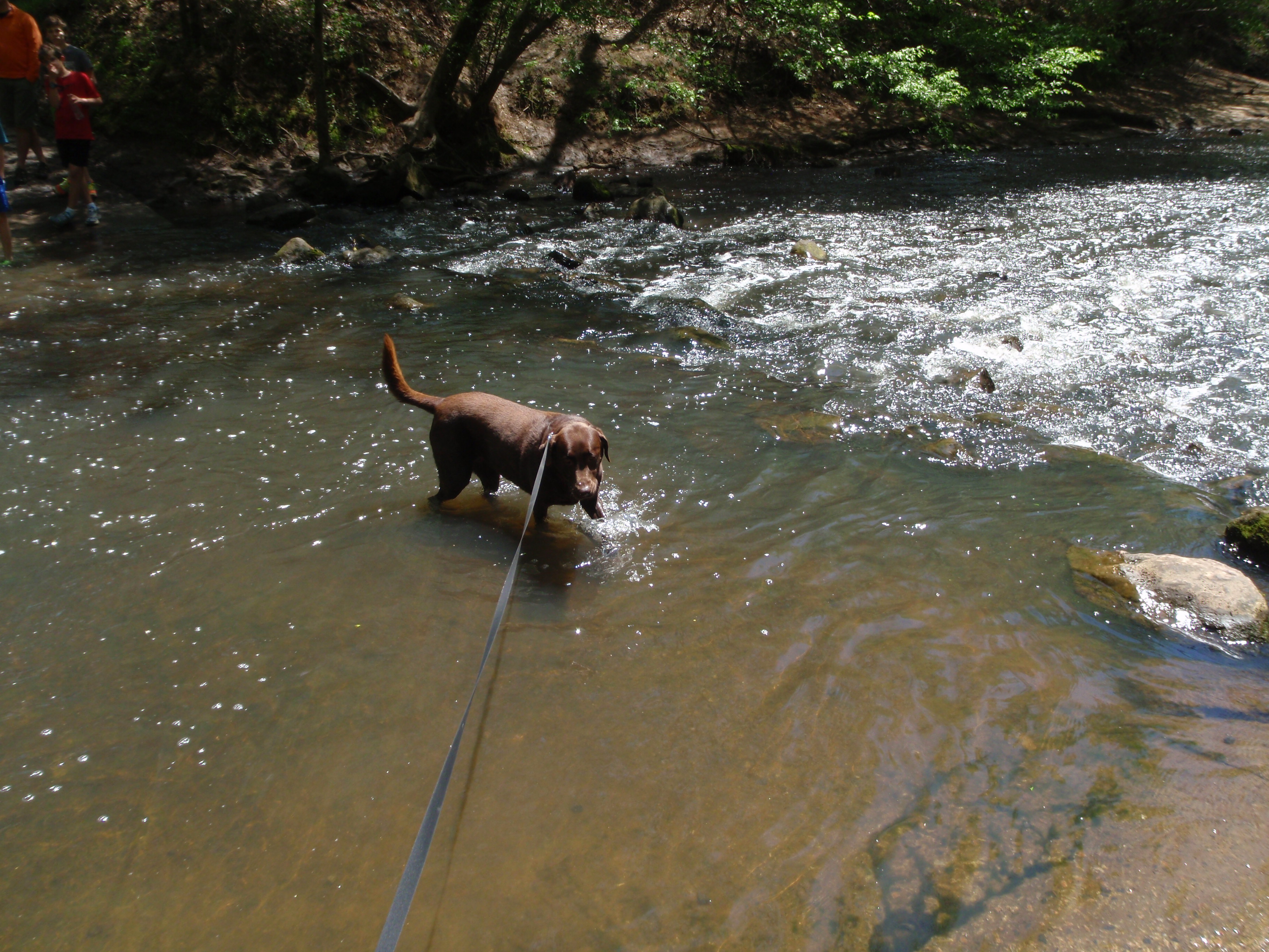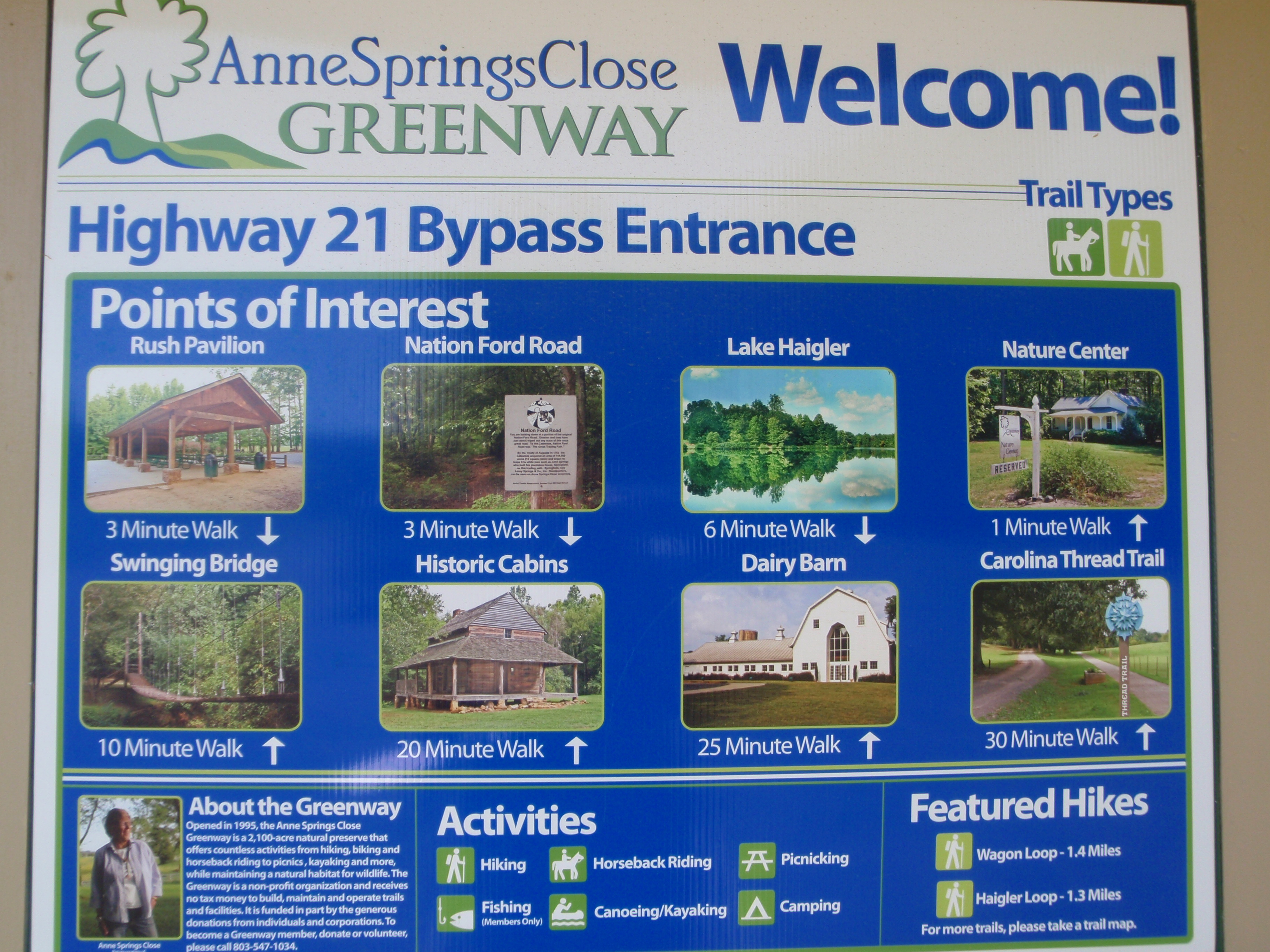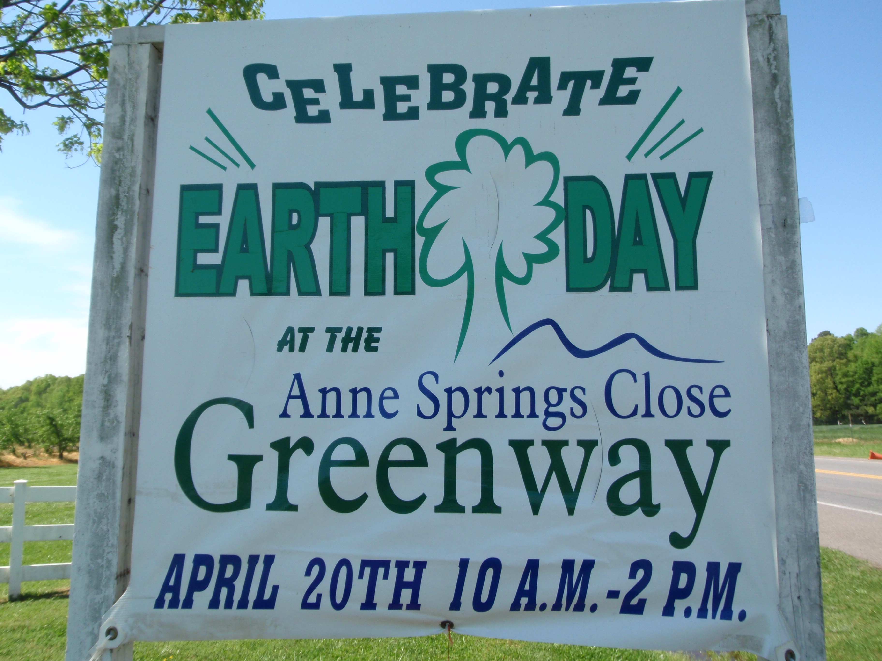 When I was driving around to find the Community Cafe yesterday, I noticed a sign for Anne Springs Close Greenway, and greenways usually mean there’s some good walking trails, so that’s where I headed this morning. When I arrived, I saw big signs about their Earth Day celebration today (mostly in terms of a petting zoo and games and crafts for kids) and this turned out to be a 2100 acre nature preserve with miles of trails, horseback riding, nature trails, educational programs, etc. It was a beautiful place, and all this land had been donated to the public by the children of Anne Springs Close nearly 20 years ago. Entry fees were waived today in honor of Earth Day, and there were lots of people out enjoying the preserve and activities. I read that they do not receive any state funding to maintain the park – that’s all done through memberships and entry fees and donations, so I knew there could be no better Earth Day donation than one to a big nature preserve that countless people enjoy! Tula and I walked about 5 miles on trails out in the hills and woods and around the small lake – some of it got a bit slippery because of the rain yesterday, but we made it through with some red mud (and lots more inchworms-they seem to be suspended from thin air!) clinging to us. Then I was going to walk in another part of the park, but that required crossing a wiggly suspension bridge, and Tula didn’t want anything to do with that. She was ready to go through the stream below, but I wasn’t sure how deep it was, although I was pretty sure other people just waded across. So I put her back in the van, and walked a couple more miles in the area across the bridge. I was really happy to come across such a nice outdoor place on Earth Day – which I had forgotten about!