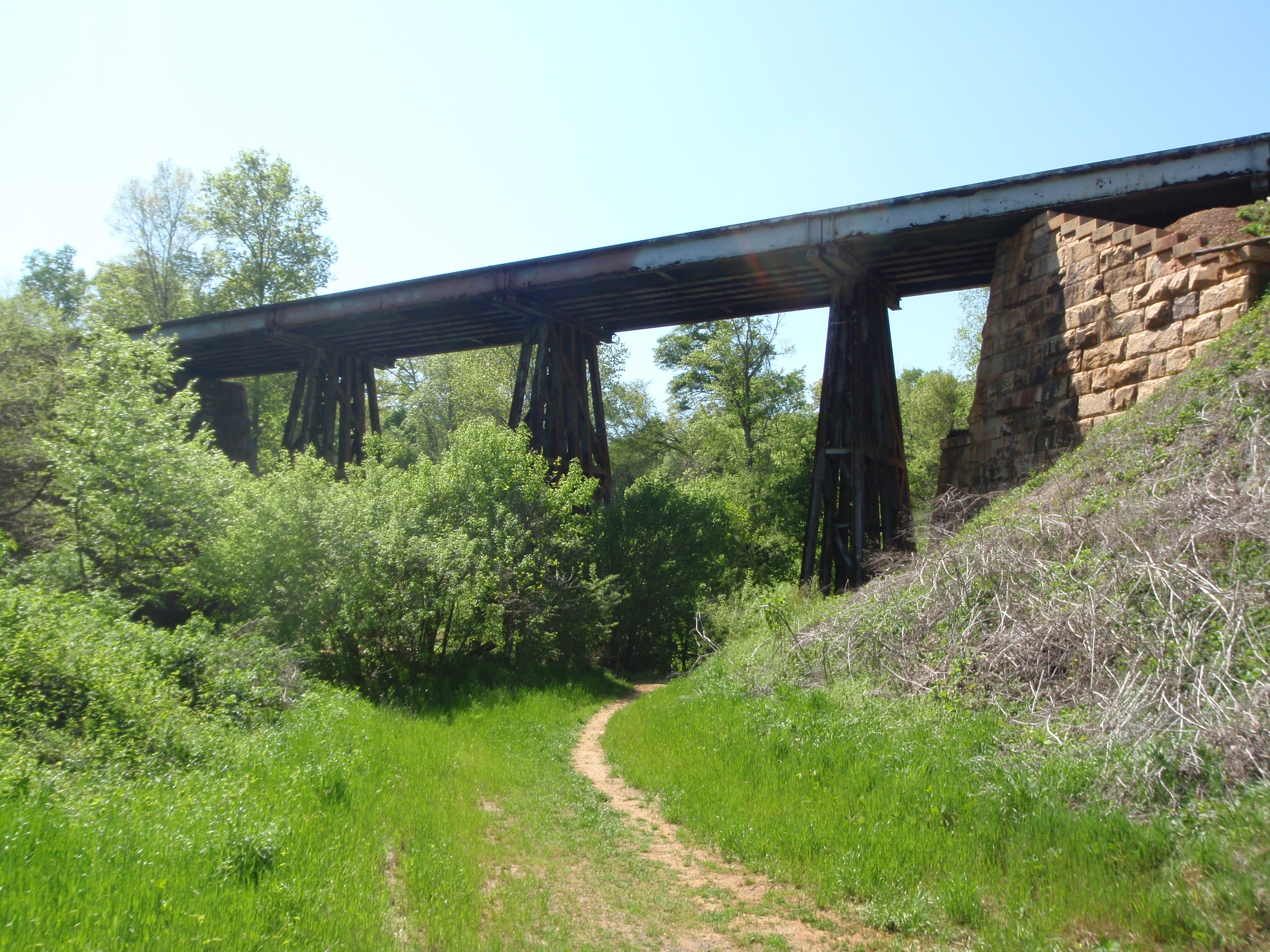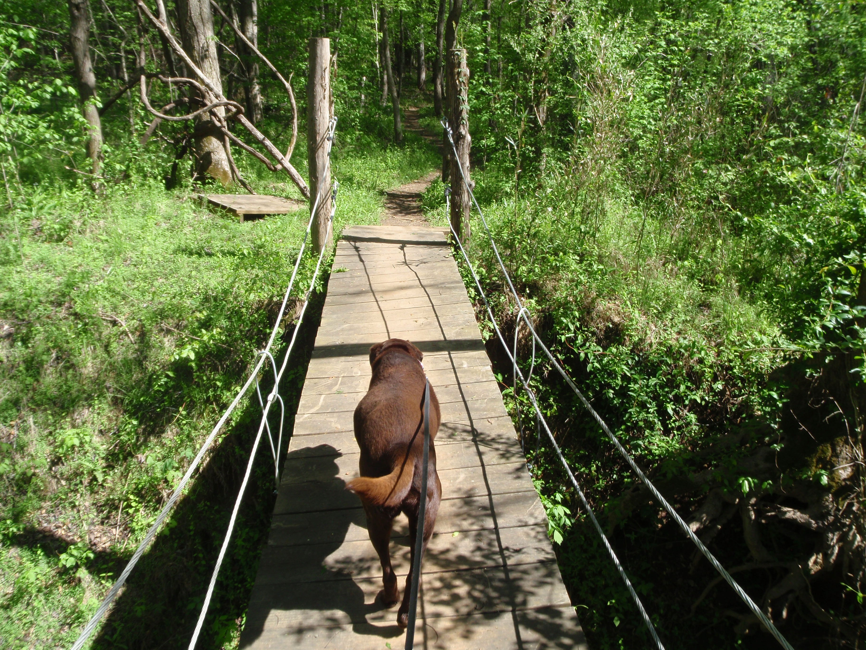 I made my donation and then we drove to a different area of the park to walk just a little more – I wanted to see an old train trestle back there. We came to another short swinging bridge which wasn’t very bouncy, and I wanted to see if Tula would follow me across if I took her leash off. She was still afraid of the bridge, and instead, with me on the other side, she started down the ravine and was going to check out the water and come that way. I didn’t want her to do that, so I came back across and we took another trail to the train trestle! She puts up with just about everything I do – I can certainly cross swinging bridges off my list!