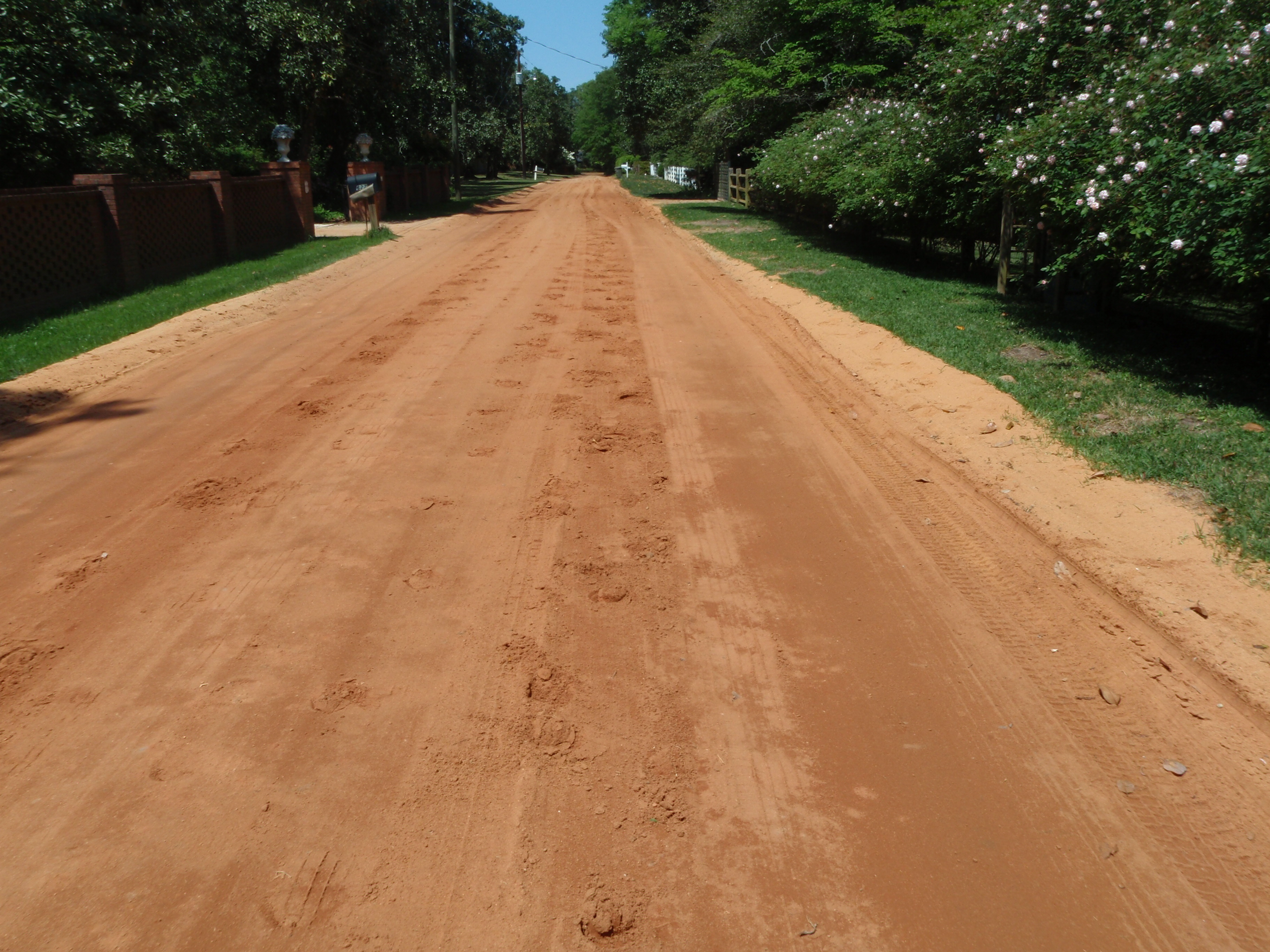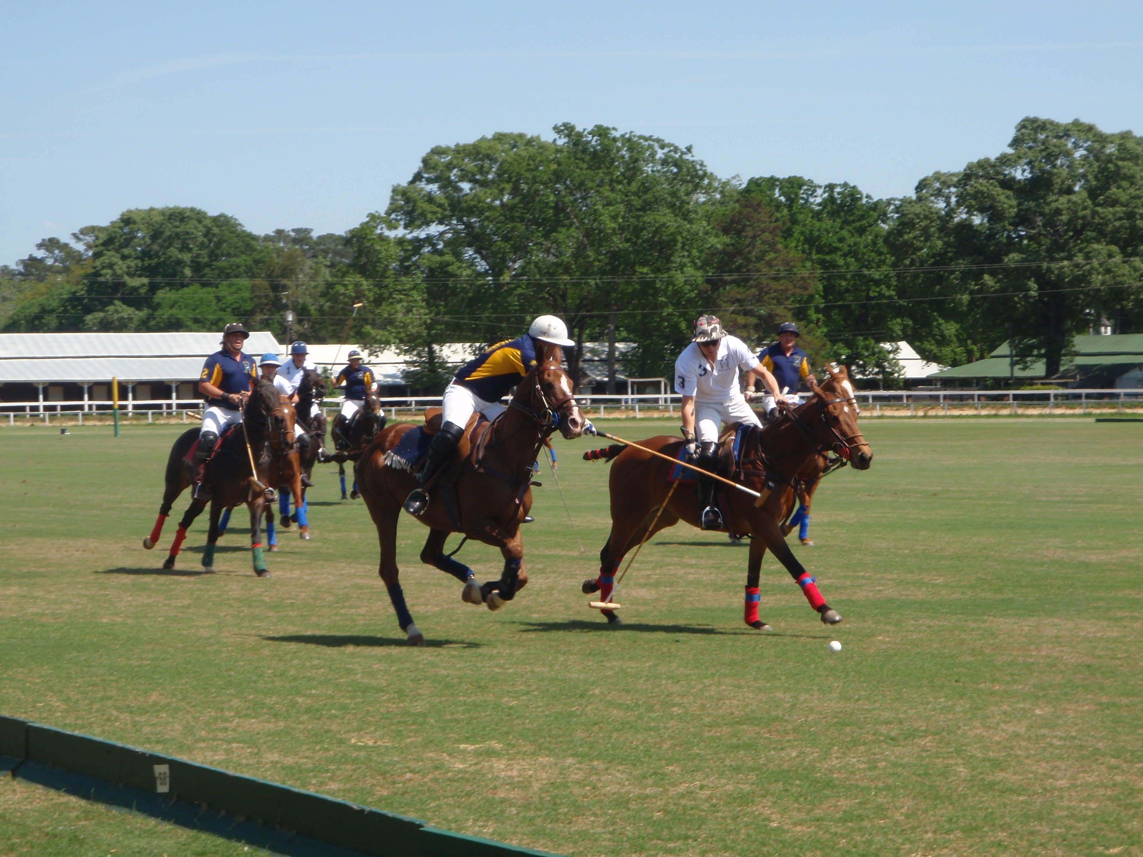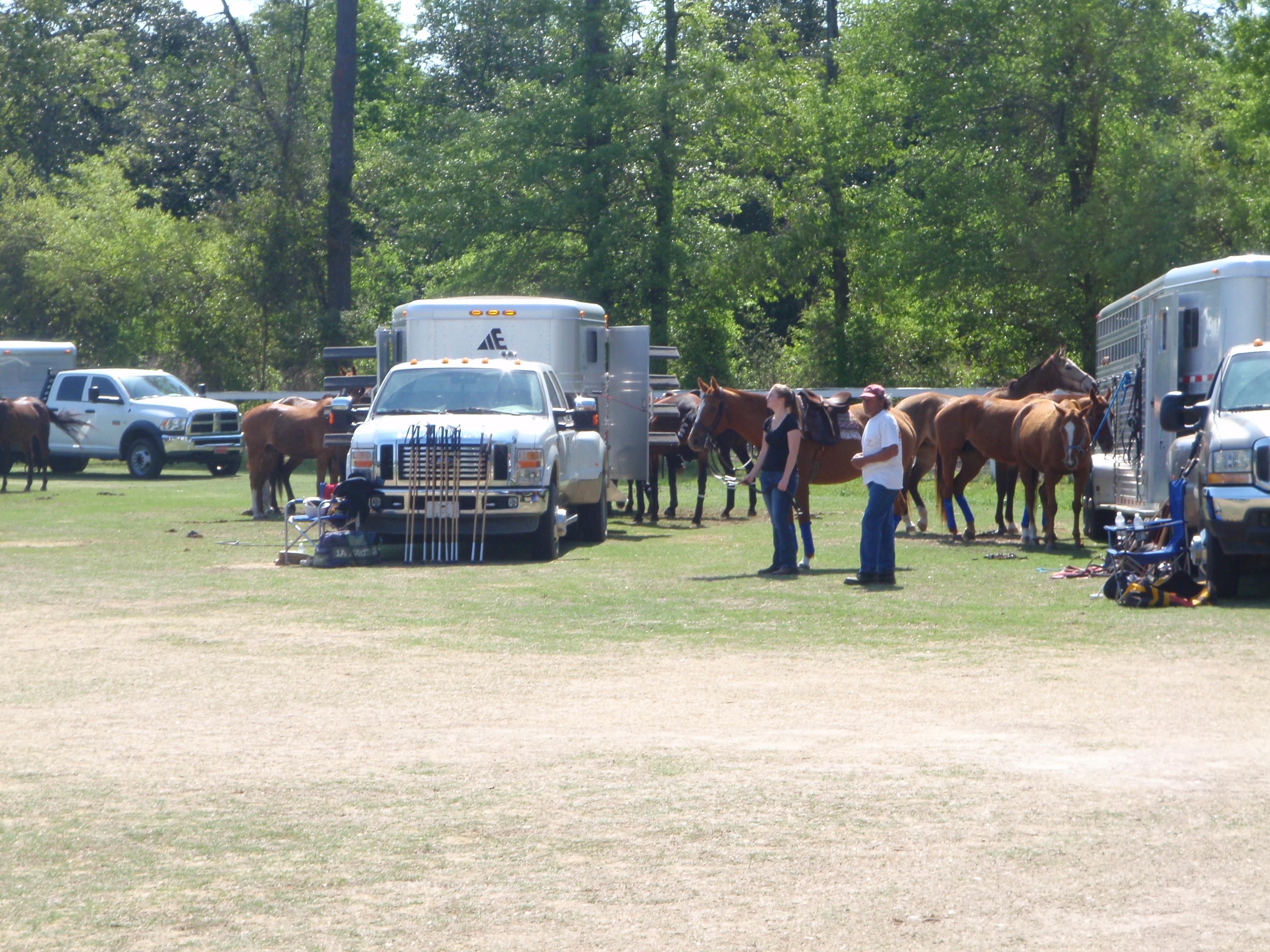 I had stopped in Aiken in 2011 when South Carolina was my annual “state-of-the-year” trip, and I knew I wanted to come back and walk some more here. The horsey part of town is truly a horse paradise. The roads are soft red dirt for riding (almost completely shaded by big trees) and there are countless horse barns, 2 polo fields, and a jumping arena. One of the polo fields had a sign out that there would be a polo match at 3:00 this afternoon. I found a place to park and Tula and I did some more walking on the red dirt roads until it was time for the polo match, which I wanted to watch. I found another cool shady place to park, and went in to see what polo was all about. Many attendees are regulars and they reserve places to park right along the polo field, and they back in and tailgate. The announcer said this is the oldest continuously-played-on polo field in the country, and they started back in 1882. Since I had just walked in, I found a good place to stand where no one had parked right near the center of the field, and enjoyed watching the first half. There are 4 people on each polo team, plus a referee, so there’s 9 horses dashing around the field, and the thundering hooves kind of echo. The mallets must be about 4 feet long, and they’re sometimes swung in circles, and sometimes swung outward from the horse, so in addition to all the running horses, you have swinging mallets (and they hit that ball hard!), and it’s simply hard to believe that horses and people aren’t hit with a mallet! I would think a good thwack from a mallet could break a horse’s leg, but they’re all protectively wrapped, and their tails are wrapped too, so they don’t get tangled up in any of the action. There were 3 chukkers in the period, and each chukker was 7 minutes long, and a horn blows to signify the end of a chukker. The ball has its own “right-of-way” and there seem to be lots of rules to remember. The players and horses could get a few moments of rest during the frequent fouls, which often seemed to have something to do with the ball’s right-of-way. At the end of a chukker, everyone goes and gets a fresh horse, so I’m sure there’s a great deal of strategy involved figuring out when to use each horse, when each player needs 6 of them during the match – one horse isn’t sufficient; a polo player needs a whole string of horses! During the halftime break, the spectators were asked to go out onto the playing field to tamp down the divots that the horse’s hooves had dug out of the ground. So I walked out with everyone else and pushed sod back into the little holes. The polo field is really big – I’m not sure what the dimensions are, but certainly bigger than a football field. I’d been standing during the whole first half, which was about 50 minutes, and I was ready to move around a bit, so I got Tula out and we walked some more around the dirt lanes. I thought I’d get back in time for the last chukker, but the second half must have gone faster than the first half, because people were already leaving when I got back. But that was fine – I’d seen what I wanted to see!