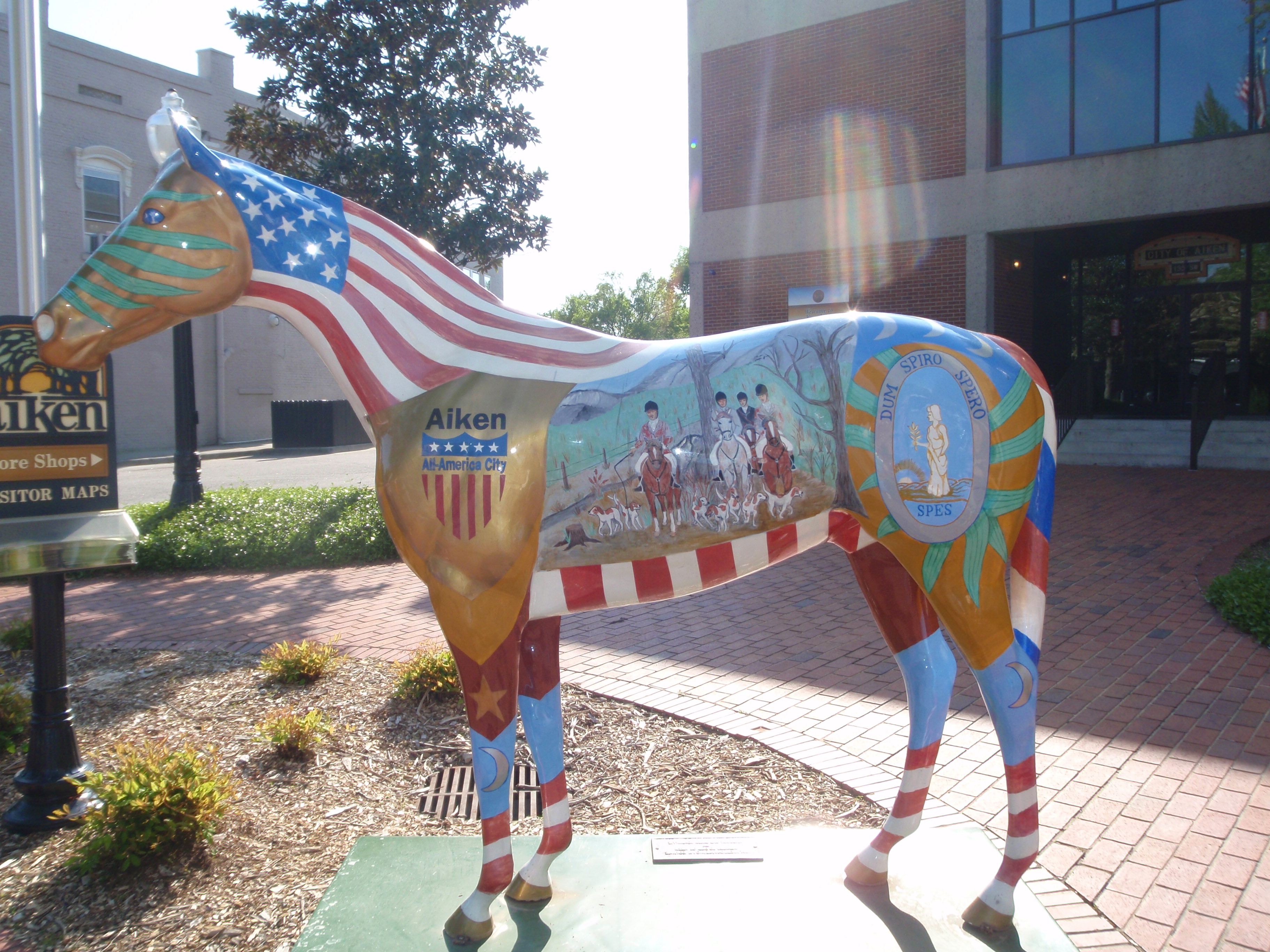 The actual town of Aiken is pretty too – and I finished off my walking for the day there. There are numerous horse statues throughout town, and they’re all painted differently.
