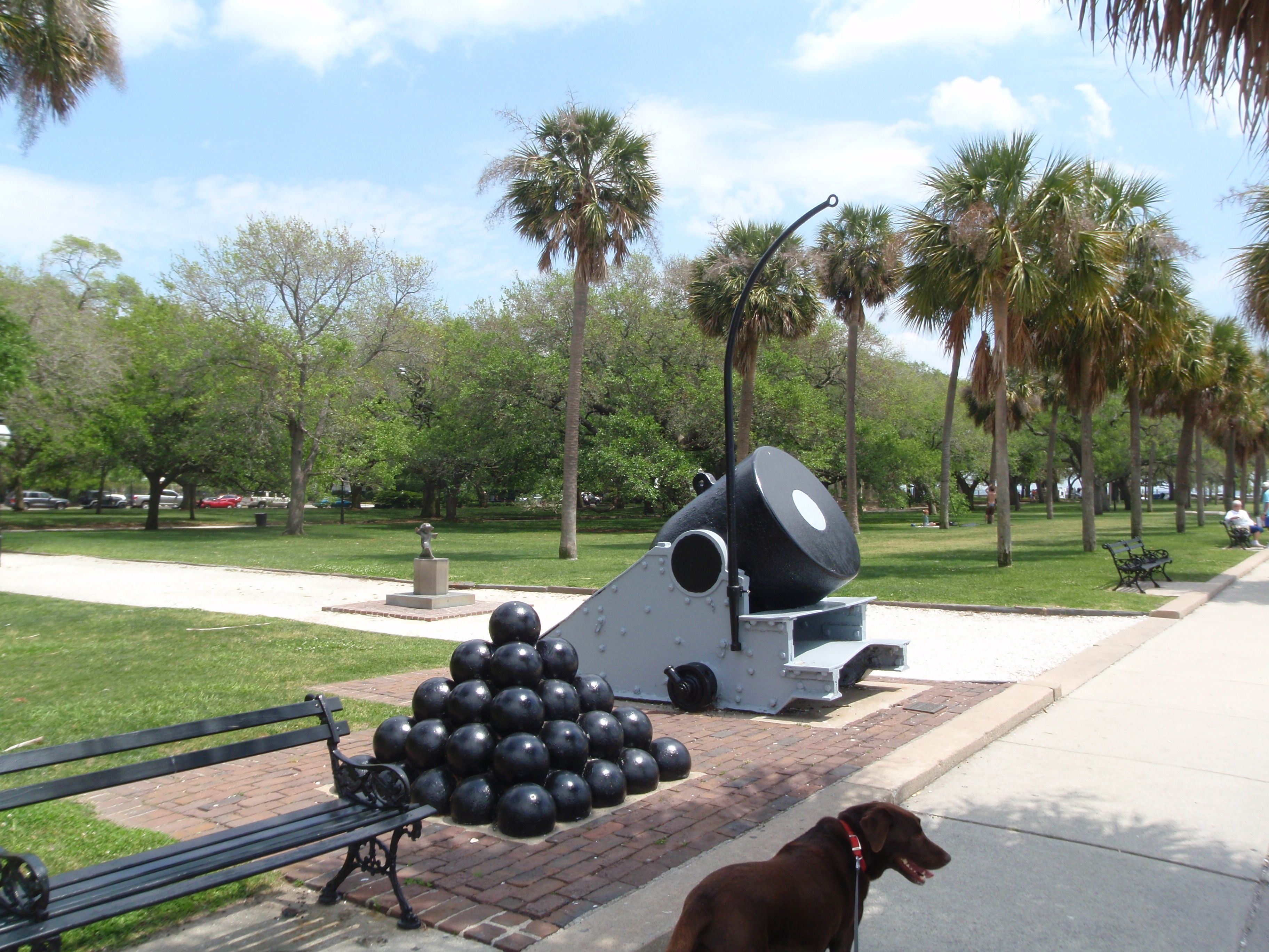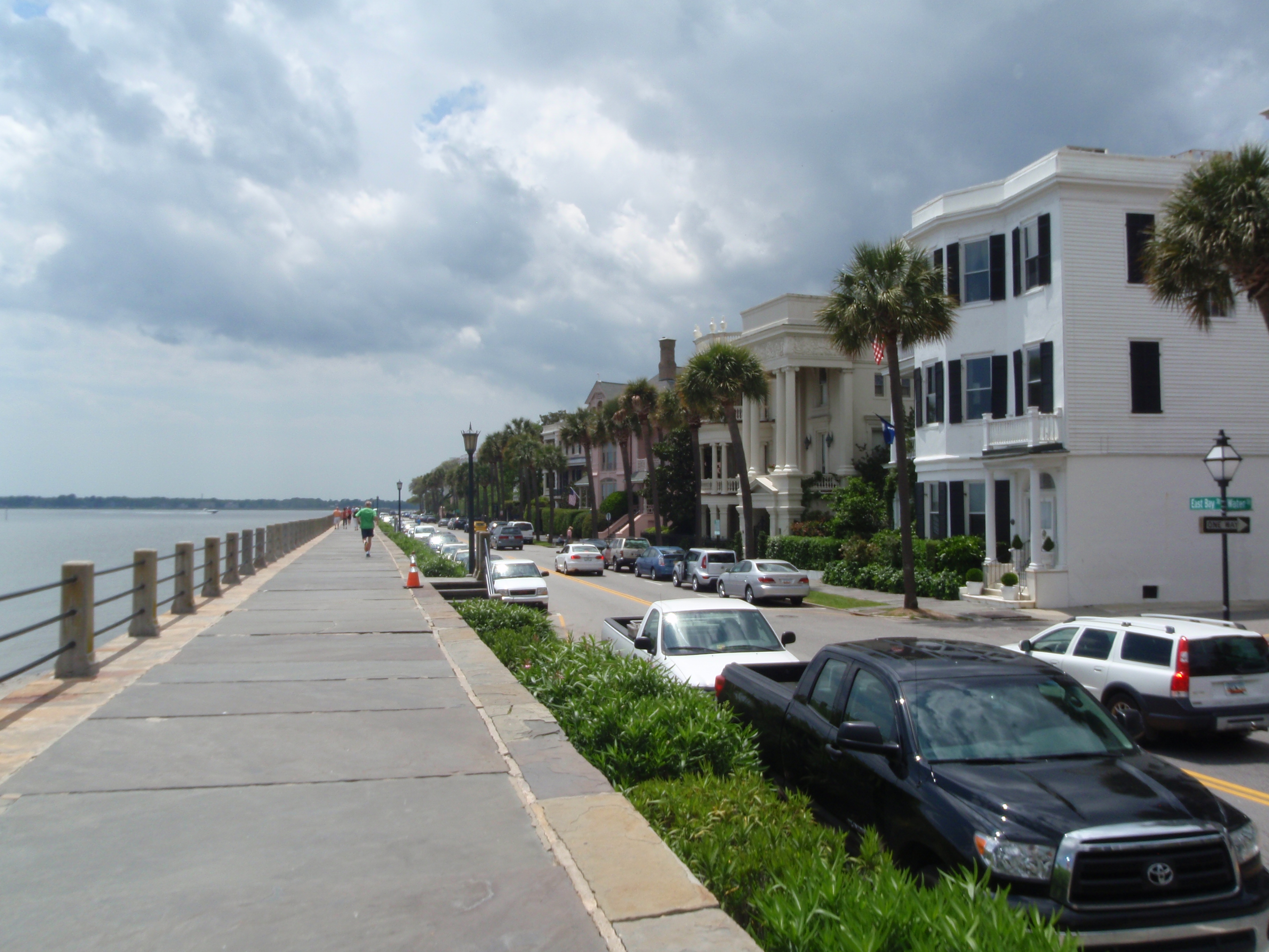 I’m really happy things worked out so that I ended up in Charleston again after all. It’s such a pretty city and it just oozes history. There are no skyscrapers in Charleston – religion was very important back when the town was formed, and there’s a law that no building can be taller than the city’s church steeples. And there’s all the elegant waterfront antebellum homes – with 2 and 3 levels of verandas, and houses painted in pastel colors. The walk along the Battery and through the park was shady and pleasant. There were lots of horse-drawn wagons out for city tours (mules pull the wagons too), and I caught bits of information from those guides as I walked all around. One wagon was stopped in front of some of old historic homes, and like many of them, it was 3 stories tall with a cupola on top. The cupola helped provide “air-conditioning” in the early days – homeowners would keave a door or 2 open on the first floor, and the ever-present sea breezes would blow into the cupola at the top of the house and make its way down to the lower levels, providing a little relief from the hot, steamy summers. We walked through town and neighborhoods, and made a PBandJ sandwich and enjoyed it in the park, and then walked some more. There are still a lot of streets named for the wharves they used to lead to, and some of the roads are still cobblestone (which is really bumpy to drive on). There were quite a few tourists out, but parking wasn’t too bad. I only had to walk about 6 miles to finish up the South Carolina walking, and ending in Charleston was a beautiful walk. I didn’t make a donation today since I did 2 yesterday.